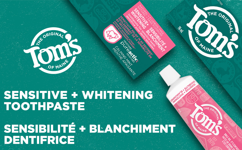 Tom’s of Maine PureActiv Sensitive + Whitening Fluoride Free Toothpaste, Calming Mint