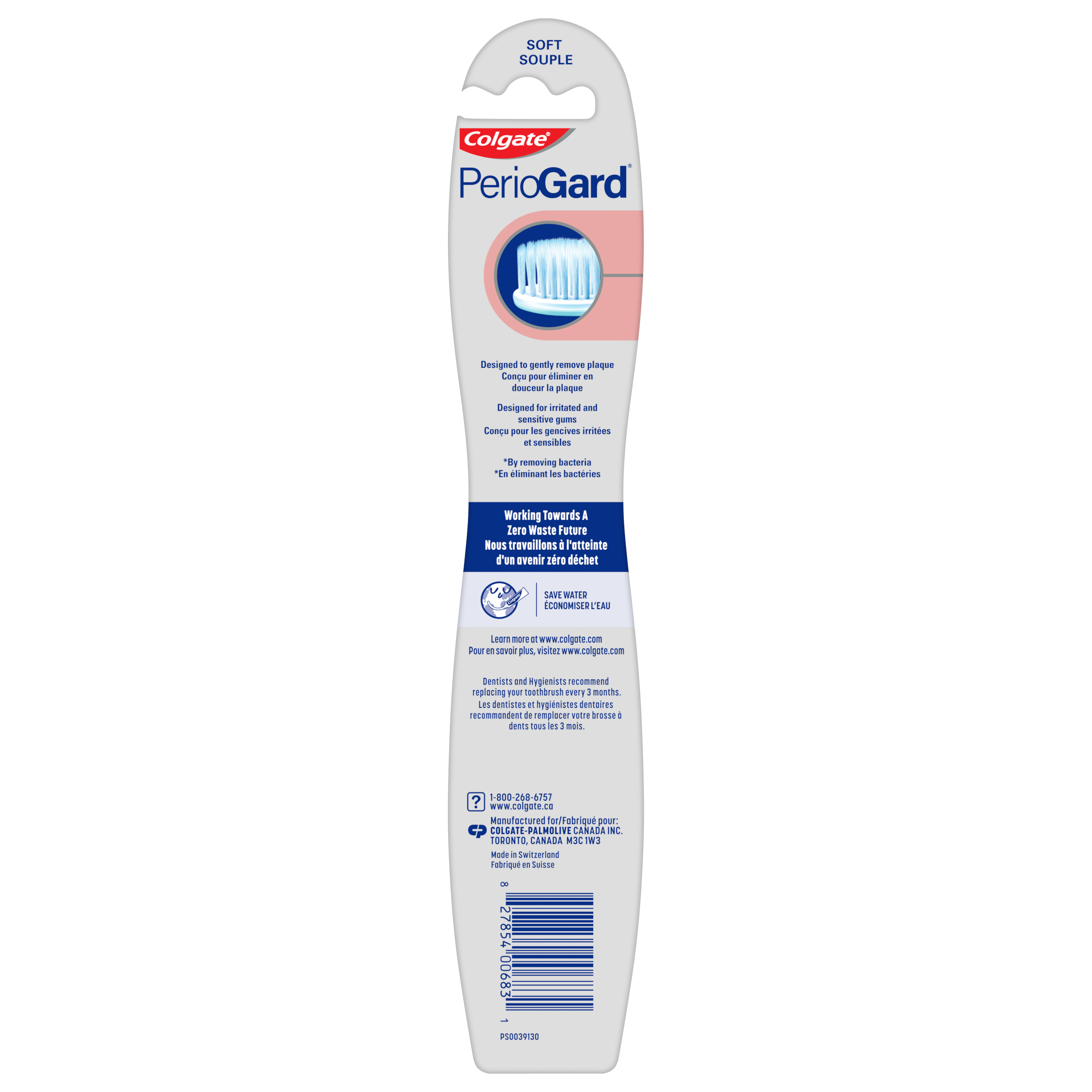 Product Title Colgate PerioGard Gum Protection SoftToothbrush SKU 61030294 SKU eCommerce Name Colgate PerioGard Gum Protection SoftToothbrush Consumer Unit - GTIN 00827854006831 Case - GTIN 10827854006838 Product Category Oral Care Product Sub Category Manual TB Brand Colgate Product Sub Brand Colgate Periogard Man TB Consumer Unit Gross Weight 0.027 KG / 0.060 LB Consumer Unit Net Weight 0.020 KG / 0.044 LB Consumer Unit Length 20.000 MM / 0.787 IN Consumer Unit Width 42.000 MM / 1.654 IN Consumer Unit Height 229.000 MM / 9.016 IN Consumer Unit Volume 0.170 C8 / 0.006 CF Product Title Colgate PerioGard Gum Protection SoftToothbrush eCommerce Copy- Long Description Colgate® PerioGard Gum Protection Soft Toothbrush Colgate PerioGard Gum Protection SoftToothbrush provides you with a gentle clean every time. Developed by dental experts, the Periogard soft toothbrush is designed for gum care. This unique toothbrush gently removes plaque and helps to fight the cause of gum bleeding.* Plus, its soft bristles make it the ideal soft adult toothbrush for sensitive and irritated gums. *By removing bacteria. Gum Care to the Next Level Made for everyone and developed BY with dental experts, this toothbrush has ultra soft bristles for a gentle clean and healthy gums. Healthy Smiles With Colgate At Colgate, we make products that promote healthy smiles. Not only because having a healthy smile is important to your overall health, but because when you have a healthy smile, you actually smile more – and that’s a powerful thing. Smiles are the simplest form of optimism, something we need now more than ever. That’s why we’re championing optimism – we are committed to creating a healthier planet and working every day to create healthy smiles for all. Everyone has the right to a bright smile. That’s why we’re committed to raising oral healthcare standards everywhere. Whether it’s building healthy new habits as kids or learning something new from the experts, we’re here for you. Keywords (eCommerce) Ultra Soft Toothbrush - soft adult toothbrush - Gum Protection toothbrush - adult manual toothbrush - soft bristle toothbrush- toothbrush for adults-