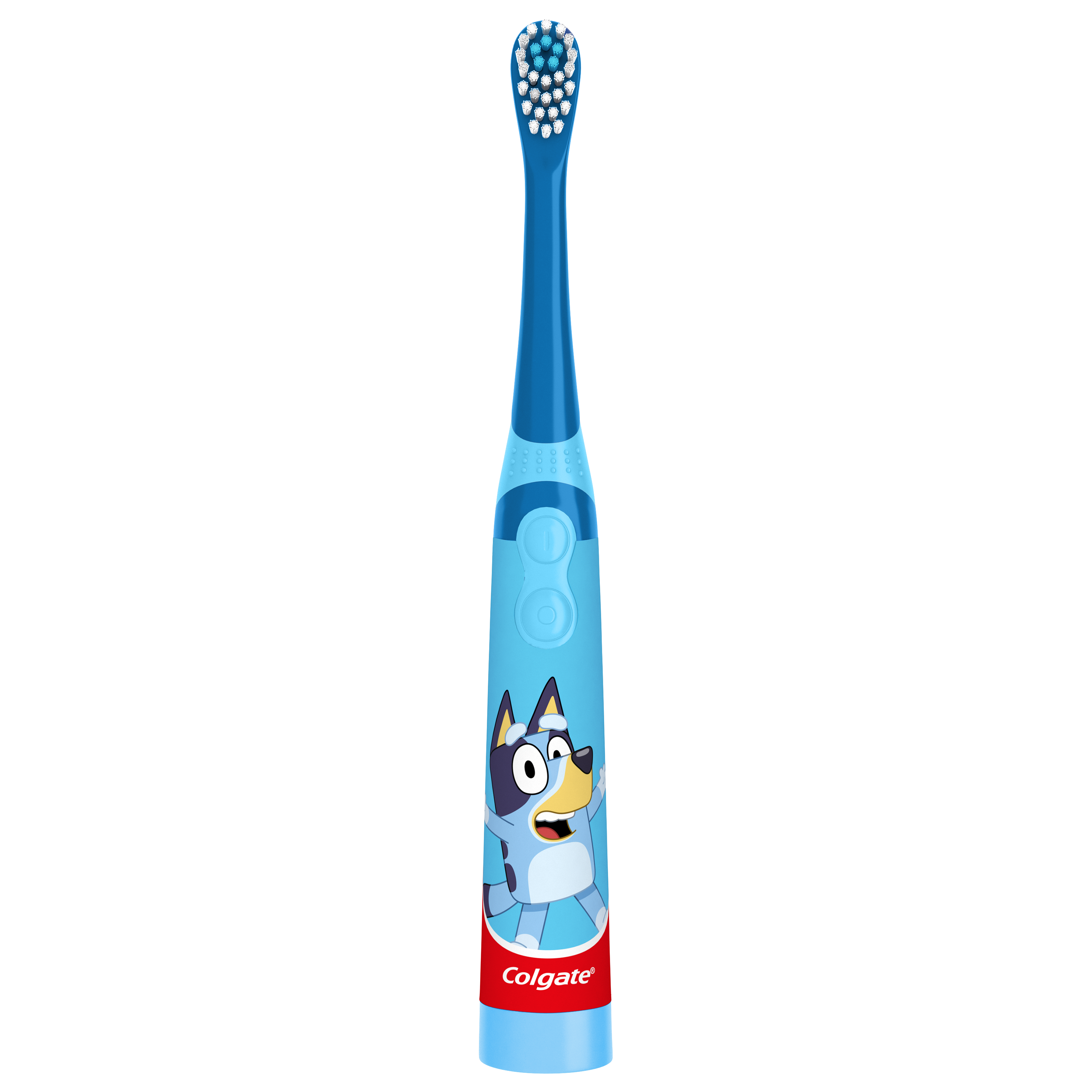 Product Title Colgate Kids Battery Toothbrush Extra Soft ,1 Pack , Bluey SKU 61043819 SKU eCommerce Name Colgate Kids Battery Toothbrush Extra Soft ,1 Pack , Bluey Consumer Unit - GTIN 00827854004318 Case - GTIN 10827854016349 Product Category Oral Care Product Sub Category Battery TB Brand Colgate Product Sub Brand Colgate Kids BTB Consumer Unit Gross Weight 0.071 KG / 0.157 LB Consumer Unit Net Weight 0.059 KG / 0.130 LB Consumer Unit Length 26.000 MM / 1.024 IN Consumer Unit Width 54.000 MM / 2.126 IN Consumer Unit Height 229.000 MM / 9.016 IN Consumer Unit Volume 0.319 C8 / 0.011 CF Product Title Colgate Kids Battery Toothbrush Extra Soft ,1 Pack , Bluey Product Description The Colgate Kids Battery Powered Bluey Toothbrush is a kids battery toothbrush that provides fun toothbrushing to keep children’s teeth clean and sweep away plaque. With a small vibrating brush head, this kids vibrating toothbrush cleans better than a manual toothbrush and makes teeth brushing fun for kids. The battery-operated Bluey toothbrush features a small, oscillating head with extra soft bristles that are gentle on delicate gums. This kids battery toothbrush is battery-powered (1 AA battery is included) and features an easy on/off switch. Keep kids engaged in their brushing habits with the Colgate Kids Battery Powered Bluey Toothbrush. Good oral health starts at a very young age. Designed for little hands and mouths beginning at ages 3 and up, the Colgate Kids Battery Powered Bluey Toothbrush is an extra soft battery-operated toothbrush for kids designed to facilitate a fun and easy toothbrushing experience that kids will enjoy. This kids battery toothbrush features a slim, easy-to-hold handle to make it easy for little hands to maneuver when brushing. Plus, this kids battery toothbrush also has a flat-laying handle so kids can easily apply toothpaste without the brush rolling over or away when you set it down on the counter. And its vibrating brush head is small enough for little mouths. At Colgate, we’re making kids toothbrushes more fun because we know the power of a healthy smile. Our children’s oral health initiative, Bright Smiles, Bright Futures, has impacted the lives of more than a billion children by providing free oral health education and dental care in over 80 countries. As the world leader in oral care, Colgate is committed to improving children's oral health around the world. eCommerce Copy The Colgate Kids Bluey Battery Toothbrush provides a great clean made fun. Made for ages 3 and up, this kids battery toothbrush was designed with a slim, easy-to-hold handle to let them do the brushing, while the vibrating brush head does all the work. Its small, oscillating head has extra soft bristles that are gentle on delicate gums while cleaning teeth and sweeping away plaque. This soft toothbrush for kids is battery-powered, so it’s easy to replace the battery wherever you are (1 AA battery is included). eCommerce Copy- Long Description The Colgate Kids Bluey Battery Toothbrush provides a great clean made fun. Made for ages 3 and up, this kids battery toothbrush was designed with a slim, easy-to-hold handle to let them do the brushing, while the vibrating brush head does all the work. Its small, oscillating head has extra soft bristles that are gentle on delicate gums while cleaning teeth and sweeping away plaque. This soft toothbrush for kids is battery-powered, so it’s easy to replace the battery wherever you are (1 AA battery is included). Colgate Kids Powered Vibrating Toothbrush Bluey 1 Pack Make brushing fun with the Colgate Kids Powered Vibrating Toothbrush Bluey 1 Pack! This toothbrush keeps children’s teeth clean and sweeps away plaque. With a vibrating brush head, this kids battery toothbrush cleans better than a manual toothbrush. The Bluey toothbrush features a small, oscillating head with extra soft bristles that are gentle on delicate gums. This vibrating toothbrush for kids is battery-powered, so it’s easy to recharge wherever you are (1 AA battery is included). Get the classic Colgate clean you can count on with the Colgate Kids Bluey Battery Toothbrush. Toothbrushes Made Especially for Kids Good oral health starts at a very young age. Designed for little hands and mouths beginning at ages 3 and up, the Colgate Kids Powered Vibrating Toothbrush is a battery-powered toothbrush for kids designed to facilitate a fun and easy toothbrushing experience that kids will enjoy. The kids battery toothbrush features a slim, easy-to-hold handle to let them do the brushing, while the vibrating brush head does all the work. This kids toothbrush also has a flat-laying handle so kids can easily apply toothpaste without the brush rolling over or away when you set it down on the counter. And its vibrating brush head is small enough to reach every corner of the mouth. Healthy Smiles With Colgate Bright Smiles, Bright Futures®: At Colgate, we’re making kids toothbrushes more fun because we know the power of a healthy smile. Our children’s oral health initiative, Bright Smiles, Bright Futures®, has impacted the lives of more than a billion children by providing free oral health education and dental care in over 80 countries. As the world leader in oral care, Colgate is committed to improving children's oral health around the world. Bullet 1 Includes one (1) Colgate Kids Battery Powered Bluey Toothbrush with included AA battery Bullet 2 This Colgate Kids Battery Powered Toothbrush is made for children ages 3 and up Bullet 3 This Colgate battery powered toothbrush for kids has a small, vibrating brush head with extra soft bristles that clean teeth and sweep away plaque Bullet 4 A flat-laying handle makes it easy to apply toothpaste to this kids vibrating toothbrush without the brush rolling over or away Bullet 5 This kids battery toothbrush features an easily replaceable battery (1 AA battery included) and has a convenient on/off switch OS Amazon Product Title Colgate Kids Battery Powered