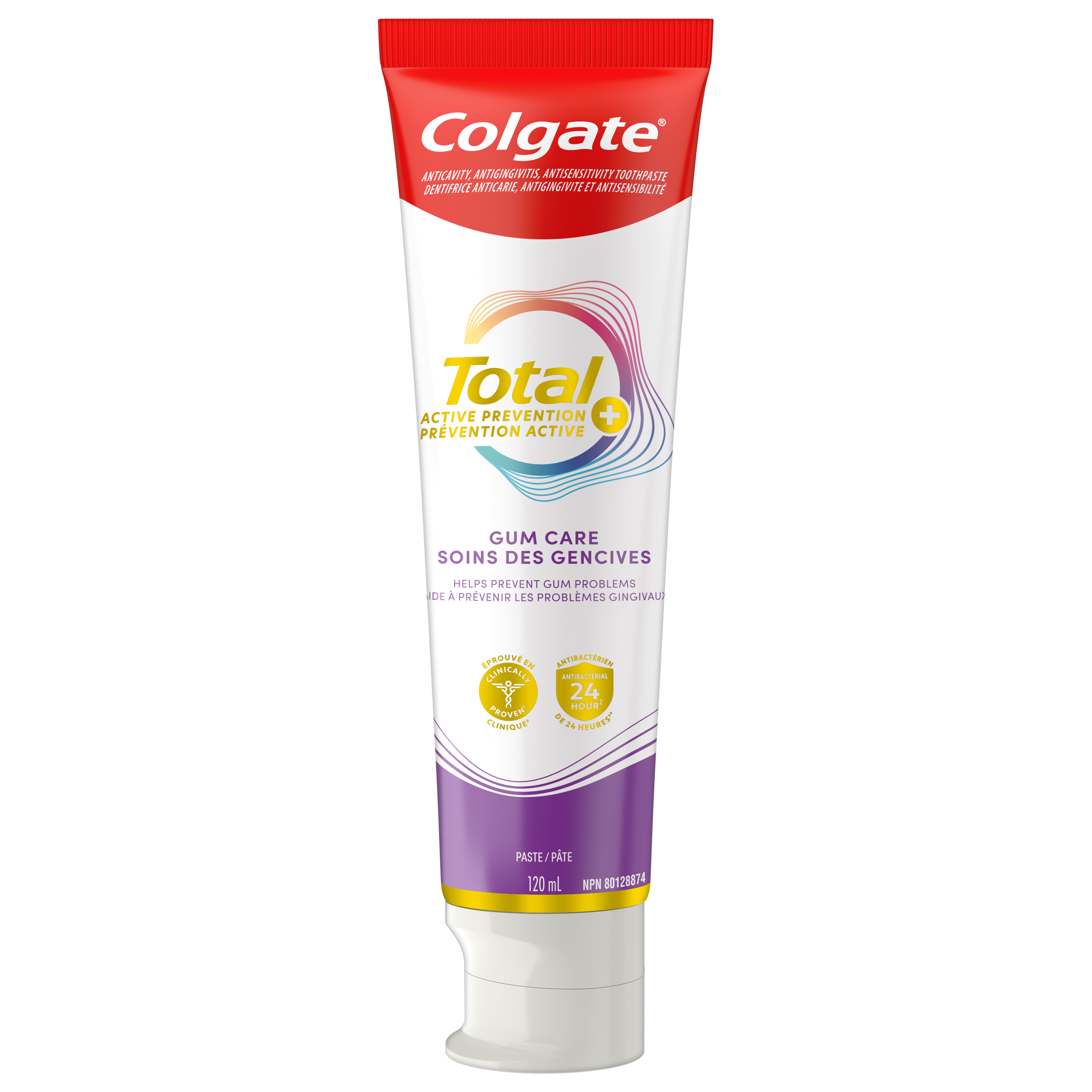 To help prevent sensitivity, plaque, gingivitis, and tartar, choose the Colgate Total Active Prevention Plus Gum Care Toothpaste. Feel secure knowing that Colgate Total Active Prevention Gum Care Toothpaste has your cavities, gingivitis, and sensitivity needs covered for a confident smile.