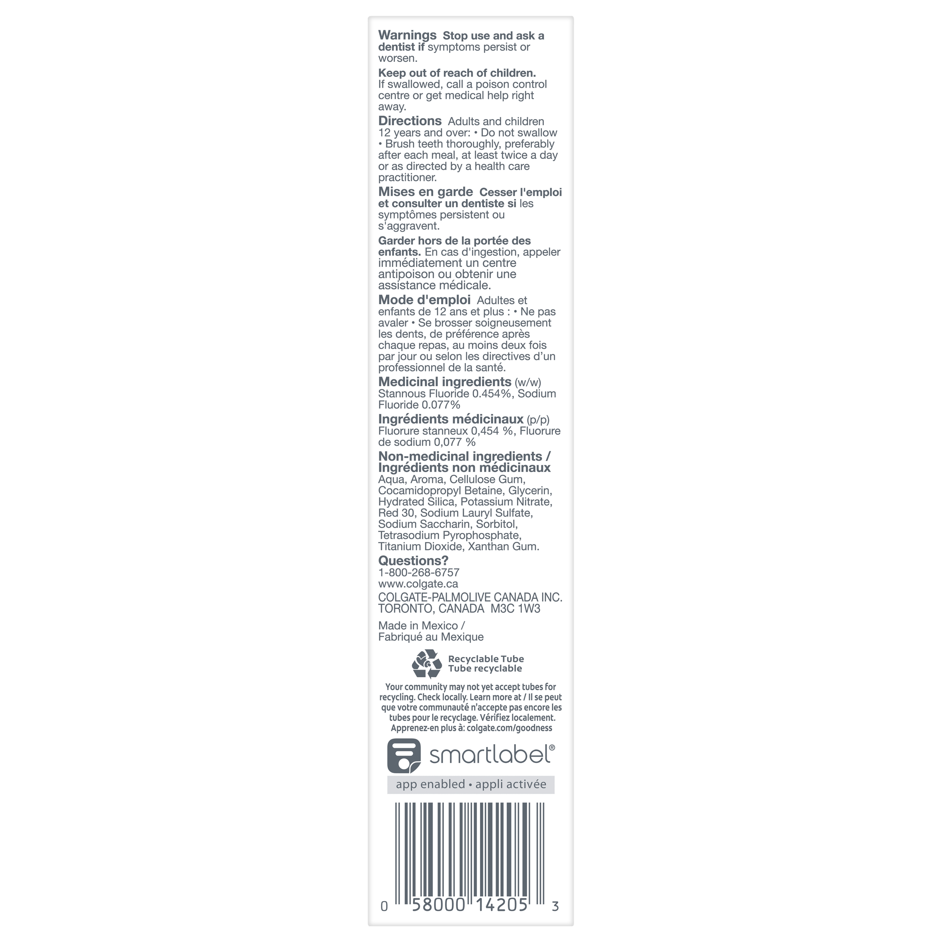 Product Title Colgate Total Active Prevention Plus Deep Clean Toothpaste, Mint Flavour, 70 mL SKU 61044293 SKU eCommerce Name Colgate Total Active Prevention Plus Deep Clean Toothpaste, Mint Flavour, 70 mL Consumer Unit - GTIN 00058000142053 Case - GTIN 10058000142050 Product Category Oral Care Product Sub Category Toothpaste Brand Colgate Product Sub Brand Colgate Total TP Consumer Unit Gross Weight 0.115 KG / 0.254 LB Consumer Unit Net Weight 0.092 KG / 0.203 LB Consumer Unit Length 39.000 MM / 1.535 IN Consumer Unit Width 173.000 MM / 6.811 IN Consumer Unit Height 47.000 MM / 1.850 IN Consumer Unit Volume 0.317 C8 / 0.011 CF Product Title Colgate Total Active Prevention Plus Deep Clean Toothpaste, Mint Flavour, 70 mL Product Description Help prevent common oral care problems* before they start with Colgate Total Active Prevention Plus Deep Clean Toothpaste. This fluoride toothpaste uses an active cleaning formula with micro particles to help fight plaque between teeth and hard-to-reach spaces. This fluoride toothpaste is also formulated with additional fluoride to protect against cavities. Plus, this toothpaste fights the root cause of cavities, gingivitis, plaque, enamel erosion, sensitivity, and tartar. Colgate Total Active Prevention Plus Deep Clean Toothpaste is clinically proven to help prevent plaque buildup. This fluoride toothpaste developed by experts is also formulated with additional fluoride to protect against cavities. Help deep clean hard-to-reach areas and freshen your breath with this deep cleaning mint toothpaste. To help prevent sensitivity, plaque, gingivitis, and tartar, choose Colgate Total Active Prevention Plus Deep Clean Toothpaste. Feel secure knowing that Colgate Total Active Prevention Plus Deep Clean Toothpaste has your cavities, gingivitis, and sensitivity needs covered for a confident smile. *such as cavities and gingivitis eCommerce Copy <bulletlist><bullet>Includes one (1) 70 mL tube of Colgate Total Active Prevention Plus Deep Clean Toothpaste</bullet> <bullet>This deep cleaning mint toothpaste uses an active cleaning formula with micro particles to help fight plaque between teeth and hard-to-reach spaces</bullet> <bullet>New Colgate Total fights the root cause of common oral health issues such as cavities, gingivitis, plaque, enamel erosion, sensitivity and tartar</bullet> <bullet>This fluoride toothpaste developed by experts is formulated with additional fluoride to protect against cavities</bullet> <bullet>Help prevent common oral care problems* before they start with this deep clean toothpaste (*such as cavities and gingivitis)</bullet> <bullet>Proactive prevention against cavities, sensitivity, plaque, tartar, gingivitis</bullet></bulletlist> eCommerce Copy- Long Description Colgate Total Active Prevention Plus Deep Clean Toothpaste, 70 mL