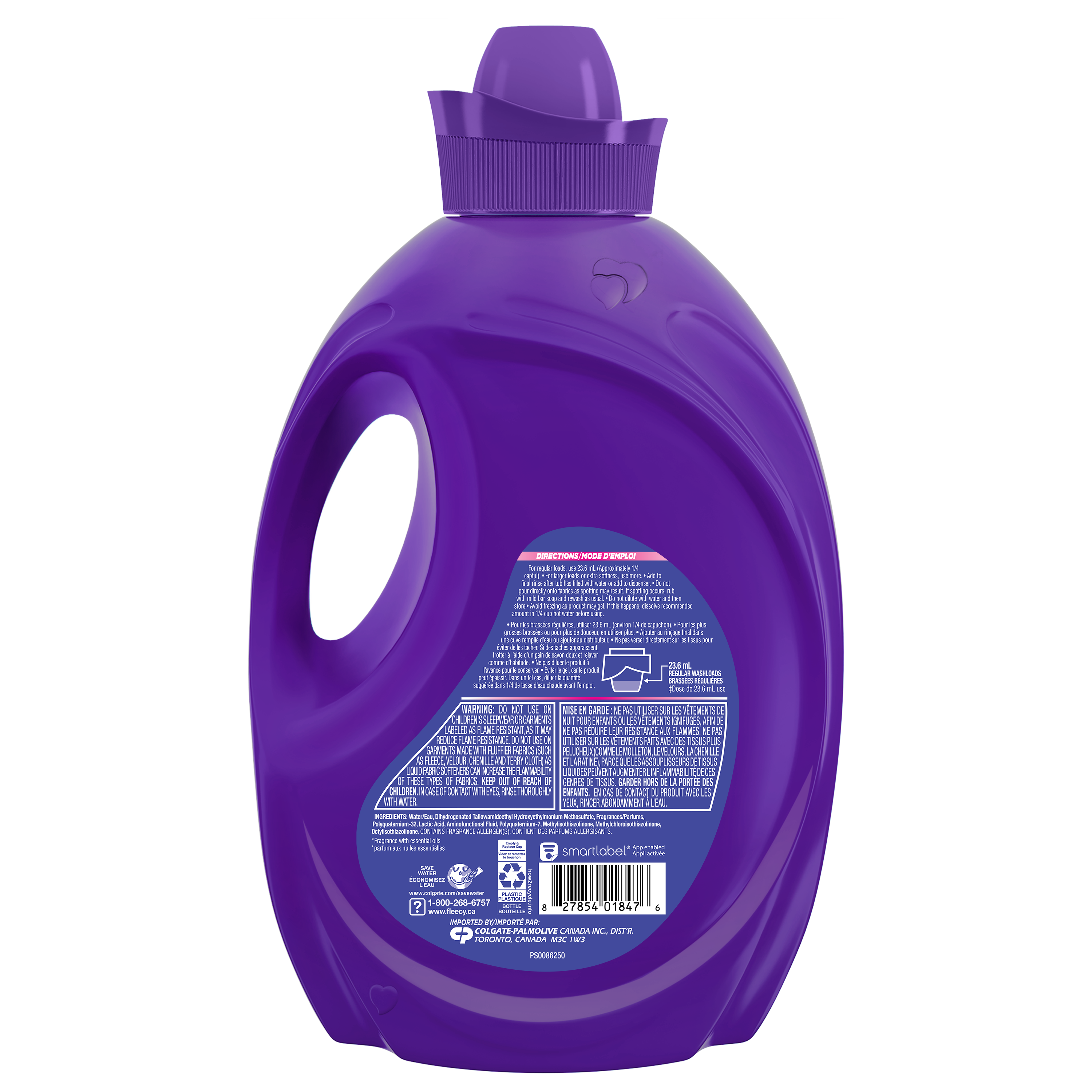 Product Title Fleecy Sensations Liquid Fabric Conditioner, Lavender Scent, 3.5 L SKU 61045400 SKU eCommerce Name Fleecy Sensations Liquid Fabric Conditioner, Lavender Scent, 3.5 L Consumer Unit - GTIN 00827854018476 Case - GTIN 10827854018466 Product Category Home Care Product Sub Category FC Liquids Brand Fleecy Product Sub Brand Fleecy Liq FC Consumer Unit Gross Weight 3.653 KG / 8.055 LB Consumer Unit Net Weight 3.500 KG / 7.718 LB Consumer Unit Length 197.000 MM / 7.756 IN Consumer Unit Width 123.000 MM / 4.843 IN Consumer Unit Height 310.000 MM / 12.205 IN Consumer Unit Volume 7.512 C8 / 0.265 CF Product Title Fleecy Sensations Liquid Fabric Conditioner, Lavender Scent, 3.5 L Product Description Discover the enchanting touch of Fleecy Sensations Liquid Fabric Conditioner, featuring a captivating Lavender scent. The delicate Lavender fragrance, reminiscent of a tranquil garden, fills your laundry with a serene and gentle aroma that your family will love. Made with essential oils*, this fabric softener elevates each wash with a soothing touch, bringing the irresistible softening and freshness of your fabrics to new heights. Our unique formula ensures that every load emerges feeling soft and smelling fresh. For regular loads, use 23.6 mL (approximately ¼ capful). For larger loads or extra softness, use more. Add to the final rinse after the tub has filled with water or add to the dispenser. Embrace the sensory delight of Fleecy Sensations and transform your fabric care routine into an expression of love for your clothes and linens. *Fragrance with essential oils eCommerce Copy- Long Description Discover the enchanting touch of our new Fleecy Sensations Liquid Fabric Conditioner, now featuring a captivating Lavender scent. Infused with essential oils, this fabric softener elevates each wash with a natural, soothing touch, bringing the freshness and softness of your fabrics to new heights. The delicate lavender fragrance, reminiscent of a tranquil garden, fills your laundry with a serene and gentle aroma that your family will love. Designed to last for 148 washes, our unique formula ensures that every load emerges feeling soft and smelling fresh. Embrace the sensory delight of Fleecy Sensations and transform your fabric care routine into an expression of love for your clothes and linens. Bullet 1 One 3.5 L bottle of Fleecy Sensations Liquid Fabric Conditioner, Lavender Scent Bullet 2 Designed to deliver consistent performance and ensuring long-lasting freshness and comfort Bullet 3 The delicate Lavender scent, reminiscent of a tranquil garden, fills your laundry with a serene and gentle aroma that your family will love Bullet 4 Made with essential oils*, this fabric softener elevates each wash with a soothing touch Bullet 5 Experience irresistible softening and freshness in your clothes and linens, making them a pleasure to wear and use Bullet 6 For regular loads, use 23.6 mL (approximately ¼ capful). For larger loads or extra softness, use more. Add to the final rinse after the tub has filled with water or add to the dispenser Keywords (eCommerce) Fabric conditioner, fabric softener, essential oils, lavender scent, clothes, linens, laundry, garments, fabrics, Fleecy, lavender, fabric care, lavender fragrance, liquid fabric conditioner, liquid fabric softener OS Amazon Product Title Fleecy Sensations Liquid Fabric Conditioner, Made with Essential Oils, Fabric Softener, Lavender Scent, 3.5 L OS Amazon Product Description Discover the enchanting touch of Fleecy Sensations Liquid Fabric Conditioner, featuring a captivating Lavender scent. The delicate Lavender fragrance, reminiscent of a tranquil garden, fills your laundry with a serene and gentle aroma that your family will love. Made with essential oils*, this fabric softener elevates each wash with a soothing touch, bringing the irresistible softening and freshness of your fabrics to new heights. Our unique formula ensures that every load emerges feeling soft and smelling fresh. For regular loads, use 23.6 mL (approximately ¼ capful). For larger loads or extra softness, use more. Add to the final rinse after the tub has filled with water or add to the dispenser. Embrace the sensory delight of Fleecy Sensations and transform your fabric care routine into an expression of love for your clothes and linens. *Fragrance with essential oils OS Amazon Bullet 1 One 3.5 L bottle of Fleecy Sensations Liquid Fabric Conditioner, Lavender Scent OS Amazon Bullet 2 Designed to deliver consistent performance and ensuring long-lasting freshness and comfort OS Amazon Bullet 3 The delicate Lavender scent, reminiscent of a tranquil garden, fills your laundry with a serene and gentle aroma that your family will love OS Amazon Bullet 4 Made with essential oils*, this fabric softener elevates each wash with a soothing touch OS Amazon Bullet 5 Experience irresistible softening and freshness in your clothes and linens, making them a pleasure to wear and use OS Walmart Product Title Fleecy Sensations Liquid Fabric Conditioner, Lavender Scent, 3.5 L OS Walmart Product Description Discover the enchanting touch of Fleecy Sensations Liquid Fabric Conditioner, featuring a captivating Lavender scent. The delicate Lavender fragrance, reminiscent of a tranquil garden, fills your laundry with a serene and gentle aroma that your family will love. Made with essential oils*, this fabric softener elevates each wash with a soothing touch, bringing the irresistible softening and freshness of your fabrics to new heights. Our unique formula ensures that every load emerges feeling soft and smelling fresh. For regular loads, use 23.6 mL (approximately ¼ capful). For larger loads or extra softness, use more. Add to the final rinse after the tub has filled with water or add to the dispenser. Embrace the sensory delight of Fleecy Sensations and transform your fabric care routine into an expression of love for your clothes and linens. *Fragrance with essential oils OS Walmart Bullet