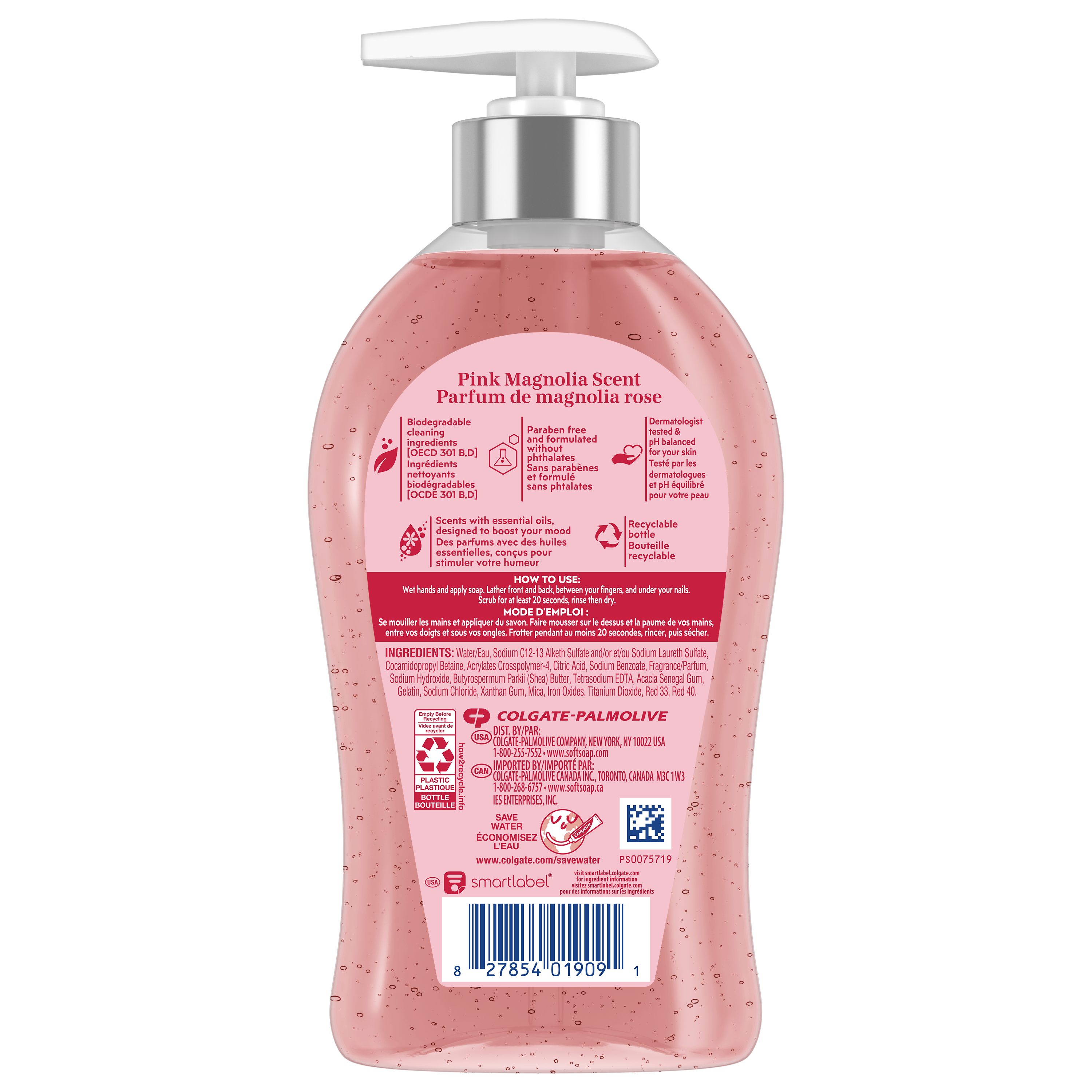 Product Title Softsoap Blissful Liquid Hand Soap, Paraben Free, pH Balanced, Pink Magnolia Scent, 332 mL Pump Bottle SKU 61045939 SKU eCommerce Name Softsoap Blissful Liquid Hand Soap, Paraben Free, pH Balanced, Pink Magnolia Scent, 332 mL Pump Bottle Consumer Unit - GTIN 00827854019091 Case - GTIN 10827854019081 Product Category Personal Care Product Sub Category Liquid Hand Wash Brand Softsoap Product Sub Brand Softsoap Therapy LHW Consumer Unit Gross Weight 0.378 KG / 0.833 LB Consumer Unit Net Weight 0.343 KG / 0.756 LB Consumer Unit Length 45.000 MM / 1.772 IN Consumer Unit Width 84.000 MM / 3.307 IN Consumer Unit Height 184.000 MM / 7.244 IN Consumer Unit Volume 0.696 C8 / 0.025 CF Product Title Softsoap Blissful Liquid Hand Soap, Paraben Free, pH Balanced, Pink Magnolia Scent, 332 mL Pump Bottle Product Description Joy can be found in everyday moments with Softsoap’s Blissful Pink Magnolia Scent Liquid Hand Soap. Enhanced with AromaLift fragrance technology designed to boost your mood. This pink hand soap features scents with essential oils, turning a simple task into a moment of happiness with every pump. Softsoap, Canada's #1 Liquid Hand Soap brand (1), has been trusted to clean hands since 1975. Enjoy the captivating scent of pink magnolia, combined with moisture beads in the formula. Our formula is pH balanced, is paraben free, and formulated without phthalates. Health care agencies recommend washing hands with soap and clean running water for 20 seconds to wash away dirt and bacteria. Don’t miss the chance to elevate your handwashing experience! (1) Based in part on data reported by Nielsen through its Market Track Service for the Liquid Hand Soap Category for the 52 week period ending 9/28/24, for the All Outlet market. Copyright © 2024 Nielsen. Bullet 1 One 332 mL pump bottle of Softsoap Renewed Liquid Hand Soap, Pink Magnolia Scent Bullet 2 Softsoap is Canada's #1 Liquid Hand Soap brand (1), trusted to clean your hands since 1975 Bullet 3 With AromaLift fragrance technology designed to boost your mood Bullet 4 Enjoy the captivating scent of pink magnolias, capturing the essence of blooming florals Bullet 5 Versatile to use as a bathroom hand soap, kitchen hand soap, or in any other space that needs a touch of fun Bullet 6 Our formula is pH balanced, is paraben free, and formulated without phthalates OS Amazon Product Title Softsoap Blissful Liquid Hand Soap, Paraben Free, pH Balanced, Pink Magnolia Scent, 332 mL Pump Bottle OS Amazon Product Description Joy can be found in everyday moments with Softsoap’s Blissful Pink Magnolia Scent Liquid Hand Soap. Enhanced with AromaLift fragrance technology designed to boost your mood. This pink hand soap features scents with essential oils, turning a simple task into a moment of happiness with every pump. Softsoap, Canada's #1 Liquid Hand Soap brand (1), has been trusted to clean hands since 1975. Enjoy the captivating scent of pink magnolia, combined with moisture beads in the formula. Our formula is pH balanced, is paraben free, and formulated without phthalates. Health care agencies recommend washing hands with soap and clean running water for 20 seconds to wash away dirt and bacteria. Don’t miss the chance to elevate your handwashing experience! (1) Based in part on data reported by Nielsen through its Market Track Service for the Liquid Hand Soap Category for the 52 week period ending 9/28/24, for the All Outlet market. Copyright © 2024 Nielsen. OS Amazon Bullet 1 One 332 mL pump bottle of Softsoap Renewed Liquid Hand Soap, Pink Magnolia Scent OS Amazon Bullet 2 Softsoap is Canada's #1 Liquid Hand Soap brand (1), trusted to clean your hands since 1975 OS Amazon Bullet 3 Enhanced with AromaLift fragrance technology designed to boost your mood OS Amazon Bullet 4 Enjoy the captivating scent of pink magnolias, capturing the essence of blooming florals OS Amazon Bullet 5 Versatile to use as a bathroom hand soap, kitchen hand soap, or in any other space that needs a touch of fun OS Walmart Product Title Softsoap Blissful Liquid Hand Soap, Paraben Free, Pink Magnolia Scent, 332 mL OS Walmart Product Description Joy can be found in everyday moments with Softsoap’s Blissful Pink Magnolia Scent Liquid Hand Soap. Enhanced with AromaLift fragrance technology designed to boost your mood. This pink hand soap features scents with essential oils, turning a simple task into a moment of happiness with every pump. Softsoap, Canada's #1 Liquid Hand Soap brand (1), has been trusted to clean hands since 1975. Enjoy the captivating scent of pink magnolia, combined with moisture beads in the formula. Our formula is pH balanced, is paraben free, and formulated without phthalates. Health care agencies recommend washing hands with soap and clean running water for 20 seconds to wash away dirt and bacteria. Don’t miss the chance to elevate your handwashing experience! (1) Based in part on data reported by Nielsen through its Market Track Service for the Liquid Hand Soap Category for the 52 week period ending 9/28/24, for the All Outlet market. Copyright © 2024 Nielsen. OS Walmart Bullet 1 One 332 mL pump bottle of Softsoap Renewed Liquid Hand Soap, Pink Magnolia Scent OS Walmart Bullet 2 Softsoap is Canada's #1 Liquid Hand Soap brand (1), trusted to clean your hands since 1975 OS Walmart Bullet 3 Enhanced with AromaLift fragrance technology designed to boost your mood OS Walmart Bullet 4 Enjoy the captivating scent of pink magnolias, capturing the essence of blooming florals OS Walmart Bullet 5 Versatile to use as a bathroom hand soap, kitchen hand soap, or in any other space that needs a touch of fun OS Walmart Bullet 6 Our formula is pH balanced, is paraben free, and formulated without phthalates Walmart Bullet 1 One 11.25 fl oz pump bottle of Softsoap Renewed Liquid Hand Soap, Pink Magnolia Scent Walmart Bullet 2 Softsoap is America's #1 Liquid Hand Soap brand (1), trusted to clean your hands since 1975 Walmart Bullet 3 With AromaLift frag