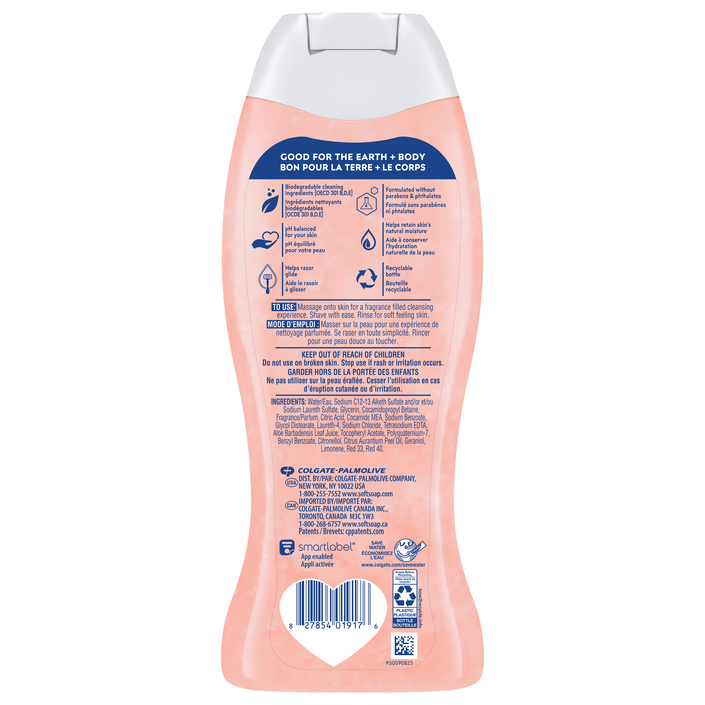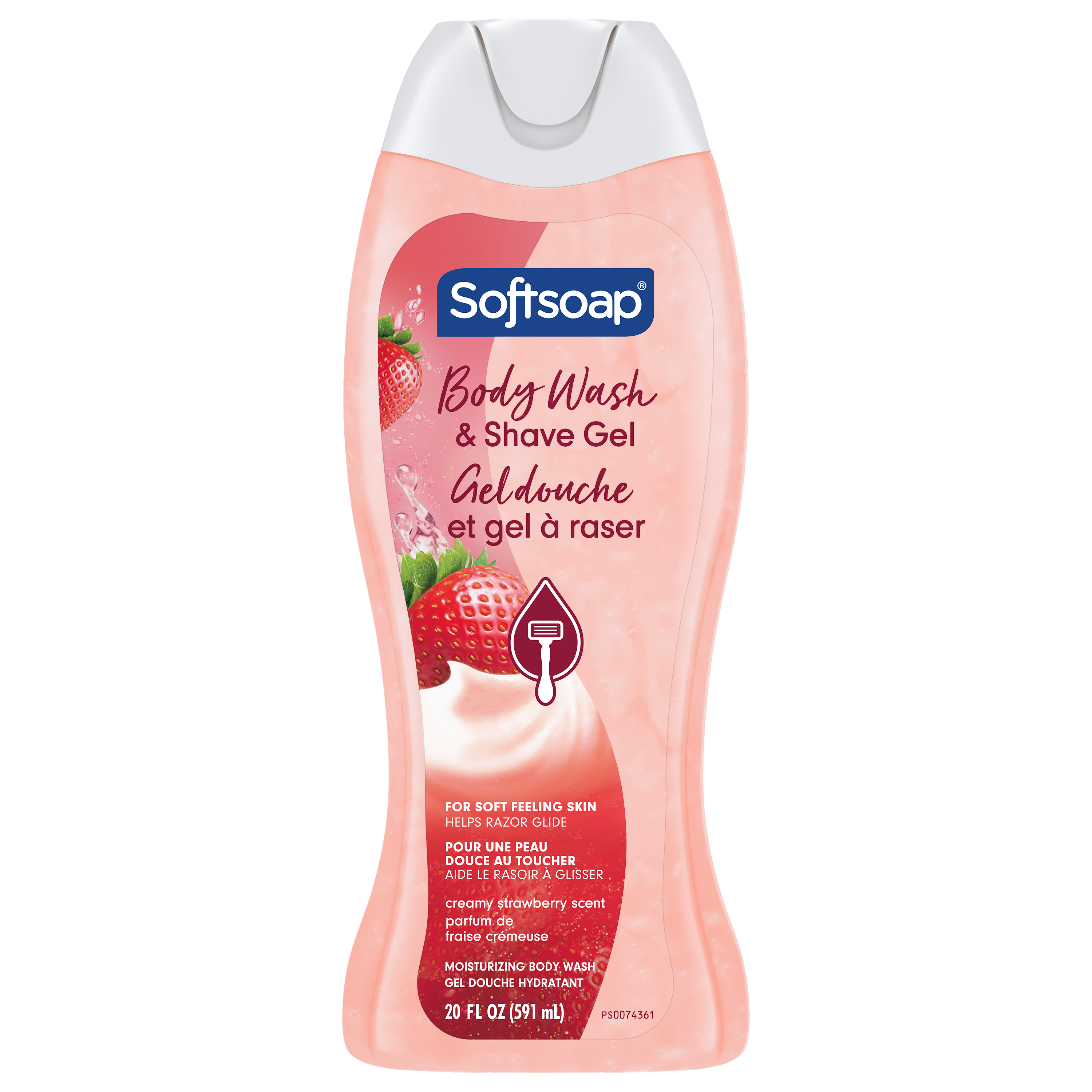 Product Title SSBW 20F CS SP 2IN1 INNOVATN STRAWBERRY SKU 61045994 Consumer Unit - GTIN 00827854019176 Case - GTIN 10827854019166 Product Category Personal Care Product Sub Category Body Wash Brand Softsoap Product Sub Brand Softsoap BW Consumer Unit Gross Weight 0.918 KG / 2.024 LB Consumer Unit Net Weight 0.610 KG / 1.345 LB Consumer Unit Length 54.000 MM / 2.126 IN Consumer Unit Width 91.000 MM / 3.583 IN Consumer Unit Height 240.000 MM / 9.449 IN Consumer Unit Volume 1.179 C8 / 0.042 CF Product Title SSBW 20F CS SP 2IN1 INNOVATN STRAWBERRY OS Amazon Product Title Softsoap Moisturizing Body Wash and Shave Gel, Creamy Strawberry Scent, 591 mL Bottle OS Amazon Product Description Indulge in the creamy aroma of strawberries as it envelops your senses with Softsoap Moisturizing Body Wash and Shave Gel. This pink body wash doubles as a shave gel, simplifying your shower routine. Formulated to moisturize for softer feeling skin, it also helps your razor glide effortlessly, letting you shave with ease. This body wash for women is pH balanced. It is free from parabens and phthalates, so you can feel good about your body wash. Experience a moisturizing body wash that nourishes your skin and designed to provide a comfortable, easy shave every time. Treat yourself to a Creamy Strawberry Scented body wash with a fragrance everyone loves. Wrap yourself in the delightful scent of strawberries while knowing you're using a body wash that's gentle on your skin. This body wash offers a luxurious experience every time you shower. Feel the joy of clean! OS Amazon Bullet 1 One 591 mL bottle of Softsoap Moisturizing Body Wash and Shave Gel, Creamy Strawberry Scent OS Amazon Bullet 2 Dual-benefit body wash and shave gel simplifies your shower routine OS Amazon Bullet 3 Moisturizing formula for softer feeling skin OS Amazon Bullet 4 Helps razor glide effortlessly for a smoother shave OS Amazon Bullet 5 Experience a moisturizing body wash that nourishes your skin OS Walmart Product Title Softsoap Moisturizing Body Wash and Shave Gel, Creamy Strawberry Scent, 591 mL OS Walmart Product Description Indulge in the creamy aroma of strawberries as it envelops your senses with Softsoap Moisturizing Body Wash and Shave Gel. This pink body wash doubles as a shave gel, simplifying your shower routine. Formulated to moisturize for softer feeling skin, it also helps your razor glide effortlessly, letting you shave with ease. This body wash for women is pH balanced. It is free from parabens and phthalates, so you can feel good about your body wash. Experience a moisturizing body wash that nourishes your skin and designed to provide a comfortable, easy shave every time. Treat yourself to a Creamy Strawberry Scented body wash with a fragrance everyone loves. Wrap yourself in the delightful scent of strawberries while knowing you're using a body wash that's gentle on your skin. This body wash offers a luxurious experience every time you shower. Feel the joy of clean! OS Walmart Bullet 1 One 591 mL bottle of Softsoap Moisturizing Body Wash and Shave Gel, Creamy Strawberry Scent OS Walmart Bullet 2 Dual-benefit body wash and shave gel simplifies your shower routine OS Walmart Bullet 3 Moisturizing formula for softer feeling skin OS Walmart Bullet 4 Helps razor glide effortlessly for a smoother shave OS Walmart Bullet 5 Experience a moisturizing body wash that nourishes your skin OS Walmart Bullet 6 Designed to provide a comfortable, easy shave every time OS Walmart Bullet 7 Treat yourself to a Creamy Strawberry Scented body wash with a fragrance everyone loves Walmart Bullet 1 One 20 fl oz bottle of Softsoap Moisturizing Body Wash and Shave Gel, Creamy Strawberry Scent Walmart Bullet 2 Dual-benefit body wash and shave gel simplifies your shower routine Walmart Bullet 3 Moisturizing formula for softer feeling skin Walmart Bullet 4 Helps razor glide effortlessly for a smoother shave Walmart Bullet 5 Experience a moisturizing body wash that nourishes your skin Walmart Bullet 6 Designed to provide a comfortable, easy shave every time Walmart Bullet 7 Treat yourself to a Creamy Strawberry Scented body wash with a fragrance everyone loves Walmart Bullet 9 Suitable for all ages and all skin types. OS Loblaws Product Title Moisturizing Body Wash & Shave Gel, Creamy Strawberry OS Loblaws Product Description Indulge in the creamy aroma of strawberries as it envelops your senses with Softsoap Moisturizing Body Wash and Shave Gel. This pink body wash doubles as a shave gel, simplifying your shower routine. Formulated to moisturize for softer feeling skin, it also helps your razor glide effortlessly, letting you shave with ease. This body wash for women is pH balanced. It is free from parabens and phthalates, so you can feel good about your body wash. Experience a moisturizing body wash that nourishes your skin and designed to provide a comfortable, easy shave every time. Treat yourself to a Creamy Strawberry Scented body wash with a fragrance everyone loves. Feel the joy of clean! OS Loblaws Bullet 1 One 591 mL bottle of Softsoap Moisturizing Body Wash and Shave Gel, Creamy Strawberry Scent OS Loblaws Bullet 2 Dual-benefit body wash and shave gel simplifies your shower routine OS Loblaws Bullet 3 Moisturizing formula for softer feeling skin OS Loblaws Bullet 4 Helps razor glide effortlessly for a smoother shave OS Loblaws Bullet 5 Experience a moisturizing body wash that nourishes your skin