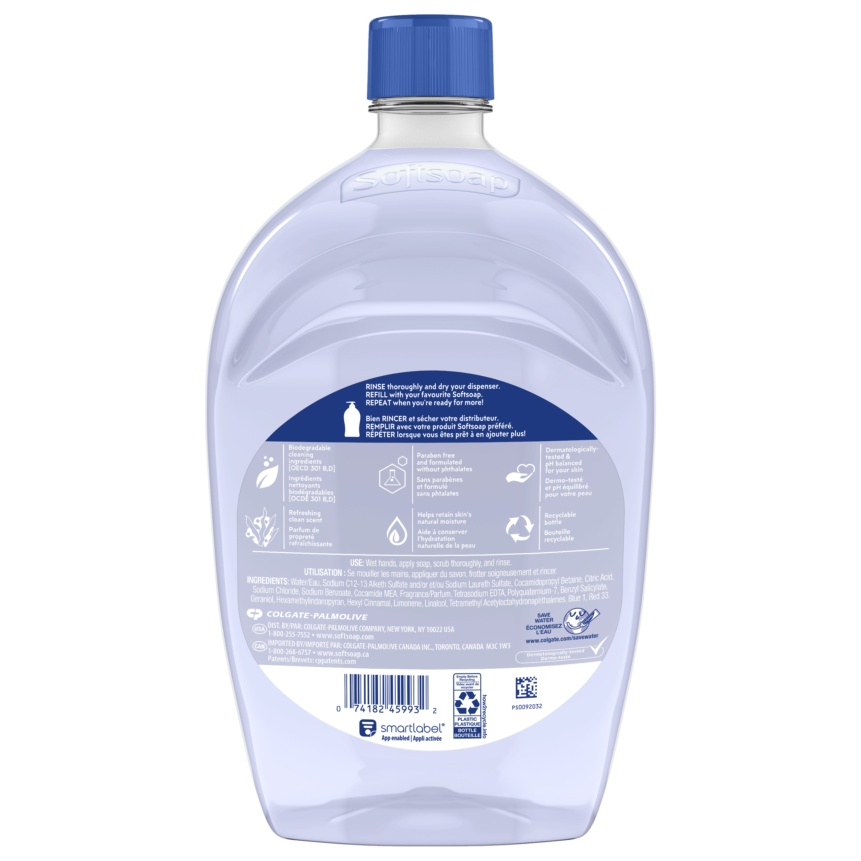 Product Title Softsoap Aquarium Liquid Hand Soap Refill, 1.47 L SKU 61046102 SKU eCommerce Name Softsoap Aquarium Liquid Hand Soap Refill, 1.47 L Consumer Unit - GTIN 00074182459932 Case - GTIN 10827854019357 Product Category Personal Care Product Sub Category Liquid Hand Wash Brand Softsoap Product Sub Brand Softsoap LHW Consumer Unit Gross Weight 1.574 KG / 3.471 LB Consumer Unit Net Weight 1.508 KG / 3.325 LB Consumer Unit Length 79.000 MM / 3.110 IN Consumer Unit Width 143.000 MM / 5.630 IN Consumer Unit Height 239.000 MM / 9.409 IN Consumer Unit Volume 2.700 C8 / 0.095 CF Product Title Softsoap Aquarium Liquid Hand Soap Refill, 1.47 L eCommerce Copy Aside from leaving your skin feeling soft and your hands clean, the Softsoap Liquid Hand Soap, Aquarium Series will brighten a room and your day. eCommerce Copy- Long Description From the #1 liquid hand soap brand* comes Softsoap Aquarium, a fresh scent with a fun fish label that you’ll want to show off on your sink. This 1.47 L bottle refills over six 221 mL bottles. This liquid hand soap effectively washes away bacteria for clean and fresh hands. Feel the joy of clean with Softsoap hand soap! *Based in part on data reported by Nielsen through its Market Track Service for the Liquid Hand Soap Category for the 52 week period ending 1/1/22, for the All Outlet market. Copyright © 2022 Nielsen. Great Clean. For Everyone. Confidently wash your hands with Softsoap while enjoying fragrant scents and fun labels that will bring you joy. For everyone, every mood, and every sink, Softsoap hand soap is designed to make you feel joyfully clean. Use Softsoap Aquarium liquid hand soap in the bathroom or the kitchen to uplift every small moment while keeping your hands clean. Feel Good About Washing Your Hands This liquid hand soap washes away bacteria and is an effective way to keep hands clean. Plus, this liquid soap is paraben free and formulated without phthalates, uses 48% less plastic* and retains skin’s natural moisture, so you can feel good about washing your hands. *per mL vs. 221 mL pumps Feel the Joy of Clean We believe that the little moments throughout your day should be fun! With delightful bubbles and fragrant scents, every trip to the sink and every shower leaves you feeling uplifted. Enjoy those small moments of joy, get brilliantly clean with our liquid hand soaps and body washes—now, you’re ready to take on the world! Keywords (eCommerce) liquid hand soap, pump, softsoap, handsoap, dry skin, clear soap, kitchen soap, bathroom soap, best, hydrating, nice smell, protection, colds, virus, sensitive skin, allergies, non-irritating, bar soap, non-drying, easy rinse, illness, infection, lather, environmentally friendly, value, quality, premium, safe, children, kids, schools, fresh scent, lightly scented, refill Walmart Bullet 1 One 50 fl oz refill bottle of Softsoap Aquarium Liquid Hand Soap with new easy pour spout Walmart Bullet 2 Softsoap is the #1 liquid hand soap brand (1) Walmart Bullet 3 This liquid hand soap refill bottle makes it convenient to stock up on refreshing scents all year long Walmart Bullet 4 Our hand soap refill is mess free making it versatile to use in the bathroom or as a kitchen hand soap Walmart Bullet 5 Proudly formulated without parabens or phthalates, this dermatologist-tested hand soap will keep your hands clean and fresh Walmart Bullet 6 Convenient Refill Size Walmart Bullet 7 Refills over six 7.5oz bottles Walmart Bullet 8 Uses 48% less plastic* *per ounce vs 7.5oz bottles Walmart Bullet 9 - Suitable for all ages and all skin types.