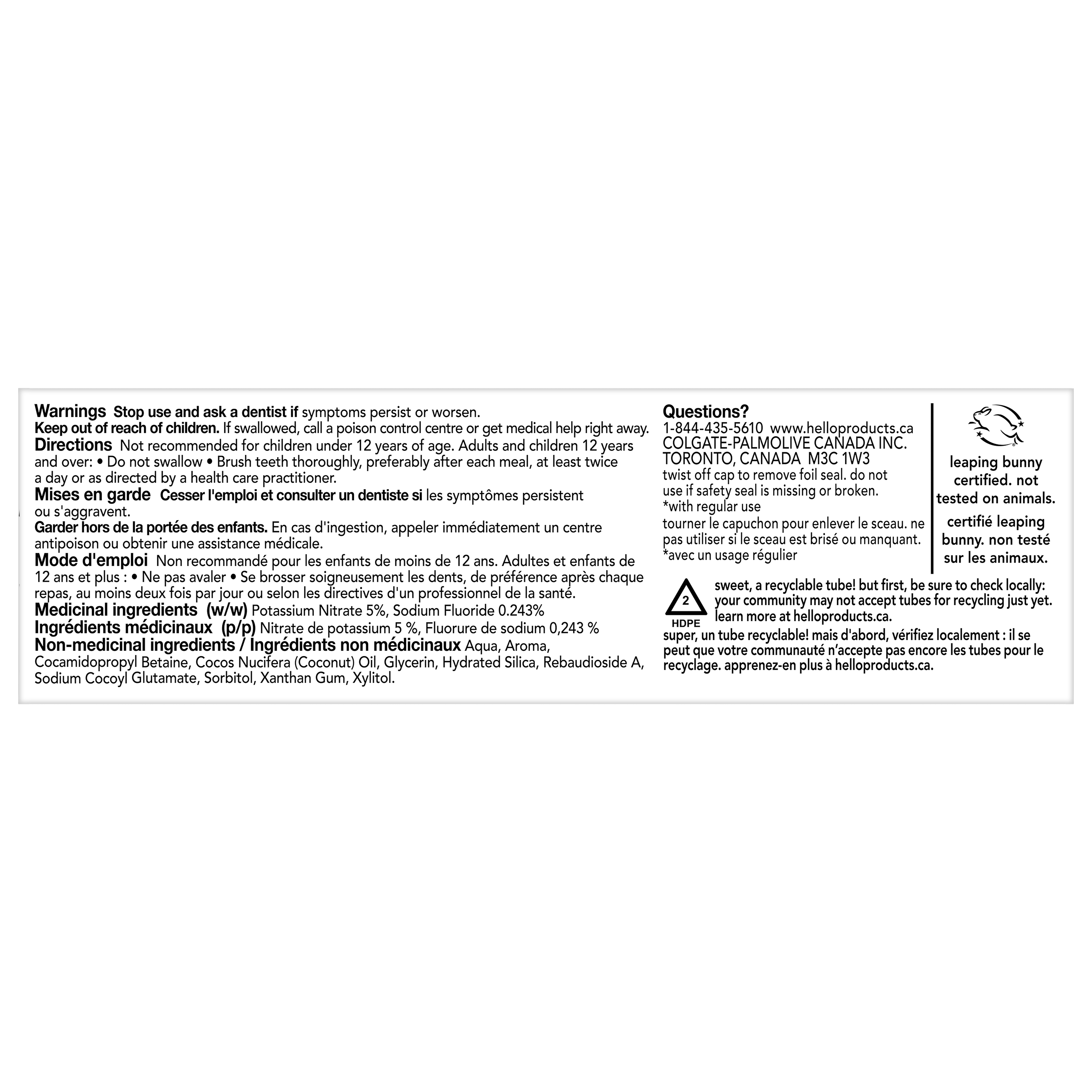 hello See Ya Sensitivity Sensitive Toothpaste, Natural Mint, 82 mL Tube