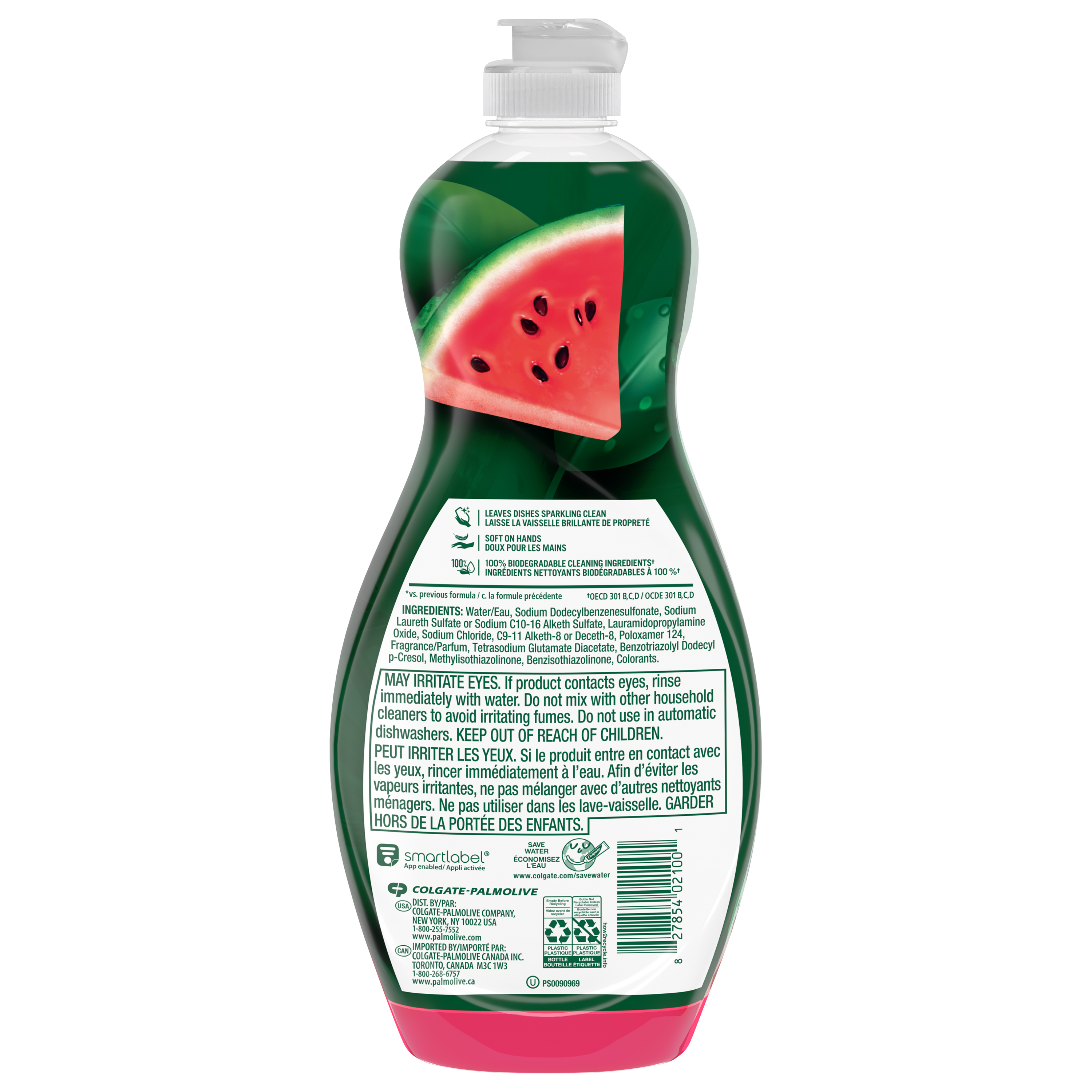 Product Title Palmolive Ultra Strength Liquid Dish Soap, Improved Formula, Tough on Grease, Odor-Fighting Technology, Watermelon Scent, 591 mL SKU 61047428 SKU eCommerce Name Palmolive Ultra Strength Liquid Dish Soap, Improved Formula, Tough on Grease, Odor-Fighting Technology, Watermelon Scent, 591 mL Consumer Unit - GTIN 00827854021001 Case - GTIN 10827854021008 Product Category Home Care Product Sub Category Dish Hand Brand Palmolive Product Sub Brand Palmolive Sensorial Ultra HD Consumer Unit Gross Weight 0.645 KG / 1.422 LB Consumer Unit Net Weight 0.606 KG / 1.336 LB Consumer Unit Length 50.000 MM / 1.969 IN Consumer Unit Width 105.000 MM / 4.134 IN Consumer Unit Height 244.000 MM / 9.606 IN Consumer Unit Volume 1.341 C8 / 0.047 CF Product Title Palmolive Ultra Strength Liquid Dish Soap, Improved Formula, Tough on Grease, Odor-Fighting Technology, Watermelon Scent, 591 mL Product Description Enjoy a sparkling clean kitchen with Palmolive Ultra Strength Liquid Dish Soap; the ultimate dishwashing liquid that’s tough on grease but soft on hands. This pink dish soap features the sweet, juicy aroma of fresh watermelon, delivering a refreshing scent that invigorates your kitchen with every wash. Perfect for families and busy households, our dish soap contains 0% parabens and phosphates. Whether you’re facing stubborn food messes or daily dish loads, this dish detergent removes stubborn food particles and leaves your dishes sparkling clean for everyday dishwashing. The scented dish soap makes dishwashing more enjoyable with its uplifting fragrance. Experience a truly sensorial dishwashing journey with our improved formula*, designed for added efficacy. Plus, it is enhanced with odor-fighting technology, ensuring your kitchen stays fresh and inviting after every wash. Beautiful enough for kitchen sink decor, Palmolive’s dish soap is also suitable for kitchen cleaning and versatile enough for use on laundry, BBQ grills, or car tires. Choose Palmolive Watermelon for a reliable, effective, and delightfully scented clean every day. *vs. previous formula eCommerce Copy- Long Description Enjoy a sparkling clean kitchen with Palmolive Ultra Strength Liquid Dish Soap; the ultimate dishwashing liquid that’s tough on grease but soft on hands. This pink dish soap features the sweet, juicy aroma of fresh watermelon, delivering a refreshing scent that invigorates your kitchen with every wash. Perfect for families and busy households, our dish soap contains 0% parabens and phosphates. Whether you’re facing stubborn food messes or daily dish loads, this dish detergent removes stubborn food particles and leaves your dishes sparkling clean for everyday dishwashing. The scented dish soap makes dishwashing more enjoyable with its uplifting fragrance. Experience a truly sensorial dishwashing journey with our improved formula*, designed for added efficacy. Plus, it is enhanced with odor-fighting technology, ensuring your kitchen stays fresh and inviting after every wash. Beautiful enough for kitchen sink decor, Palmolive’s dish soap is also suitable for kitchen cleaning and versatile enough for use on laundry, BBQ grills, or car tires. Choose Palmolive Watermelon for a reliable, effective, and delightfully scented clean every day. *vs. previous formula Bullet 1 One 591 mL bottle of Palmolive Ultra Strength Liquid Dish Soap, Limited Edition, Watermelon Scent Bullet 2 Experience a truly sensorial dishwashing journey with our improved formula*, designed for added efficacy Bullet 3 Tough on grease and removes stubborn food particles for a thorough clean with every wash Bullet 4 This pink dish soap features the sweet, juicy aroma of fresh watermelon, delivering a refreshing scent that invigorates your kitchen with every wash Bullet 5 Palmolive Ultra dishwashing detergent contains 0% parabens and phosphates, making it a great addition to your dishwashing supplies Bullet 6 This dishwashing liquid makes a stylish addition to your kitchen sink decor while it’s odor-fighting technology helps eliminate tough kitchen odors Keywords (eCommerce) palmolive ultra, liquid dish soap, watermelon, dish soap, soap, grease fighter, scented dish soap, pink dish soap, laundry, dishwashing liquid, recycled plastic, fresh watermelon, dishwashing supplies OS Amazon Product Title Palmolive Ultra Strength Liquid Dish Soap, Improved Formula, Tough on Grease, Odor-Fighting Technology, Watermelon Scent, 591 mL OS Amazon Product Description Enjoy a sparkling clean kitchen with Palmolive Ultra Strength Liquid Dish Soap; the ultimate dishwashing liquid that’s tough on grease but soft on hands. This pink dish soap features the sweet, juicy aroma of fresh watermelon, delivering a refreshing scent that invigorates your kitchen with every wash. Perfect for families and busy households, our dish soap contains 0% parabens and phosphates. Whether you’re facing stubborn food messes or daily dish loads, this dish detergent removes stubborn food particles and leaves your dishes sparkling clean for everyday dishwashing. The scented dish soap makes dishwashing more enjoyable with its uplifting fragrance. Experience a truly sensorial dishwashing journey with our improved formula*, designed for added efficacy. Plus, it is enhanced with odor-fighting technology, ensuring your kitchen stays fresh and inviting after every wash. Beautiful enough for kitchen sink decor, Palmolive’s dish soap is also suitable for kitchen cleaning and versatile enough for use on laundry, BBQ grills, or car tires. Choose Palmolive Watermelon for a reliable, effective, and delightfully scented clean every day. *vs. previous formula OS Amazon Bullet 1 WHAT’S INCLUDED: One 591 mL bottle of Palmolive Ultra Strength Liquid Dish Soap, Watermelon Scent OS Amazon Bullet 2 IMPROVED FORMULA*: Experience a truly sensorial dishwashing journey with our new improved formula*, designed for added efficacy OS Amazon Bullet 3 POWERFUL CLEANING: Tough on grease and removes stubbo