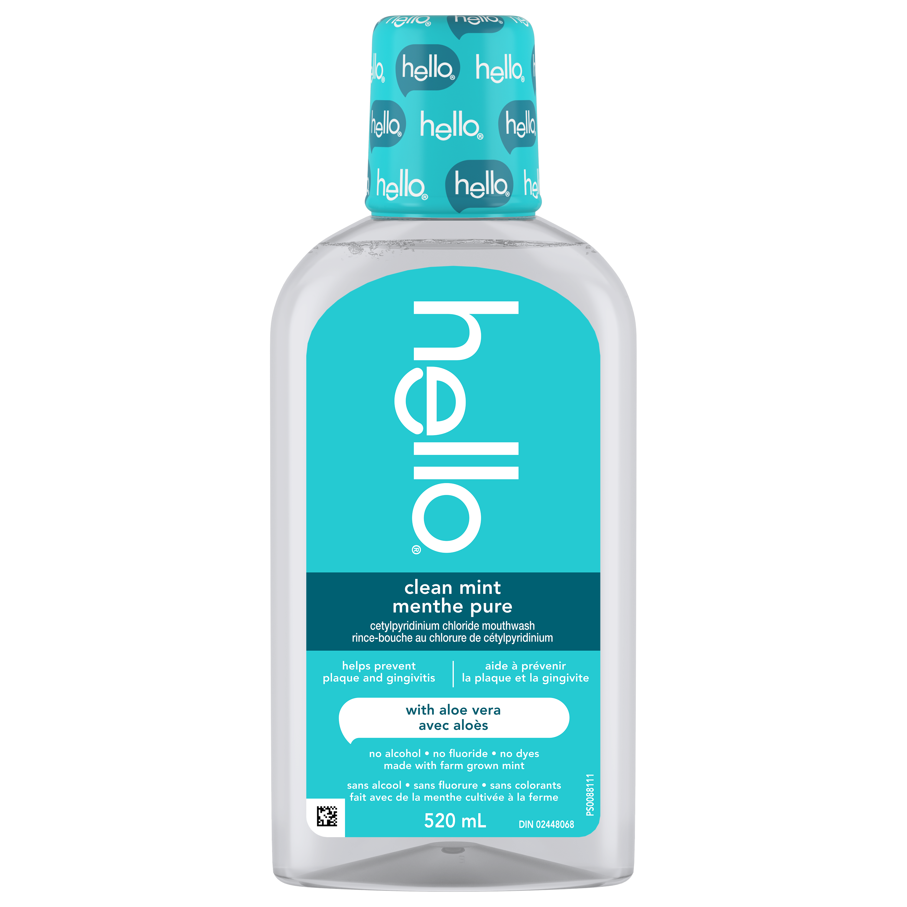Product Title Hello Peace Out Plaque Mouthwash SKU 61051890 SKU eCommerce Name Hello Peace Out Plaque Mouthwash Consumer Unit - GTIN 00827854024835 Case - GTIN 10827854024832 Product Category Oral Care Product Sub Category Mouthwash Brand Hello Product Sub Brand Hello Adult MW Consumer Unit Gross Weight 0.597 KG / 1.316 LB Consumer Unit Net Weight 0.548 KG / 1.208 LB Consumer Unit Length 44.000 MM / 1.732 IN Consumer Unit Width 91.000 MM / 3.583 IN Consumer Unit Height 217.000 MM / 8.543 IN Consumer Unit Volume 0.869 C8 / 0.031 CF Product Title Hello Peace Out Plaque Mouthwash Product Description Say hello to a deliciously minty antiplaque and gingivitis mouthwash that freshens like crazy with hello Clean Mint Alcohol Free Mouthwash. The minty fluoride free CPC mouthwash is made with refreshing farm grown mint, aloe vera, coconut oil, and is thoughtfully formulated to kill germs that cause bad breath. And because it’s crafted with zero alcohol, this non alcohol mouthwash offers freshness without the harshness with every swish. The no alcohol mouthwash also helps prevent plaque and gingivitis because it rocks. This hello mouthwash comes in a reimagined, sleek clear bottle so you can easily see how much oral rinse solution remains inside the hello mouthwash bottle. hello Clean Mint Mouthwash is a bad breath mouthwash made with no fluoride, no artificial flavours, no artificial sweeteners, no dyes, no alcohol, and no SLS. Now that’s a no-brainer. Plus, this fluoride free gingivitis mouthwash is not tested on animals and is vegan. Kick bad breath to the curb and swish in style with hello Clean Mint Alcohol Free Gum Mouthwash. Always read and follow the label directions. Bullet 1 Includes one (1) 520 mL bottle of hello Clean Mint Alcohol Free Mouthwash with Aloe Vera, Antigingivitis Fluoride Free Mouthwash for Bad Breath Bullet 2 hello Clean Mint Mouthwash contains zero alcohol and is a good no alcohol mouthwash for enjoying minty freshness without the harshness Bullet 3 Get ready to kick bad breath to the curb with hello Clean Mint CPC Mouthwash, a refreshing bad breath mouthwash made with farm grown mint Bullet 4 The clear bottle design instantly elevates your space and makes it easy to see how much oral rinse solution is left in your hello mouthwash bottle Bullet 5 This hello mouthwash contains no alcohol, fluoride, artificial sweeteners or flavours, dyes, or SLS, and is a vegan mouthwash Bullet 6 The no alcohol mouthwash also helps prevent plaque and gingivitis because it rocks OS Amazon Product Title hello Clean Mint Alcohol Free Mouthwash with Aloe Vera, 520 mL, Fluoride Free Bad Breath Mouthwash with Farm Grown Mint and Coconut Oil, Kills Bad Breath Germs, Vegan, Minty Oral Rinse OS Amazon Product Description Say hello to a deliciously minty antiplaque and gingivitis mouthwash that freshens like crazy with hello Clean Mint Alcohol Free Mouthwash. The minty fluoride free CPC mouthwash is made with refreshing farm grown mint, aloe vera, coconut oil, and is thoughtfully formulated to kill germs that cause bad breath. And because it’s crafted with zero alcohol, this non alcohol mouthwash offers freshness without the harshness with every swish. The no alcohol mouthwash also helps prevent plaque and gingivitis because it rocks. This hello mouthwash comes in a reimagined, sleek clear bottle so you can easily see how much oral rinse solution remains inside the hello mouthwash bottle. hello Clean Mint Mouthwash is a bad breath mouthwash made with no fluoride, no artificial flavours, no artificial sweeteners, no dyes, no alcohol, and no SLS. Now that’s a no-brainer. Plus, this fluoride free gingivitis mouthwash is not tested on animals and is vegan. Kick bad breath to the curb and swish in style with hello Clean Mint Alcohol Free Gum Mouthwash. Always read and follow the label directions. OS Amazon Bullet 1 WHAT’S INCLUDED: One (1) 520 mL bottle of hello Clean Mint Alcohol Free Mouthwash with Aloe Vera, Antigingivitis Fluoride Free Mouthwash for Bad Breath OS Amazon Bullet 2 CHILL RINSE, NO WINCE: hello Clean Mint Mouthwash contains zero alcohol and is a good no alcohol mouthwash for enjoying minty freshness without the harshness OS Amazon Bullet 3 BYE-BYE BAD BREATH: Get ready to kick bad breath to the curb with hello Clean Mint CPC Mouthwash, a refreshing bad breath mouthwash made with farm grown mint OS Amazon Bullet 4 SWISH IN STYLE: The clear bottle design instantly elevates your space and makes it easy to see how much oral rinse solution is left in your hello mouthwash bottle OS Amazon Bullet 5 NO-BRAINER: This hello mouthwash contains no alcohol, fluoride, artificial sweeteners or flavours, dyes, or SLS, and is a vegan mouthwash OS Walmart Product Title hello Clean Mint Fluoride Free and Alcohol Free Mouthwash with Aloe Vera, 520 mL OS Walmart Product Description Say hello to a deliciously minty antiplaque and gingivitis mouthwash that freshens like crazy with hello Clean Mint Alcohol Free Mouthwash. The minty fluoride free CPC mouthwash is made with refreshing farm grown mint, aloe vera, coconut oil, and is thoughtfully formulated to kill germs that cause bad breath. And because it’s crafted with zero alcohol, this non alcohol mouthwash offers freshness without the harshness with every swish. The no alcohol mouthwash also helps prevent plaque and gingivitis because it rocks. This hello mouthwash comes in a reimagined, sleek clear bottle so you can easily see how much oral rinse solution remains inside the hello mouthwash bottle. hello Clean Mint Mouthwash is a bad breath mouthwash made with no fluoride, no artificial flavours, no artificial sweeteners, no dyes, no alcohol, and no SLS. Now that’s a no-brainer. Plus, this fluoride free gingivitis mouthwash is not tested on animals and is vegan. Kick bad breath to the curb and swish in style with hello Clean Mint Alcohol Free Gum Mouthwash. Always read and follow the label directions. OS Walmart Bullet 1 Includes one (1) 520 m