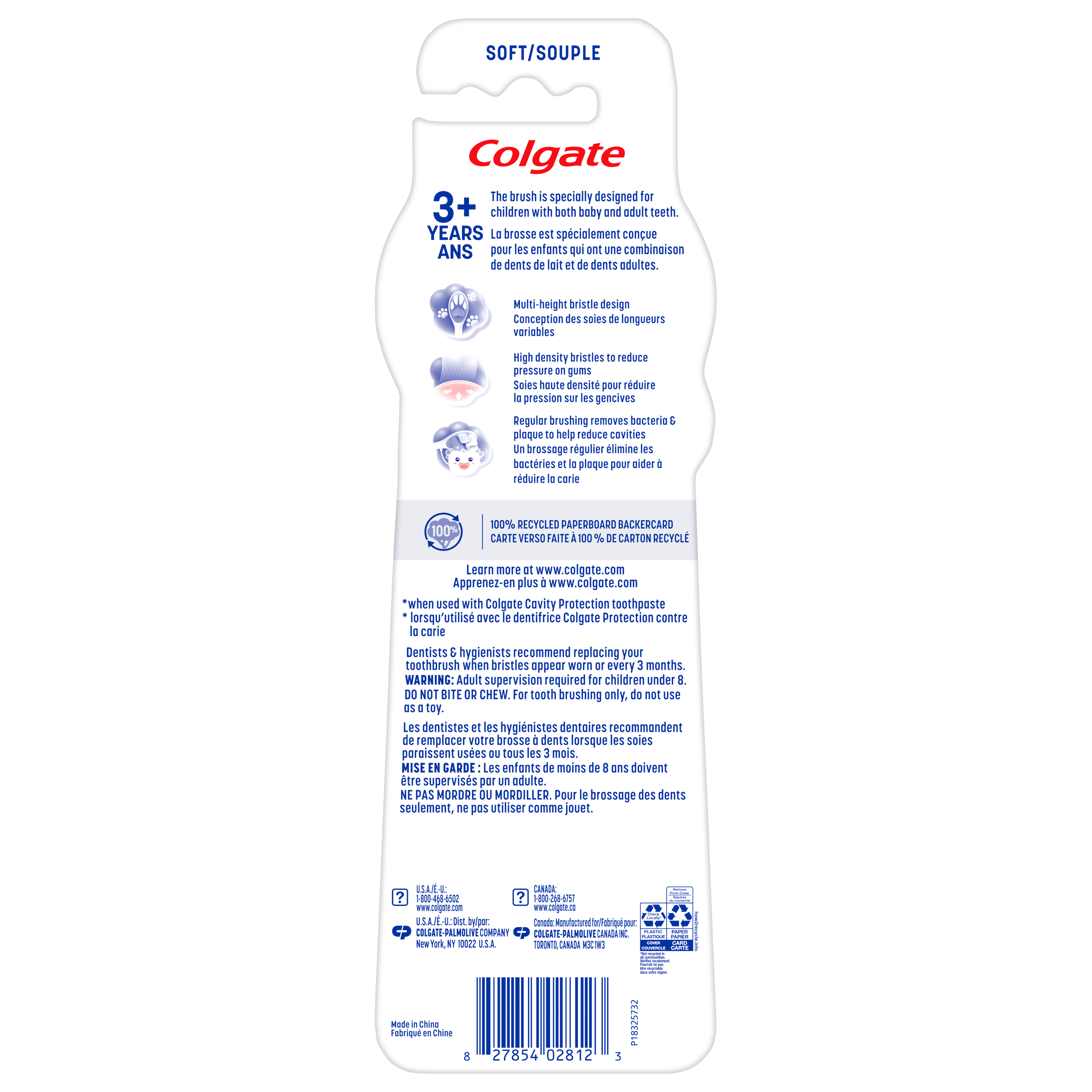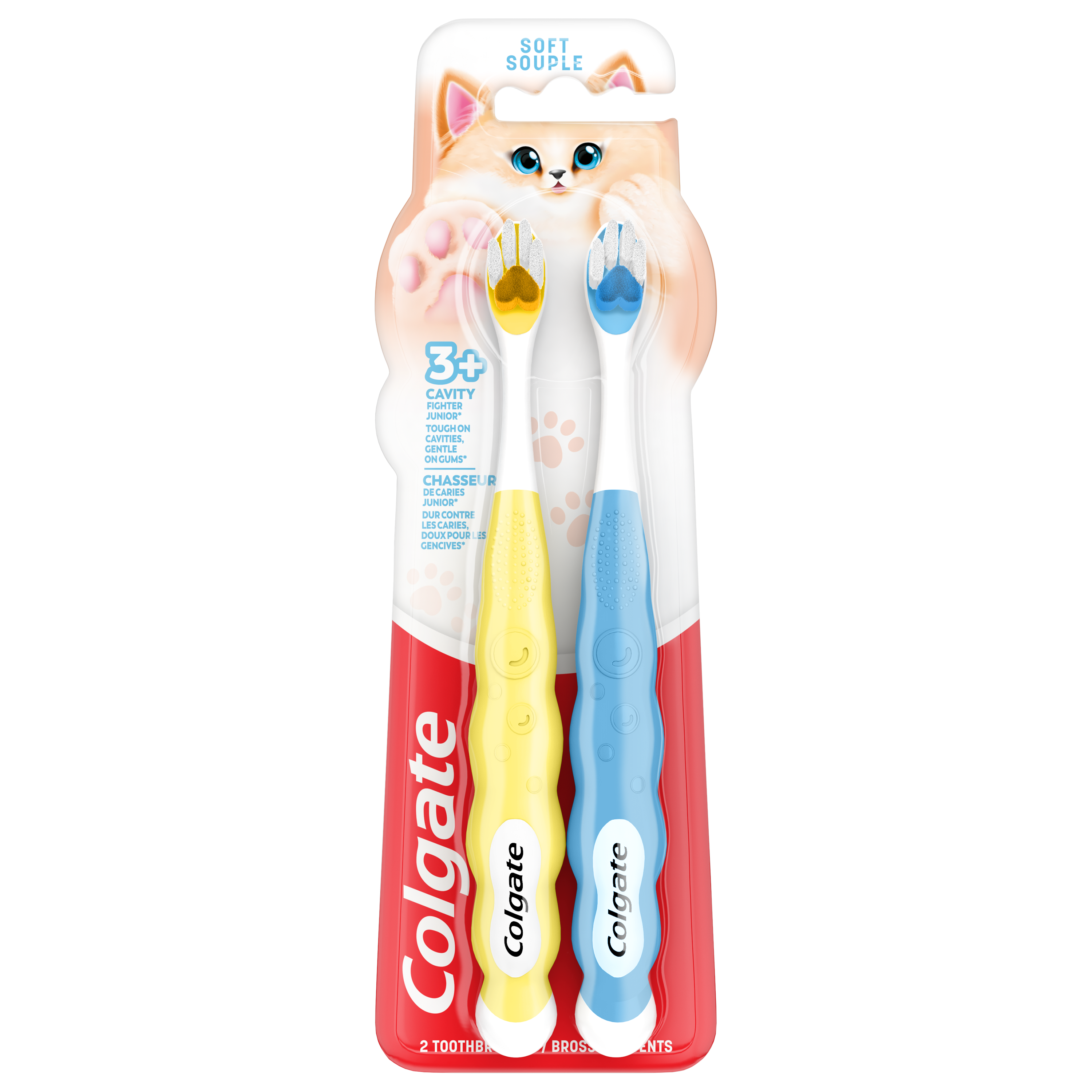 Product Title Colgate Animal Paw Soft Kids Toothbrush Pack, Yellow and Blue, 2 Count SKU 61054720 SKU eCommerce Name Colgate Animal Paw Soft Kids Toothbrush Pack, Yellow and Blue, 2 Count Consumer Unit - GTIN 00827854028123 Product Category Oral Care Product Sub Category Manual TB Brand Colgate Product Sub Brand Colgate Kids Animal Paw Man TB Consumer Unit Gross Weight 0.045 KG / 0.099 LB Consumer Unit Net Weight 0.034 KG / 0.075 LB Consumer Unit Length 23.000 MM / 0.906 IN Consumer Unit Width 70.000 MM / 2.756 IN Consumer Unit Height 216.000 MM / 8.504 IN Consumer Unit Volume 0.348 C8 / 0.012 CF Product Title Colgate Animal Paw Soft Kids Toothbrush Pack, Yellow and Blue, 2 Count Product Description Brighten up your child’s daily brushing routine with the Colgate Animal Paw Kids Toothbrush Pack. Designed for kids ages 3 and older, these adorable manual kids toothbrushes turn brushing time into a playful adventure. The kids toothbrush pack comes with two colourful soft toothbrushes in yellow and blue, each topped with a unique cat paw-shaped brush head with soft bristles. The soft, high-density bristles are tough on cavities but gentle on gums*, and the small oval shaped brush head makes it easy to access tight areas inside your child’s mouth. With regular brushing, these soft kids toothbrush bristles help remove plaque bacteria. In addition to their soft toothbrush bristles, the yellow and blue toothbrush both feature a comfy, non-slip handle made of soft rubber so little hands can brush confidently. This thoughtful design helps support kids’ independence as they continue to build good oral care habits. Deliver a fun and engaging brushing experience for young kids with the Colgate Animal Paw Childrens Toothbrush Pack. *when used with Colgate Cavity Protection Toothpaste eCommerce Copy- Long Description Brighten up your child’s daily brushing routine with the Colgate Animal Paw Kids Toothbrush Pack. Designed for kids ages 3 and older, these adorable manual kids toothbrushes turn brushing time into a playful adventure. The kids toothbrush pack comes with two colourful soft toothbrushes in yellow and blue, each topped with a unique cat paw-shaped brush head with soft bristles. The soft, high-density bristles are tough on cavities but gentle on gums*, and the small oval shaped brush head makes it easy to access tight areas inside your child’s mouth. With regular brushing, these soft kids toothbrush bristles help remove plaque bacteria. In addition to their soft toothbrush bristles, the yellow and blue toothbrush both feature a comfy, non-slip handle made of soft rubber so little hands can brush confidently. This thoughtful design helps support kids’ independence as they continue to build good oral care habits. Deliver a fun and engaging brushing experience for young kids with the Colgate Animal Paw Childrens Toothbrush Pack. *when used with Colgate Cavity Protection Toothpaste Bullet 1 Includes two (2) Colgate Animal Paw Kids Toothbrushes with Soft Bristles, Manual Kids Toothbrushes in Light Yellow and Light Blue Bullet 2 Thoughtfully designed with a fun cat-paw design to help children ages 3 and up develop and maintain their own good oral care habits Bullet 3 The soft, high-density bristles are tough on cavities but gentle on gums* (*when used with Colgate Cavity Protection Toothpaste) Bullet 4 With regular brushing, these soft kids toothbrush bristles help remove plaque bacteria Bullet 5 Each kids soft toothbrush features a soft rubber handle to make it easier to grip, giving kids more control and confidence while brushing Bullet 6 Kids toothbrush pack comes with a light yellow toothbrush and a light blue toothbrush, perfect for sharing or keeping an extra on hand as a spare Keywords (eCommerce) manual kids toothbrush, soft bristle kids toothbrush, gentle on gums, reduces pressure for a gentler clean, cat paw-shaped brush head, soft, high-density bristles, non-slip rubber handle, for ages 3 and up, Colgate Animal Paw Soft Kids Toothbrush Pack, animal themed kids toothbrush OS Amazon Product Title Colgate Animal Paw Soft Kids Toothbrush Pack, 2 Count, Fun Animal-Themed Manual Kids Toothbrushes with Soft Bristles, Made for Ages 3 and Up, Rubber Non-Slip Handle, Yellow and Blue OS Amazon Product Description Brighten up your child’s daily brushing routine with the Colgate Animal Paw Kids Toothbrush Pack. Designed for kids ages 3 and older, these adorable manual kids toothbrushes turn brushing time into a playful adventure. The kids toothbrush pack comes with two colourful soft toothbrushes in yellow and blue, each topped with a unique cat paw-shaped brush head with soft bristles. The soft, high-density bristles are tough on cavities but gentle on gums*, and the small oval shaped brush head makes it easy to access tight areas inside your child’s mouth. With regular brushing, these soft kids toothbrush bristles help remove plaque bacteria. In addition to their soft toothbrush bristles, the yellow and blue toothbrush both feature a comfy, non-slip handle made of soft rubber so little hands can brush confidently. This thoughtful design helps support kids’ independence as they continue to build good oral care habits. Deliver a fun and engaging brushing experience for young kids with the Colgate Animal Paw Childrens Toothbrush Pack. *when used with Colgate Cavity Protection Toothpaste OS Amazon Bullet 1 WHAT’S INCLUDED: Two (2) Colgate Animal Paw Kids Toothbrushes with Soft Bristles, Manual Kids Toothbrushes in Light Yellow and Light Blue OS Amazon Bullet 2 FOR KIDS AGES 3 AND OLDER: Thoughtfully designed with a fun cat-paw design to help children ages 3 and up develop and maintain their own good oral care habits OS Amazon Bullet 3 TOUCH ON CAVITIES: The soft, high-density bristles are tough on cavities but gentle on gums* (*when used with Colgate Cavity Protection Toothpaste) OS Amazon Bullet 4 A GENTLE CLEAN: With regular brushing, these soft kids toothbrush bristles help remov