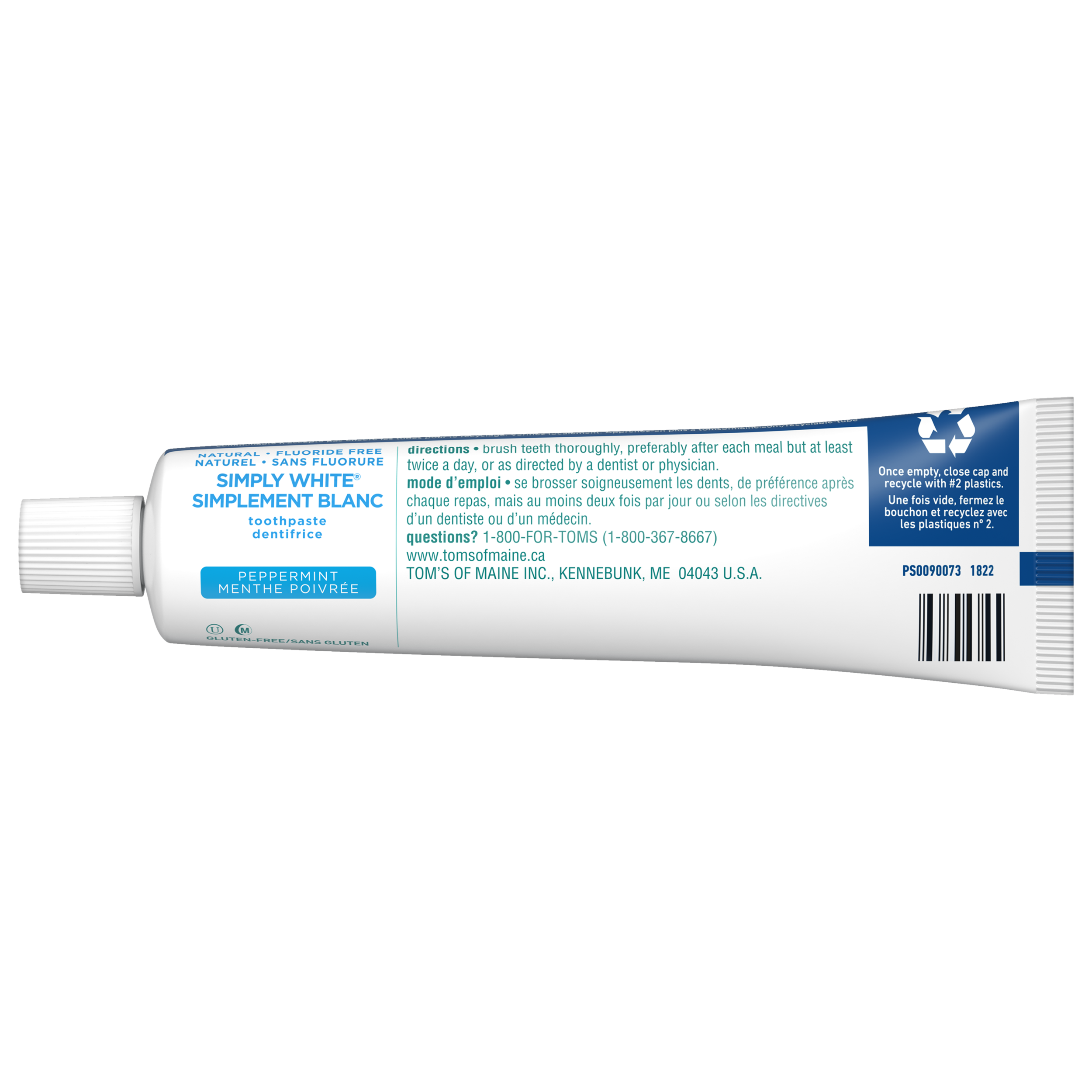 Tom’s of Maine Simply White Fluoride Free Toothpaste, Peppermint, 85 mL