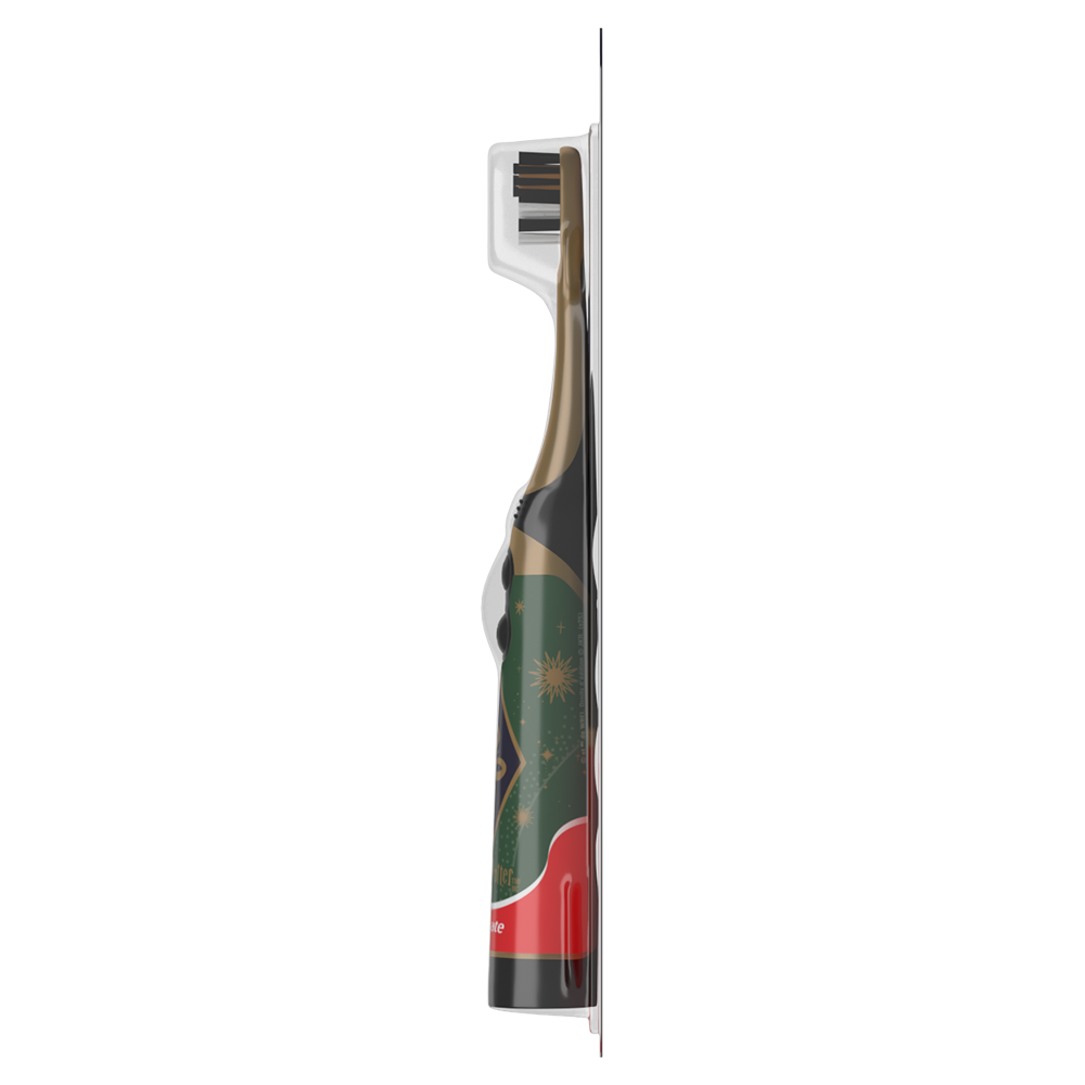 Product Title Colgate Harry Potter Slytherin Kids Battery Toothbrush, Extra Soft, 1 Pack SKU 61054865 Consumer Unit - GTIN 00827854028314 Case - GTIN 10827854028311 Product Category Oral Care Product Sub Category Battery TB Brand Colgate Product Sub Brand Colgate Kids BTB Consumer Unit Gross Weight 0.071 KG / 0.157 LB Consumer Unit Net Weight 0.059 KG / 0.130 LB Consumer Unit Length 26.000 MM / 1.024 IN Consumer Unit Width 54.000 MM / 2.126 IN Consumer Unit Height 229.000 MM / 9.016 IN Consumer Unit Volume 0.322 C8 / 0.011 CF Product Title Colgate Harry Potter Slytherin Kids Battery Toothbrush, Extra Soft, 1 Pack Product Description Make daily brushing feel like a magical and enchanting adventure for young children with the Colgate Harry Potter Slytherin Kids Battery Toothbrush. This kids Harry Potter toothbrush transforms brushing into a spellbinding routine for aspiring witches and wizards ages 3 and older, helping them sweep away pesky plaque and keeping their little teeth clean. The Harry Potter inspired kids battery powered toothbrush cleans better than a manual kids toothbrush and features a small, vibrating toothbrush head with extra soft bristles that are gentle on delicate gums. Made for young Harry Potter fans who are just starting to brush their teeth on their own, it’s a fun and enchanting battery toothbrush for teaching kids the importance of regularly brushing their teeth. The Colgate Harry Potter Slytherin Kids Battery Toothbrush uses extra soft toothbrush bristles. The slim, easy-to-hold handle gives everyone the confidence to brush on their own, while the lay flat design keeps the battery toothbrush from rolling away when set down and makes it easy to apply toothpaste. This battery powered Harry Potter toothbrush features an easy-to-press on and off button and comes with a single AA battery to power the kids travel toothbrush. Plus, the small, vibrating brush head is perfectly sized for little mouths, ensuring even the tiniest teeth get clean. The Colgate Harry Potter Slytherin Kids Battery Toothbrush is ready for whatever spellbinding adventures await them. Gift or collect all 5 childrens battery toothbrush designs including the Gryffindor, Hufflepuff, Ravenclaw, Slytherin, and Hogwarts Four Houses versions for the ultimate Harry Potter toothbrush collection. Add a touch of everyday magic to your kids daily brushing routine and encourage healthy habits with the Colgate Harry Potter Slytherin Kids Battery Toothbrush. Bullet 1 Includes one (1) Colgate Harry Potter Slytherin Kids Battery Toothbrush with Extra Soft Bristles, 1 AA Battery Included Bullet 2 This Harry Potter inspired Colgate Kids Battery Powered Toothbrush is made for children ages 3 and older Bullet 3 This Colgate battery powered toothbrush for kids has a small, vibrating brush head with extra soft bristles that gently clean teeth and gums Bullet 4 Features an easy-to-press on and off button and comes with a single AA battery to power the childrens toothbrush Bullet 5 A flat-laying handle makes it easy to apply toothpaste to this kids battery toothbrush without the brush rolling over or away Bullet 6 Collect all five Harry Potter toothbrush designs including Gryffindor, Hufflepuff, Ravenclaw, Slytherin, and the Hogwarts Four Houses OS Amazon Product Title Colgate Harry Potter Slytherin Kids Battery Toothbrush, Extra Soft Kids Vibrating Toothbrush, AA Battery Included, 1 Pack, For Witches and Wizards Ages 3 and Older, Lay Flat Design OS Amazon Product Description Make daily brushing feel like an enchanting adventure for young children with the Colgate Harry Potter Slytherin Kids Battery Toothbrush. This kids Harry Potter toothbrush transforms brushing into a spellbinding routine for aspiring witches and wizards ages 3 and older, helping them sweep away pesky plaque. The Harry Potter inspired kids battery powered toothbrush cleans better than a manual kids toothbrush and features a small, vibrating toothbrush head with extra soft bristles that are gentle on delicate gums. The slim, easy-to-hold handle gives everyone the confidence to brush on their own, while the lay flat design keeps the battery toothbrush from rolling away when applying toothpaste. This battery powered Harry Potter toothbrush features an easy-to-press on and off button and comes with a single AA battery to power the kids toothbrush. Plus, the small, vibrating brush head is perfectly sized for little mouths, ensuring even the tiniest teeth get clean. Gift or collect all 5 childrens battery toothbrush designs including the Gryffindor, Hufflepuff, Ravenclaw, Slytherin, and Hogwarts 4 Houses versions for the ultimate Harry Potter toothbrush collection. Add a touch of everyday magic to kids' daily brushing routine with the Colgate Harry Potter Slytherin Kids Battery Toothbrush. OS Amazon Bullet 1 WHAT’S INCLUDED: One (1) Colgate Harry Potter Slytherin Kids Battery Toothbrush with Extra Soft Bristles, 1 AA Battery Included OS Amazon Bullet 2 ASPIRING WITCHES AND WIZARDS: This Harry Potter inspired Colgate Kids Battery Powered Toothbrush is made for children ages 3 and older OS Amazon Bullet 3 GENTLY CLEANS: This Colgate battery powered toothbrush for kids has a small, vibrating brush head with extra soft bristles that gently clean teeth and gums OS Amazon Bullet 4 DISCOVER THE MAGIC: Features an easy-to-press on and off button and comes with a single AA battery to power this childrens toothbrush OS Amazon Bullet 5 FLAT HANDLE: A flat-laying handle makes it easy to apply toothpaste to this kids battery toothbrush without the brush rolling over or away OS Walmart Product Title Colgate Harry Potter Slytherin Kids Battery Toothbrush, Extra Soft, 1 Pack OS Walmart Product Description Make daily brushing feel like a magical and enchanting adventure for young children with the Colgate Harry Potter Slytherin Kids Battery Toothbrush. This kids Harry Potter toothbrush transforms brushing into a spellbinding routine for aspiring witches and wizards ages 