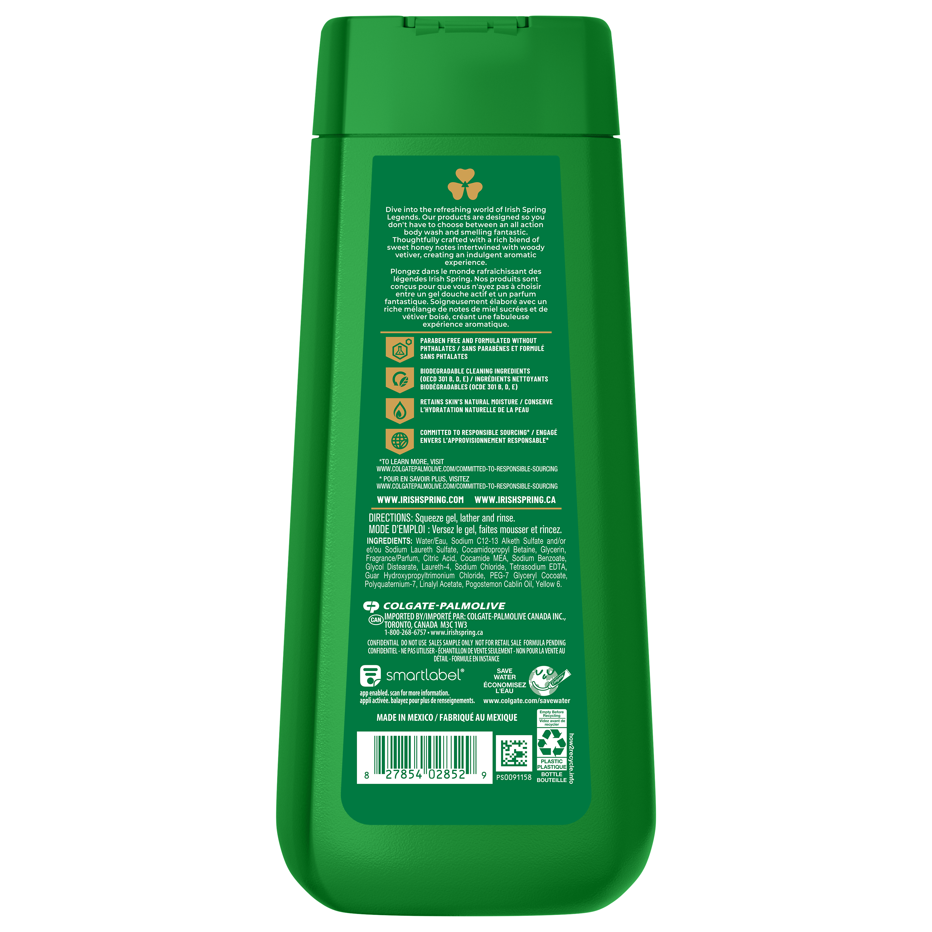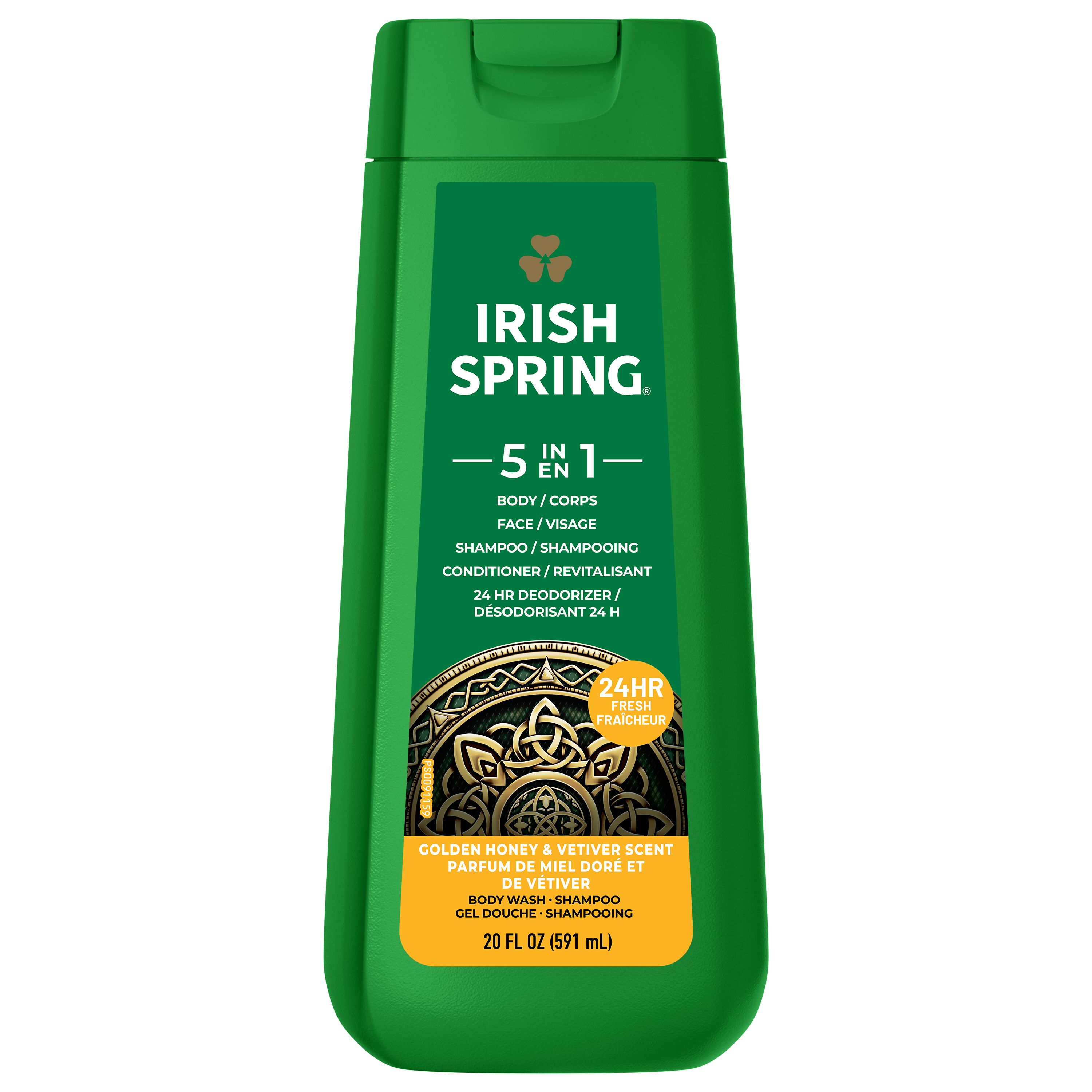 Product Title Irish Spring 5 in 1 Moisturizing Body Wash for Men, Shampoo, Conditioner, Body and Face Wash, and 24 Hour Deodorizer, Paraben-Free, Golden Honey & Vetiver Scent, 591 mL SKU 61055047 Consumer Unit - GTIN 00827854028529 Case - GTIN 10827854028526 Product Category Personal Care Product Sub Category Body Wash Brand Irish Spring Product Sub Brand Irish Spring BW Consumer Unit Gross Weight 0.665 KG / 1.466 LB Consumer Unit Net Weight 0.607 KG / 1.338 LB Consumer Unit Length 53.000 MM / 2.087 IN Consumer Unit Width 90.000 MM / 3.543 IN Consumer Unit Height 227.000 MM / 8.937 IN Consumer Unit Volume 1.083 C8 / 0.038 CF Product Title Irish Spring 5 in 1 Moisturizing Body Wash for Men, Shampoo, Conditioner, Body and Face Wash, and 24 Hour Deodorizer, Paraben-Free, Golden Honey & Vetiver Scent, 591 mL Product Description Feel invigorated every day with Irish Spring 5 in 1 Moisturizing Body Wash for Men in Golden Honey & Vetiver scent. Simplify your grooming routine with this men’s body wash that works as your shampoo, conditioner, face wash, body wash, and 24 hour deodorizer. Experience a moisturizing body wash that creates cleansing lather and retains skin’s moisture, leaving you feeling clean all day. Enjoy invigorating, outdoor freshness in every wash with sweet honey notes inspired by our signature honey body wash. Woody vetiver brings added depth and character, making this the perfect vetiver body wash for men who love scent. This men's body soap is crafted for an active lifestyle and retains skin's moisture. Each bottle has a leak proof cap making it perfect for bathroom, gym bag, or travel, and ideal for your daily shower routine. Formulated as a paraben free body wash and phthalate free body wash, it offers ingredient transparency for peace of mind. Make Irish Spring body wash part of your daily routine for all-day freshness. Bullet 1 One 20 fl oz bottle of Irish Spring 5 in 1 Moisturizing Body Wash for Men, Golden Honey & Vetiver Scent Bullet 2 Simplify your grooming routine with this men’s body wash that works as your shampoo, conditioner, face wash, body wash, and 24 hour deodorizer Bullet 3 Moisturizing body wash that retains skin’s natural moisture, refreshes skin, and forms a rich lather for a clean feel Bullet 4 Enjoy invigorating, outdoor freshness in every wash with sweet honey notes intertwined with a woody vetiver Bullet 5 Formulated as a paraben free body wash and phthalate free body wash, it offers ingredient transparency for peace of mind Bullet 6 Each bottle has a leak proof cap making it perfect for bathroom, gym bag, or travel, and ideal for your daily shower routine OS Amazon Product Title Irish Spring 5 in 1 Moisturizing Body Wash for Men, Shampoo, Conditioner, Body and Face Wash, and 24 Hour Deodorizer, Paraben-Free, Golden Honey & Vetiver Scent, 591 mL OS Amazon Product Description Feel invigorated every day with Irish Spring 5 in 1 Moisturizing Body Wash for Men in Golden Honey & Vetiver scent. Simplify your grooming routine with this men’s body wash that works as your shampoo, conditioner, face wash, body wash, and 24 hour deodorizer. Experience a moisturizing body wash that creates cleansing lather and retains skin’s moisture, leaving you feeling clean all day. Enjoy invigorating, outdoor freshness in every wash with sweet honey notes inspired by our signature honey body wash. Woody vetiver brings added depth and character, making this the perfect vetiver body wash for men who love scent. This men's body soap is crafted for an active lifestyle and retains skin's moisture. Each bottle has a leak proof cap making it perfect for bathroom, gym bag, or travel, and ideal for your daily shower routine. Formulated as a paraben free body wash and phthalate free body wash, it offers ingredient transparency for peace of mind. Make Irish Spring body wash part of your daily routine for all-day freshness. OS Amazon Bullet 1 WHAT’S INCLUDED: One 591 mL bottle of Irish Spring 5 in 1 Moisturizing Body Wash for Men, Golden Honey & Vetiver Scent OS Amazon Bullet 2 5 BENEFITS IN 1: Simplify your grooming routine with this men’s body wash that works as your shampoo, conditioner, face wash, body wash, and 24 hour deodorizer OS Amazon Bullet 3 HYDRATING CLEANSE: Moisturizing body wash that retains skin’s natural moisture, refreshes skin, and forms a rich lather for a clean feel OS Amazon Bullet 4 GOLDEN HONEY & VETIVER SCENT: Enjoy invigorating, outdoor freshness in every wash with sweet honey notes intertwined with a woody vetiver OS Amazon Bullet 5 CONSCIOUSLY MADE: Formulated as a paraben free body wash and phthalate free body wash, it offers ingredient transparency for peace of mind OS Walmart Product Title Irish Spring 5 in 1 Moisturizing Body Wash, Golden Honey & Vetiver Scent, 591 mL OS Walmart Product Description Feel invigorated every day with Irish Spring 5 in 1 Moisturizing Body Wash for Men in Golden Honey & Vetiver scent. Simplify your grooming routine with this men’s body wash that works as your shampoo, conditioner, face wash, body wash, and 24 hour deodorizer. Experience a moisturizing body wash that creates cleansing lather and retains skin’s moisture, leaving you feeling clean all day. Enjoy invigorating, outdoor freshness in every wash with sweet honey notes inspired by our signature honey body wash. Woody vetiver brings added depth and character, making this the perfect vetiver body wash for men who love scent. This men's body soap is crafted for an active lifestyle and retains skin's moisture. Each bottle has a leak proof cap making it perfect for bathroom, gym bag, or travel, and ideal for your daily shower routine. Formulated as a paraben free body wash and phthalate free body wash, it offers ingredient transparency for peace of mind. Make Irish Spring body wash part of your daily routine for all-day freshness. OS Walmart Bullet 1 One 20 fl oz bottle of Irish Spring 5 in 1 Moisturizing Body Wash for Men, Golden Honey & Vetiver Scen