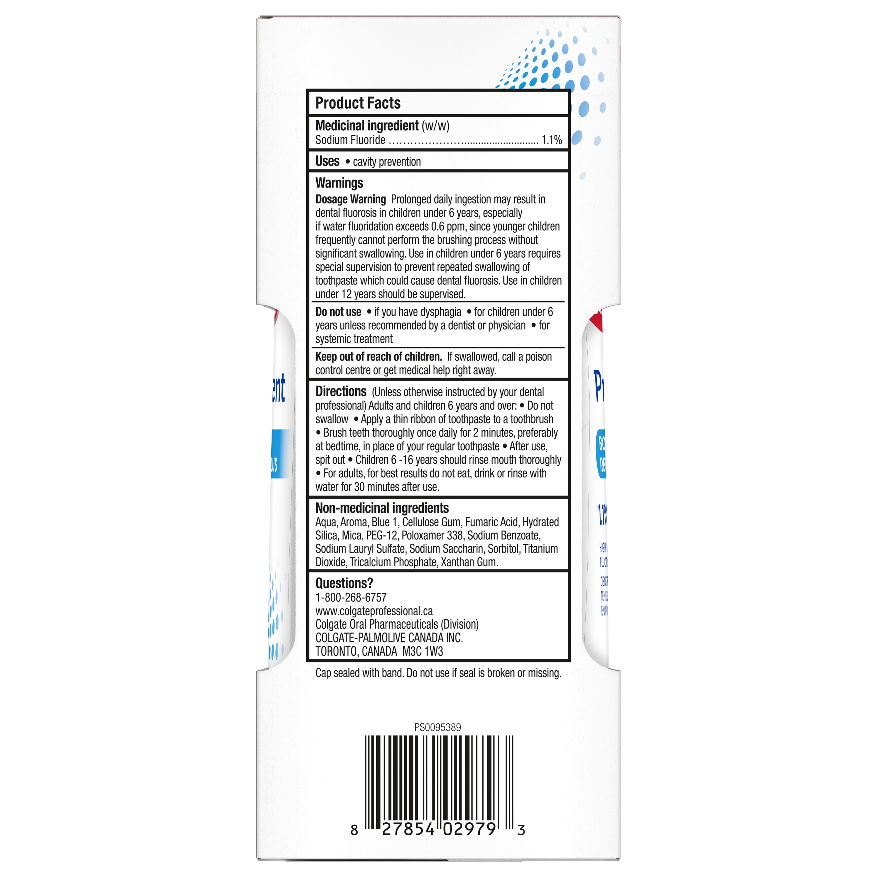 Product Title Colgate PreviDent Booster Toothpaste SKU 61056611 SKU eCommerce Name Colgate PreviDent Booster Toothpaste Consumer Unit - GTIN 00827854029793 Product Category Oral Care Product Sub Category PP High Fluoride Brand Colgate Product Sub Brand Colgate PreviDent Toothpaste HF PP Consumer Unit Gross Weight 0.310 KG / 0.684 LB Consumer Unit Net Weight 0.050 KG / 0.110 LB Consumer Unit Length 62.000 MM / 2.441 IN Consumer Unit Width 62.000 MM / 2.441 IN Consumer Unit Height 145.000 MM / 5.709 IN Consumer Unit Volume 0.557 C8 / 0.020 CF Product Title Colgate PreviDent Booster Toothpaste OS Amazon Product Title Colgate PreviDent Booster Plus High Fluoride Gel Toothpaste, Enhanced Fluoride Formula for Cavity Protection, Acid Wear Protection, and Rebuilding Weak Spots, Spearmint, 2 x 100 mL (2-Pack) OS Amazon Product Description Colgate PreviDent Booster Plus Liquid Gel Toothpaste is a high strength fluoride toothpaste designed to help repair enamel and rebuild weak spots. This liquid gel sodium fluoride toothpaste uses a specialized formula designed to provide significantly greater levels of fluoride for cavity protection and protection from acid wear. Plus, it comes in a refreshing spearmint toothpaste flavour to freshen breath. The Colgate PreviDent Booster Plus High Strength Sodium Fluoride Toothpaste uses an enhanced fluoride formulation that actively strengthens weakened enamel. It helps actively reverse early cavities and prevent cavities from occurring. Help repair enamel, rebuild weak spots, and prevent cavities using the Colgate PreviDent Booster Plus Liquid Gel Toothpaste. Colgate PreviDent Booster Plus Fluoride Toothpaste is a liquid gel toothpaste designed for weakened enamel. The liquid gel form helps disperse fluoride quickly while you brush. Help protect against future tooth density loss with the Colgate PreviDent Booster Plus High Fluoride Toothpaste. OS Amazon Bullet 1 Includes two (2) 100 mL bottle of Colgate PreviDent Booster Plus High Fluoride Toothpaste, Liquid Gel Toothpaste OS Amazon Bullet 2 Scientifically formulated to provide significantly greater levels of fluoride for cavity protection and protection from acid wear OS Amazon Bullet 3 Comes in a refreshing Spearmint toothpaste flavour and uses an enhanced fluoride formula that actively strengthens weakened enamel OS Amazon Bullet 4 Colgate PreviDent Booster Plus Gel Toothpaste can penetrate tooth enamel to help rebuild weak spots and helps reverse early cavities using fluoride OS Amazon Bullet 5 Help protect against future density loss with the Colgate PreviDent Booster Plus Sodium Fluoride Toothpaste OS Walmart Product Title Colgate PreviDent Booster Plus High Fluoride Toothpaste, Spearmint, 2 x 100 mL (2-Pack) OS Walmart Product Description Colgate PreviDent Booster Plus High Fluoride Toothpaste, Spearmint, 100 mL Colgate PreviDent Booster Plus Liquid Gel Toothpaste is a high strength fluoride toothpaste designed to help repair enamel and rebuild weak spots. This liquid gel sodium fluoride toothpaste uses a specialized formula designed to provide significantly greater levels of fluoride for cavity protection and protection from acid wear. Plus, it comes in a refreshing spearmint toothpaste flavour to freshen breath. Actively Reverses Early Cavities The Colgate PreviDent Booster Plus High Strength Sodium Fluoride Toothpaste uses an enhanced fluoride formulation that actively strengthens weakened enamel. It helps actively reverse early cavities and prevent cavities from occurring. Help repair enamel, rebuild weak spots, and prevent cavities using the Colgate PreviDent Booster Plus Liquid Gel Toothpaste. Protects Against Future Density Loss Colgate PreviDent Booster Plus Fluoride Toothpaste is a liquid gel toothpaste designed for weakened enamel. The liquid gel form helps disperse fluoride quickly while you brush. Help protect against future tooth density loss with the Colgate PreviDent Booster Plus High Fluoride Toothpaste. OS Walmart Bullet 1 Includes two (2) 100 mL bottle of Colgate PreviDent Booster Plus High Fluoride Toothpaste, Liquid Gel Toothpaste OS Walmart Bullet 2 Scientifically formulated to provide significantly greater levels of fluoride for cavity protection and protection from acid wear OS Walmart Bullet 3 Comes in a refreshing Spearmint toothpaste flavour and uses an enhanced fluoride formula that actively strengthens weakened enamel OS Walmart Bullet 4 Colgate PreviDent Booster Plus Gel Toothpaste can penetrate tooth enamel to help rebuild weak spots and helps reverse early cavities using fluoride OS Walmart Bullet 5 Help protect against future density loss with the Colgate PreviDent Booster Plus Sodium Fluoride Toothpaste OS Loblaws Product Title Colgate PreviDent Booster Plus High Fluoride Toothpaste, Spearmint, 2 x 100 mL (2-Pack) OS Loblaws Product Description Colgate PreviDent Booster Plus Liquid Gel Toothpaste is a high strength fluoride toothpaste designed to help repair enamel and rebuild weak spots. This liquid gel sodium fluoride toothpaste uses a specialized formula designed to provide significantly greater levels of fluoride for cavity protection and protection from acid wear. Plus, it comes in a refreshing spearmint toothpaste flavour to freshen breath. The Colgate PreviDent Booster Plus High Strength Sodium Fluoride Toothpaste uses an enhanced fluoride formulation that actively strengthens weakened enamel. The liquid gel form helps disperse fluoride quickly while you brush. Help protect against future tooth density loss with the Colgate PreviDent Booster Plus High Fluoride Toothpaste. OS Loblaws Bullet 1 Includes two (2) 100 mL bottle of Colgate PreviDent Booster Plus High Fluoride Toothpaste, Liquid Gel Toothpaste OS Loblaws Bullet 2 Scientifically formulated to provide significantly greater levels of fluoride for cavity protection and protection from acid wear OS Loblaws Bullet 3 Comes in a refreshing Spearmint toothpaste flavour and uses an enhanced fluoride formula that acti