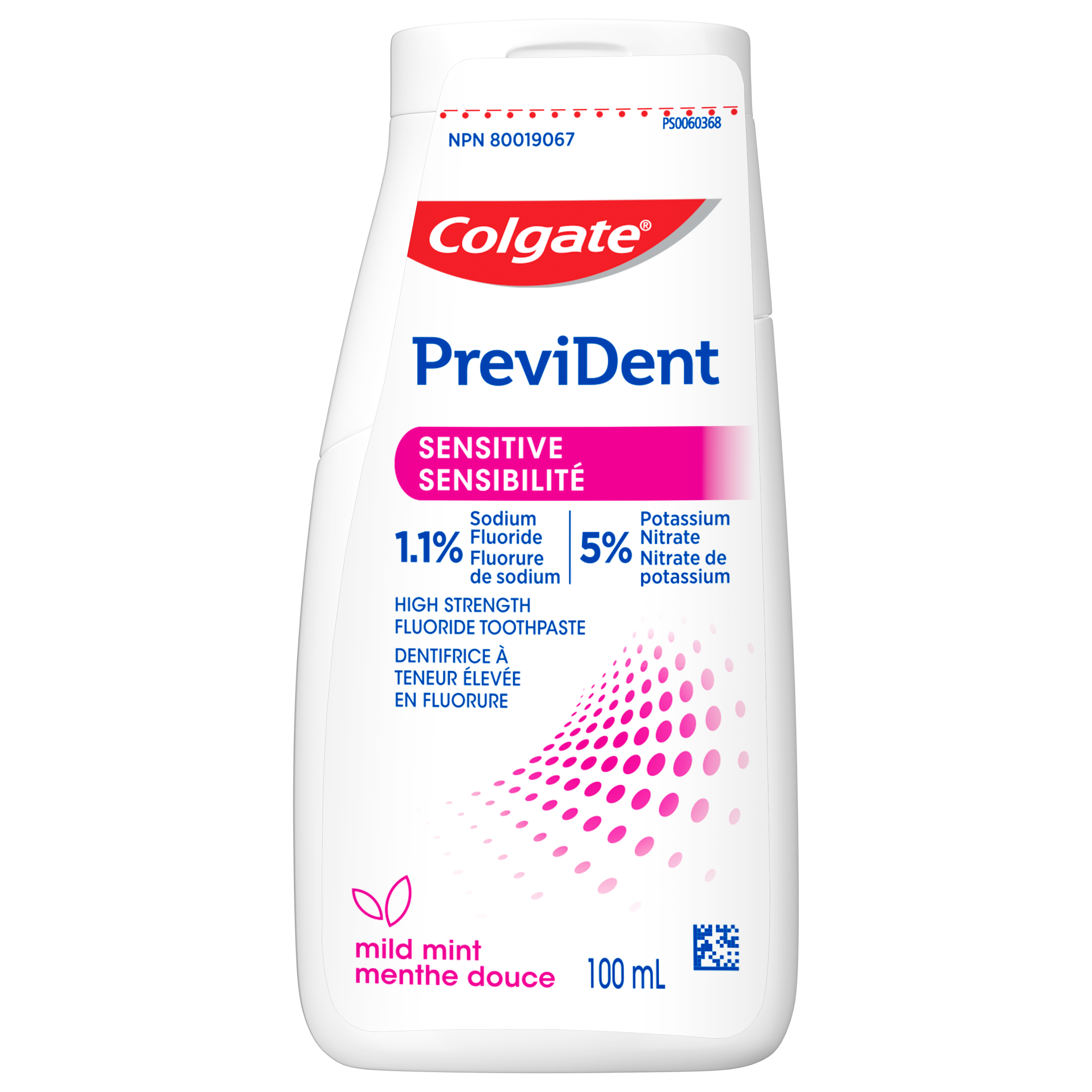 Product Title Colgate® PreviDent SENSITIVE, 100 mL SKU 733403 SKU eCommerce Name Colgate® PreviDent SENSITIVE, 100 mL Consumer Unit - GTIN 00038341106303 Case - GTIN 10038341106300 Product Category Oral Care Product Sub Category PP High Fluoride Brand Colgate Product Sub Brand Colgate PreviDent Toothpaste HF PP Consumer Unit Gross Weight 0.161 KG / 0.355 LB Consumer Unit Net Weight 0.115 KG / 0.254 LB Consumer Unit Length 28.000 MM / 1.102 IN Consumer Unit Width 60.000 MM / 2.362 IN Consumer Unit Height 121.000 MM / 4.764 IN Consumer Unit Volume 0.198 C8 / 0.007 CF Product Title Colgate® PreviDent SENSITIVE, 100 mL eCommerce Copy Colgate® PreviDent Sensitive Toothpaste for Sensitive Teeth (Sodium Fluoride 1.1% w/w). OS Amazon Product Title Colgate PreviDent Sensitive Toothpaste for Sensitive Teeth, Enhanced Fluoride Formula Helps Reverse Early Cavities and Protect from Acid Wear, Mint, 100 mL OS Amazon Product Description Colgate PreviDent Sensitive Toothpaste is a high strength fluoride toothpaste designed to provide proven 24/7 protection against sensitivity with twice daily brushing. This liquid gel sodium fluoride toothpaste uses a specialized formula designed to provide significantly greater levels of fluoride for cavity protection and protection from acid wear. Plus, it comes in a refreshing mild Mint toothpaste flavour to freshen breath. The Colgate PreviDent Sensitive High Strength Sodium Fluoride Toothpaste uses an enhanced fluoride formulation that helps actively reverses early cavities. Plus, this sensitive teeth toothpaste offers proven protection against sensitivity with twice daily brushing. Help shield exposed nerves to relieve sensitivity, and prevent cavities using the Colgate PreviDent Sensitive Liquid Gel Toothpaste. Colgate PreviDent Sensitive Fluoride Toothpaste is a liquid gel toothpaste designed to help with teeth sensitivity. The liquid gel form helps disperse fluoride quickly while you brush. Help protect against future tooth density loss, and sensitivity with the Colgate PreviDent Sensitive High Fluoride Toothpaste. OS Amazon Bullet 1 Includes one (1) 100 mL bottle of Colgate PreviDent Sensitive Toothpaste, Liquid Gel Toothpaste for Sensitive Teeth OS Amazon Bullet 2 Scientifically formulated to provide significantly greater levels of fluoride for cavity protection and protection from acid wear OS Amazon Bullet 3 Colgate PreviDent Sensitive Teeth Toothpaste offers 24/7 protection against sensitivity with twice daily brushing OS Amazon Bullet 4 Comes in a refreshing mild Mint toothpaste flavour and uses an enhanced fluoride formula that actively strengthens weakened enamel OS Amazon Bullet 5 Colgate PreviDent Sensitive Gel Toothpaste helps actively reverse early cavities and prevent cavities from occurring using fluoride OS Walmart Product Title Colgate PreviDent Sensitive Toothpaste, Mint, 100 mL OS Walmart Product Description Colgate PreviDent Sensitive Toothpaste, Mint, 100 mL Colgate PreviDent Sensitive Toothpaste is a high strength fluoride toothpaste designed to provide proven 24/7 protection against sensitivity with twice daily brushing. This liquid gel sodium fluoride toothpaste uses a specialized formula designed to provide significantly greater levels of fluoride for cavity protection and protection from acid wear. Plus, it comes in a refreshing mild Mint toothpaste flavour to freshen breath. Actively Reverses Early Cavities The Colgate PreviDent Sensitive High Strength Sodium Fluoride Toothpaste uses an enhanced fluoride formulation that helps actively reverses early cavities. Plus, this sensitive teeth toothpaste offers proven protection against sensitivity with twice daily brushing. Help shield exposed nerves to relieve sensitivity, and prevent cavities using the Colgate PreviDent Sensitive Liquid Gel Toothpaste. Protects Against Future Density Loss Colgate PreviDent Sensitive Fluoride Toothpaste is a liquid gel toothpaste designed to help with teeth sensitivity. The liquid gel form helps disperse fluoride quickly while you brush. Help protect against future tooth density loss, and sensitivity with the Colgate PreviDent Sensitive High Fluoride Toothpaste. OS Walmart Bullet 1 Includes one (1) 100 mL bottle of Colgate PreviDent Sensitive Toothpaste, Liquid Gel Toothpaste for Sensitive Teeth OS Walmart Bullet 2 Scientifically formulated to provide significantly greater levels of fluoride for cavity protection and protection from acid wear OS Walmart Bullet 3 Colgate PreviDent Sensitive Teeth Toothpaste offers 24/7 protection against sensitivity with twice daily brushing OS Walmart Bullet 4 Comes in a refreshing mild Mint toothpaste flavour and uses an enhanced fluoride formula that actively strengthens weakened enamel OS Walmart Bullet 5 Colgate PreviDent Sensitive Gel Toothpaste helps actively reverse early cavities and prevent cavities from occurring using fluoride OS Walmart Bullet 6 Help protect against future density loss with the Colgate PreviDent Sensitive Sodium Fluoride Toothpaste Walmart Bullet 1 Enables faster fluoride dispersion than paste-form Rx toothpaste Walmart Bullet 2 Clinically proven sensitivity relief Walmart Bullet 3 Therapeutic decay prevention safe for exposed root surfaces Walmart Bullet 4 Low abrasion level OS Loblaws Product Title PreviDent Sensitive Toothpaste, Mint OS Loblaws Product Description Colgate PreviDent Sensitive Toothpaste is a high strength fluoride toothpaste designed to provide proven 24/7 protection against sensitivity with twice daily brushing. This liquid gel sodium fluoride toothpaste uses a specialized formula designed to provide significantly greater levels of fluoride for cavity protection and protection from acid wear. Plus, it comes in a refreshing mild Mint toothpaste flavour to freshen breath. The Colgate PreviDent Sensitive High Strength Sodium Fluoride Toothpaste uses an enhanced fluoride formulation that helps actively reverses early cavities. Help shield exposed nerves to relieve sensitivity