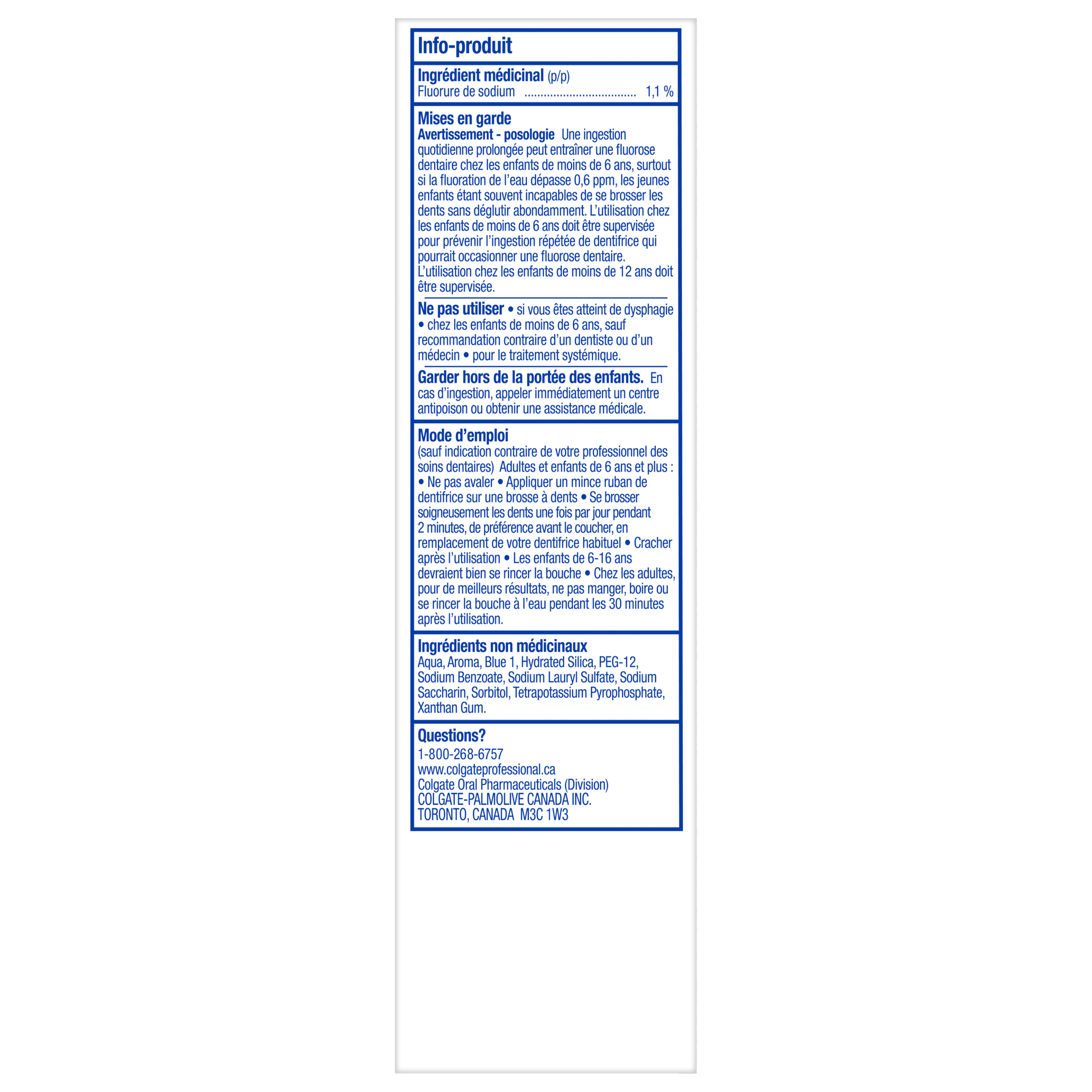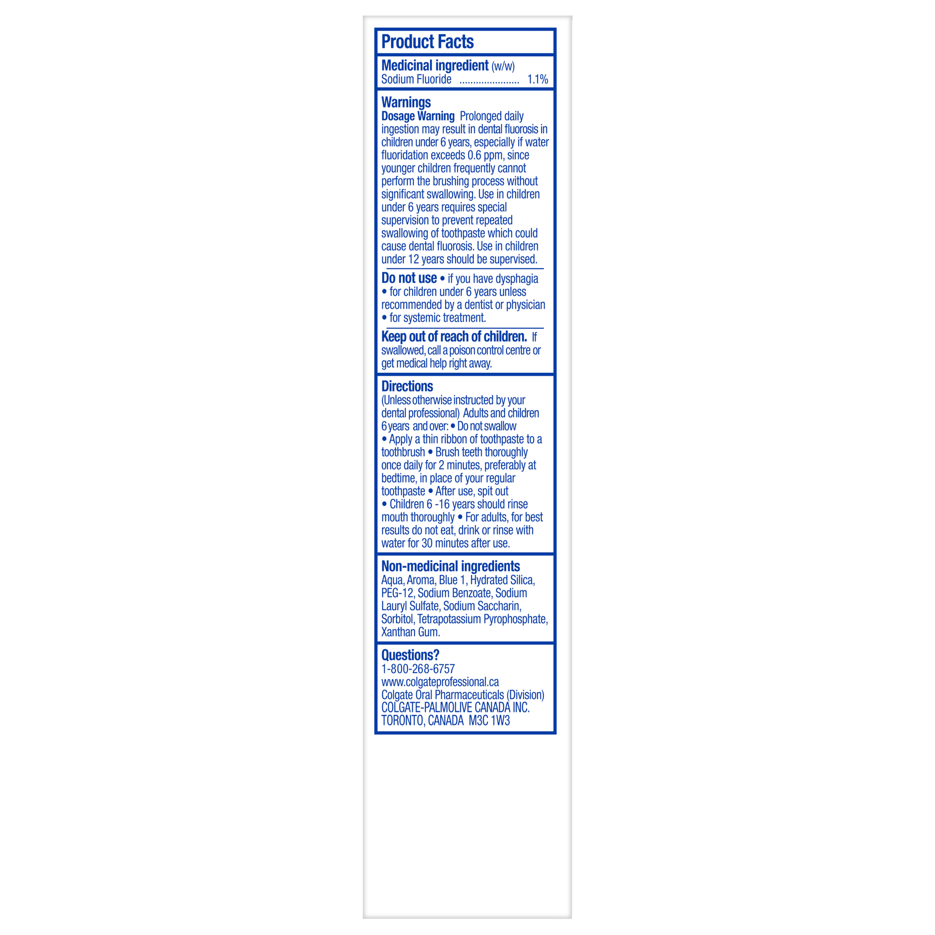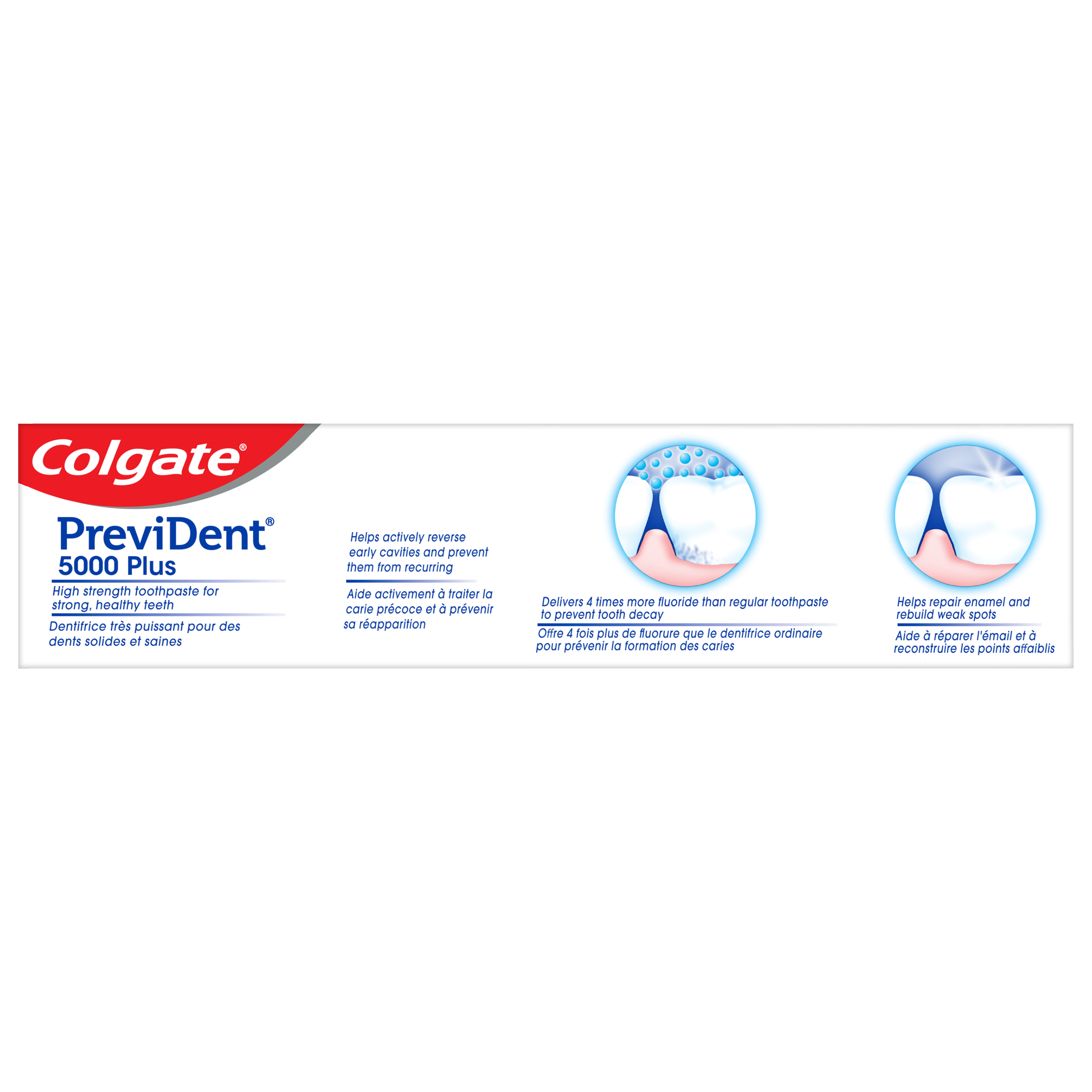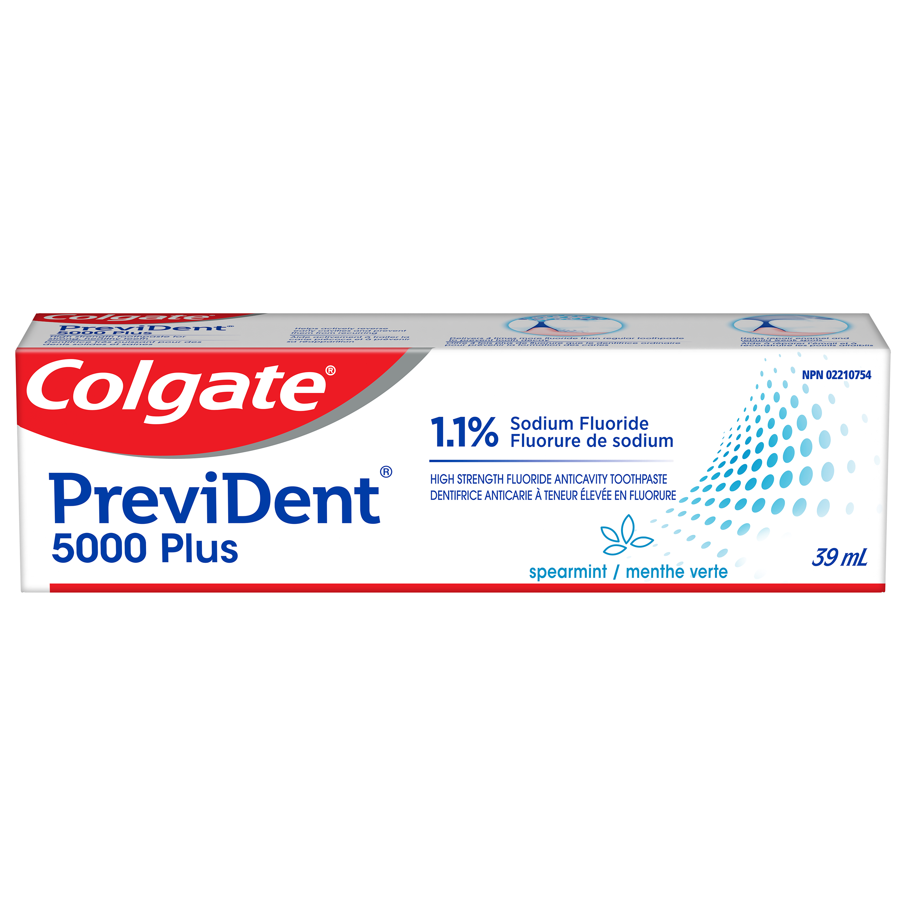 Product Title Colgate® PreviDent 5000 PLUS, Spearmint, 39 mL SKU 733411 SKU eCommerce Name Colgate® PreviDent 5000 PLUS, Spearmint, 39 mL Consumer Unit - GTIN 00038341287026 Case - GTIN 00038341334119 Product Category Oral Care Product Sub Category PP High Fluoride Brand Colgate Product Sub Brand Colgate PreviDent Toothpaste HF PP Consumer Unit Gross Weight 0.081 KG / 0.179 LB Consumer Unit Net Weight 0.050 KG / 0.110 LB Consumer Unit Length 35.000 MM / 1.378 IN Consumer Unit Width 151.000 MM / 5.945 IN Consumer Unit Height 43.000 MM / 1.693 IN Consumer Unit Volume 0.227 C8 / 0.008 CF Product Title Colgate® PreviDent 5000 PLUS, Spearmint, 39 mL eCommerce Copy Self-topical neural fluoride dentifrice containing 1.1% (w/w) sodium fluoride OS Amazon Product Title Colgate PreviDent Plus High Fluoride Toothpaste, Liquid Gel Toothpaste with Enhanced Fluoride Formula, Helps Reverse Early Tooth Decay, Spearmint, 39 mL OS Amazon Product Description Colgate PreviDent Plus is a high strength fluoride toothpaste designed to protect teeth from acid erosion. Available in a great-tasting Spearmint toothpaste flavour, this liquid gel sodium fluoride toothpaste contains 4X the fluoride found in regular fluoride toothpaste for cavity protection. The Colgate PreviDent Plus Sodium Fluoride Toothpaste uses an enhanced fluoride formulation that helps reverse the tooth decay process at the earliest stage before it can become a cavity. Plus, this fluoride toothpaste also helps remineralize your tooth enamel. Help reverse early tooth decay using the Colgate PreviDent Plus Spearmint Toothpaste. Colgate PreviDent Plus High Fluoride Toothpaste is a liquid gel toothpaste. The liquid gel form helps disperse fluoride quickly while you brush. For fast-release fluoride and cavity protection, choose the Colgate PreviDent Plus Spearmint Toothpaste. OS Amazon Bullet 1 Includes one (1) 39 mL bottle of Colgate PreviDent Plus High Fluoride Toothpaste, Spearmint Toothpaste flavour OS Amazon Bullet 2 Colgate PreviDent Plus Fluoride Toothpaste uses a fast-release liquid gel formula that gets where it needs to go fast to help with cavity prevention OS Amazon Bullet 3 Comes in a Spearmint toothpaste flavour and uses a high strength fluoride formula that helps reverse the tooth decay process at the earliest stage OS Amazon Bullet 4 This liquid gel toothpaste protects from acid erosion and helps remineralize tooth enamel OS Amazon Bullet 5 Colgate PreviDent Plus contains 4X the fluoride found in regular fluoride toothpaste for cavity protection OS Walmart Product Title Colgate PreviDent Plus High Fluoride Toothpaste, Spearmint, 39 mL OS Walmart Product Description Colgate PreviDent Plus High Fluoride Toothpaste, Spearmint, 39 mL Colgate PreviDent Plus is a high strength fluoride toothpaste designed to protect teeth from acid erosion. Available in a great-tasting Spearmint toothpaste flavour, this liquid gel sodium fluoride toothpaste contains 4X the fluoride found in regular fluoride toothpaste for cavity protection. Helps Reverse Tooth Decay The Colgate PreviDent Plus Sodium Fluoride Toothpaste uses an enhanced fluoride formulation that helps reverse the tooth decay process at the earliest stage before it can become a cavity. Plus, this fluoride toothpaste also helps remineralize your tooth enamel. Help reverse early tooth decay using the Colgate PreviDent Plus Spearmint Toothpaste. Fast-Release Liquid Gel Formula Colgate PreviDent Plus High Fluoride Toothpaste is a liquid gel toothpaste. The liquid gel form helps disperse fluoride quickly while you brush. For fast-release fluoride and cavity protection, choose the Colgate PreviDent Plus Spearmint Toothpaste. OS Walmart Bullet 1 Includes one (1) 39 mL bottle of Colgate PreviDent Plus High Fluoride Toothpaste, Spearmint Toothpaste flavour OS Walmart Bullet 2 Colgate PreviDent Plus Fluoride Toothpaste uses a fast-release liquid gel formula that gets where it needs to go fast to help with cavity prevention OS Walmart Bullet 3 Comes in a Spearmint toothpaste flavour and uses a high strength fluoride formula that helps reverse the tooth decay process at the earliest stage OS Walmart Bullet 4 This liquid gel toothpaste protects from acid erosion and helps remineralize tooth enamel OS Walmart Bullet 5 Colgate PreviDent Plus contains 4X the fluoride found in regular fluoride toothpaste for cavity protection Walmart Bullet 1 One-step procedure, better patient compliance Walmart Bullet 2 Therapeutic decay prevention safe for exposed root surfaces OS Loblaws Product Title PreviDent Plus High Fluoride Toothpaste, Spearmint OS Loblaws Product Description Colgate PreviDent Plus is a high strength fluoride toothpaste designed to protect teeth from acid erosion. Available in a great-tasting Spearmint toothpaste flavour, this liquid gel sodium fluoride toothpaste contains 4X the fluoride found in regular fluoride toothpaste for cavity protection. The Colgate PreviDent Plus Sodium Fluoride Toothpaste uses an enhanced fluoride formulation that helps reverse the tooth decay process at the earliest stage before it can become a cavity. Plus, this fluoride toothpaste also helps remineralize your tooth enamel. Help reverse early tooth decay using the Colgate PreviDent Plus Spearmint Toothpaste. Colgate PreviDent Plus High Fluoride Toothpaste is a liquid gel toothpaste. The liquid gel form helps disperse fluoride quickly while you brush. OS Loblaws Bullet 1 Includes one (1) 39 mL bottle of Colgate PreviDent Plus High Fluoride Toothpaste, Spearmint Toothpaste flavour OS Loblaws Bullet 2 Colgate PreviDent Plus Fluoride Toothpaste uses a fast-release liquid gel formula that gets where it needs to go fast to help with cavity prevention OS Loblaws Bullet 3 Comes in a Spearmint toothpaste flavour and uses a high strength fluoride formula that helps reverse the tooth decay process at the earliest stage OS Loblaws Bullet 4 This liquid gel toothpaste protects from acid erosion and helps remineralize tooth enamel 