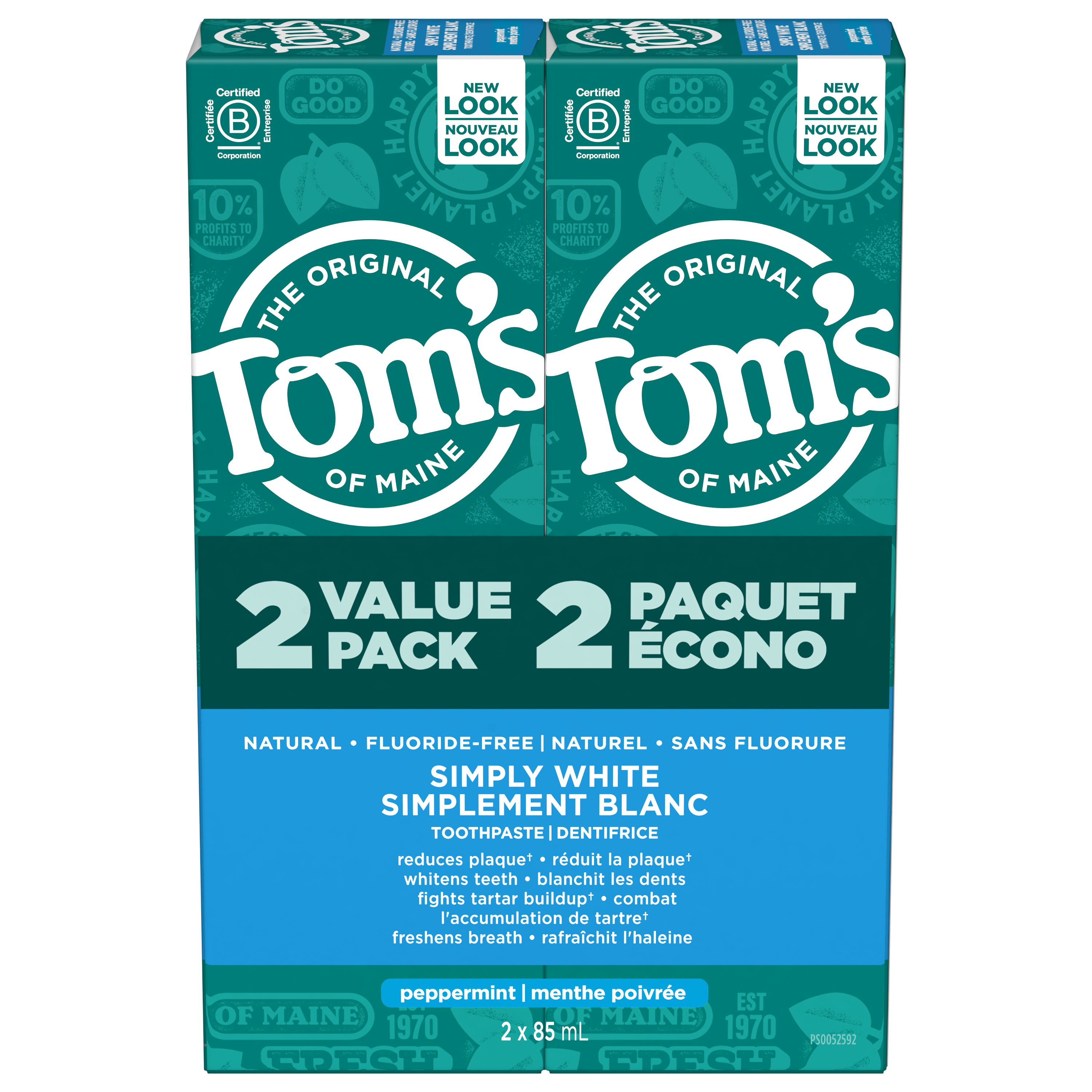 Tom's of Maine Simply White Fluoride-Free Natural Toothpaste, Peppermint, 85 mL (2 Pack)