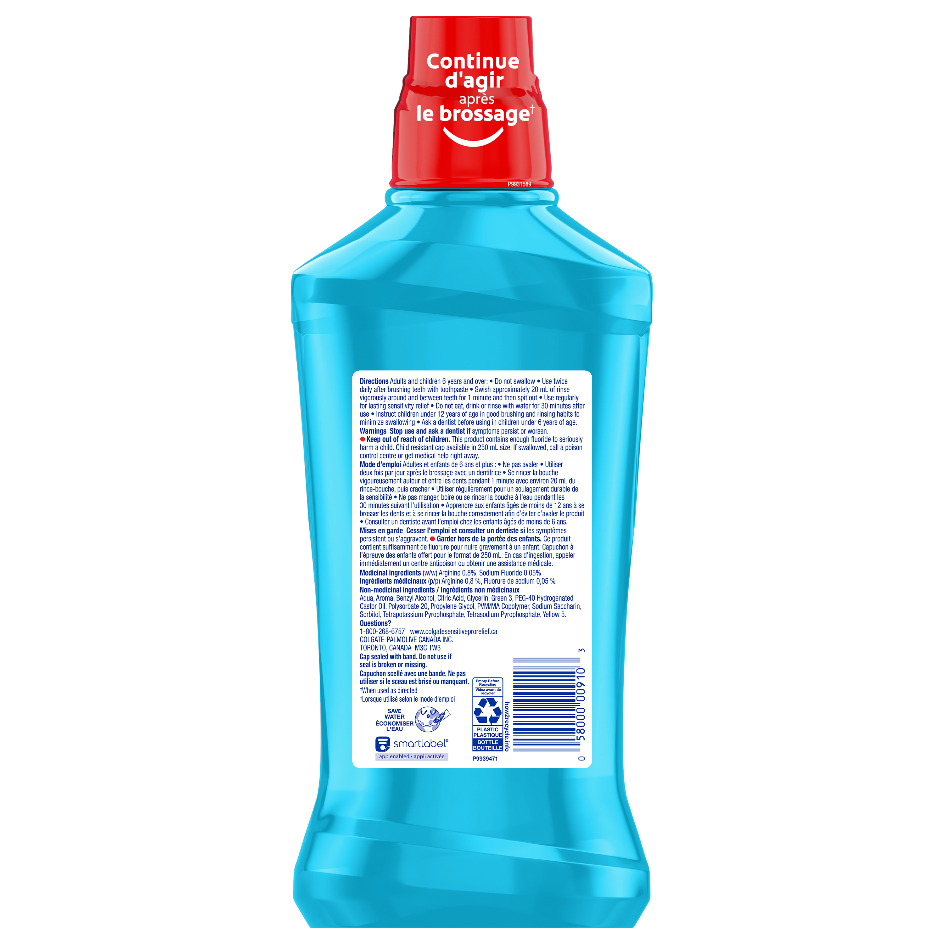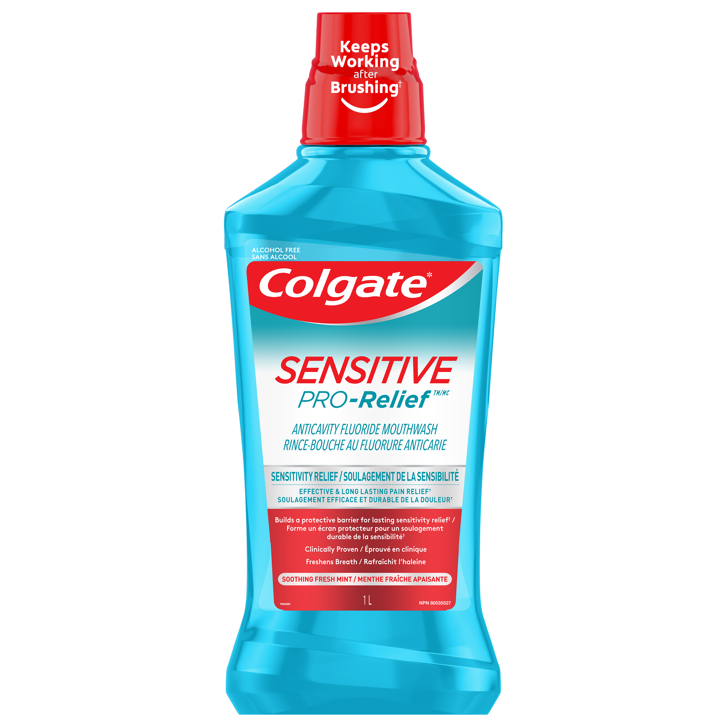 Product Title Colgate Sensitive Pro-Relief Mouthwash, Fresh Mint -1L SKU CA01106A SKU eCommerce Name Colgate Sensitive Pro-Relief Mouthwash, Fresh Mint -1L Consumer Unit - GTIN 00058000009103 Case - GTIN 10035000985580 Product Category Oral Care Product Sub Category Mouthwash Brand Colgate Product Sub Brand Colgate Sensitive Pro-Relief MW Consumer Unit Gross Weight 1.167 KG / 2.573 LB Consumer Unit Net Weight 1.091 KG / 2.406 LB Consumer Unit Length 111.000 MM / 4.370 IN Consumer Unit Width 68.000 MM / 2.677 IN Consumer Unit Height 266.000 MM / 10.472 IN Consumer Unit Volume 1.982 C8 / 0.070 CF Product Title Colgate Sensitive Pro-Relief Mouthwash, Fresh Mint -1L eCommerce Copy- Long Description Colgate Sensitive Pro-Relief Mouthwash builds a long-lasting barrier that acts as a seal against sensitivity, with regular use. It has a mild mint flavour for fresh breath and helps protect teeth from acid wear. It is Alcohol-free and Does not contain ethanol Keywords (eCommerce) mouthwash, mouth rinse, rinses, mouthwashes, alcohol free, non alcoholic, no alcohol, without alcohol, best mouthwashes, sore gums, dental, fresh breath, bad breath, adult, sensitivity, most effective, sensitive teeth, no burn, fluoride, brands, enamel