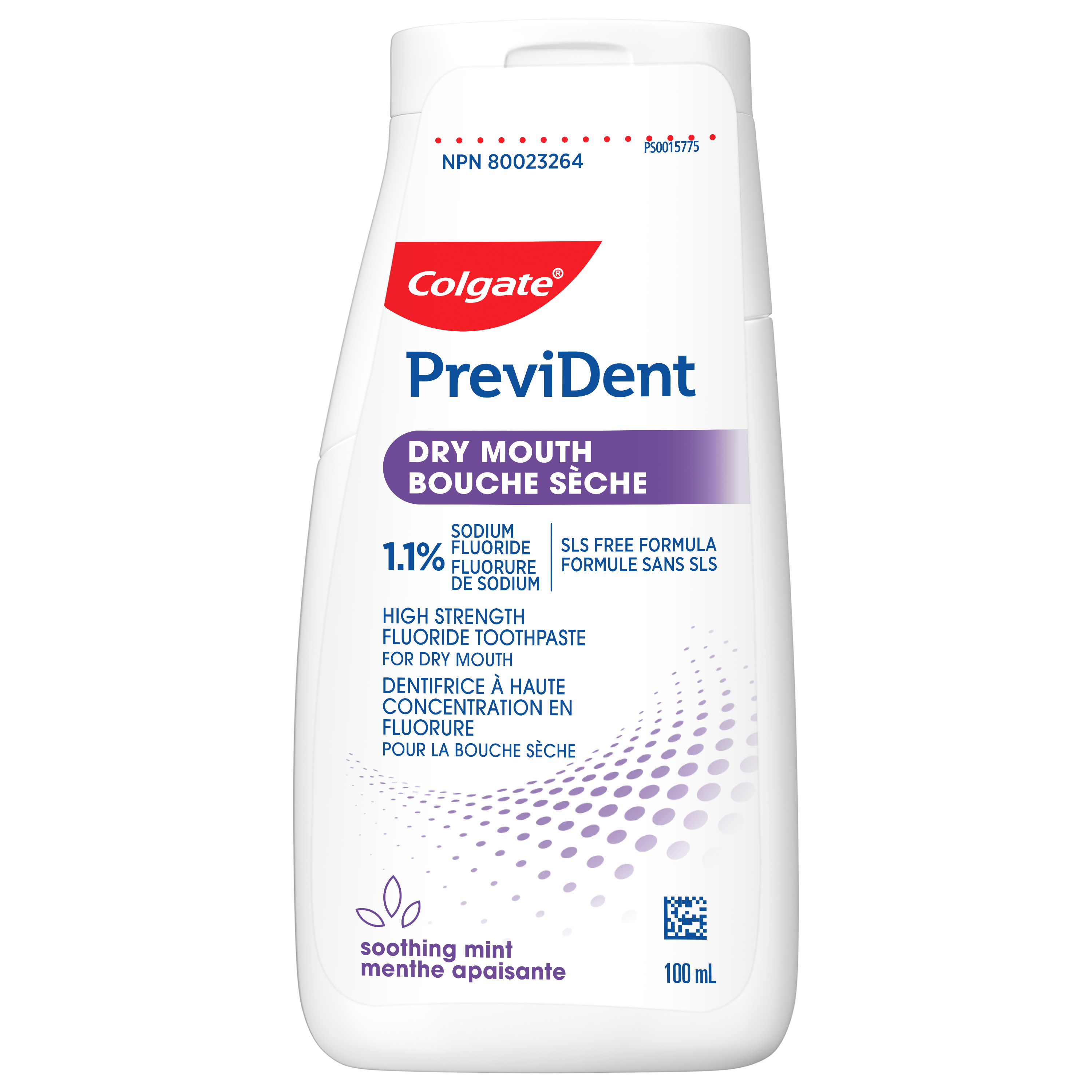 Product Title PREVIDENT DRY MOUTH GEL TP 100ML SKU CA01132A Consumer Unit - GTIN 00035000988027 Case - GTIN 10035000988024 Product Category Oral Care Product Sub Category PP High Fluoride Brand Colgate Product Sub Brand Colgate PreviDent Toothpaste HF PP Consumer Unit Gross Weight 0.161 KG / 0.355 LB Consumer Unit Net Weight 0.096 KG / 0.212 LB Consumer Unit Length 28.000 MM / 1.102 IN Consumer Unit Width 60.000 MM / 2.362 IN Consumer Unit Height 121.000 MM / 4.764 IN Consumer Unit Volume 0.198 C8 / 0.007 CF Product Title PREVIDENT DRY MOUTH GEL TP 100ML OS Amazon Product Title Colgate PreviDent Dry Mouth High Fluoride Toothpaste, Protects Teeth from Acid Wear and Helps Strengthen Weakened Enamel, Soothing Mint, 100 mL OS Amazon Product Description Colgate PreviDent Dry Mouth Toothpaste is a high strength fluoride toothpaste designed for dry mouth sufferers. This liquid gel sodium fluoride toothpaste uses a specialized formula designed to provide significantly greater levels of fluoride for cavity protection and protection from acid wear. Plus, it comes in a refreshing Soothing Mint toothpaste flavour to freshen breath. The Colgate PreviDent Dry Mouth High Strength Sodium Fluoride Toothpaste uses an enhanced fluoride formulation that actively strengthens weakened enamel. This helps actively reverse early cavities and prevent cavities from occurring. Help repair enamel, rebuild weak spots, and prevent cavities using the Colgate PreviDent Dry Mouth Liquid Gel Toothpaste. Colgate PreviDent Dry Mouth Toothpaste is a liquid gel SLS free toothpaste designed for dry mouth sufferers. The liquid gel toothpaste form helps disperse fluoride quickly while you brush. Help protect against future tooth density loss with the Colgate PreviDent Dry Mouth High Fluoride Toothpaste. OS Amazon Bullet 1 Includes one (1) 100 mL bottle of Colgate PreviDent Dry Mouth High Strength Fluoride Toothpaste, Liquid Gel Toothpaste OS Amazon Bullet 2 Scientifically formulated to provide significantly greater levels of fluoride for cavity protection and protection from acid wear OS Amazon Bullet 3 This dry mouth toothpaste uses a SLS free formula that is designed for dry mouth sufferers and comes in a refreshing Soothing Mint toothpaste flavour OS Amazon Bullet 4 Colgate PreviDent Liquid Gel Toothpaste with fluoride actively strengthens weakened enamel and helps reverse early cavities OS Amazon Bullet 5 Help protect against future density loss with the Colgate PreviDent Dry Mouth Sodium Fluoride Toothpaste OS Walmart Product Title Colgate PreviDent Dry Mouth High Fluoride Toothpaste, Soothing Mint, 100 mL OS Walmart Product Description Colgate PreviDent Dry Mouth High Fluoride Toothpaste, Soothing Mint, 100 mL Colgate PreviDent Dry Mouth Toothpaste is a high strength fluoride toothpaste designed for dry mouth sufferers. This liquid gel sodium fluoride toothpaste uses a specialized formula designed to provide significantly greater levels of fluoride for cavity protection and protection from acid wear. Plus, it comes in a refreshing Soothing Mint toothpaste flavour to freshen breath. Actively Strengthens Weakened Enamel The Colgate PreviDent Dry Mouth High Strength Sodium Fluoride Toothpaste uses an enhanced fluoride formulation that actively strengthens weakened enamel. This helps actively reverse early cavities and prevent cavities from occurring. Help repair enamel, rebuild weak spots, and prevent cavities using the Colgate PreviDent Dry Mouth Liquid Gel Toothpaste. SLS Free Toothpaste Formula Colgate PreviDent Dry Mouth Toothpaste is a liquid gel SLS free toothpaste designed for dry mouth sufferers. The liquid gel toothpaste form helps disperse fluoride quickly while you brush. Help protect against future tooth density loss with the Colgate PreviDent Dry Mouth High Fluoride Toothpaste. OS Walmart Bullet 1 Includes one (1) 100 mL bottle of Colgate PreviDent Dry Mouth High Strength Fluoride Toothpaste, Liquid Gel Toothpaste OS Walmart Bullet 2 Scientifically formulated to provide significantly greater levels of fluoride for cavity protection and protection from acid wear OS Walmart Bullet 3 This dry mouth toothpaste uses a SLS free formula that is designed for dry mouth sufferers and comes in a refreshing Soothing Mint toothpaste flavour OS Walmart Bullet 4 Colgate PreviDent Liquid Gel Toothpaste with fluoride actively strengthens weakened enamel and helps reverse early cavities OS Walmart Bullet 5 Help protect against future density loss with the Colgate PreviDent Dry Mouth Sodium Fluoride Toothpaste OS Loblaws Product Title PreviDent Dry Mouth High Fluoride Toothpaste, Mint OS Loblaws Product Description Colgate PreviDent Dry Mouth Toothpaste is a high strength fluoride toothpaste designed for dry mouth sufferers. This liquid gel sodium fluoride toothpaste uses a specialized formula designed to provide significantly greater levels of fluoride for cavity protection and protection from acid wear. Plus, it comes in a refreshing Soothing Mint toothpaste flavour to freshen breath. The Colgate PreviDent Dry Mouth High Strength Sodium Fluoride Toothpaste uses an enhanced fluoride formulation that actively strengthens weakened enamel. This helps actively reverse early cavities and prevent cavities from occurring. Help repair enamel, rebuild weak spots, and prevent cavities using the Colgate PreviDent Dry Mouth Liquid Gel Toothpaste. OS Loblaws Bullet 1 Includes one (1) 100 mL bottle of Colgate PreviDent Dry Mouth High Strength Fluoride Toothpaste, Liquid Gel Toothpaste OS Loblaws Bullet 2 Scientifically formulated to provide significantly greater levels of fluoride for cavity protection and protection from acid wear OS Loblaws Bullet 3 This dry mouth toothpaste uses a SLS free formula that is designed for dry mouth sufferers and comes in a refreshing Soothing Mint toothpaste flavour OS Loblaws Bullet 4 Colgate PreviDent Liquid Gel Toothpaste with fluoride actively strengthens weakened enamel and helps reverse early cavities OS L