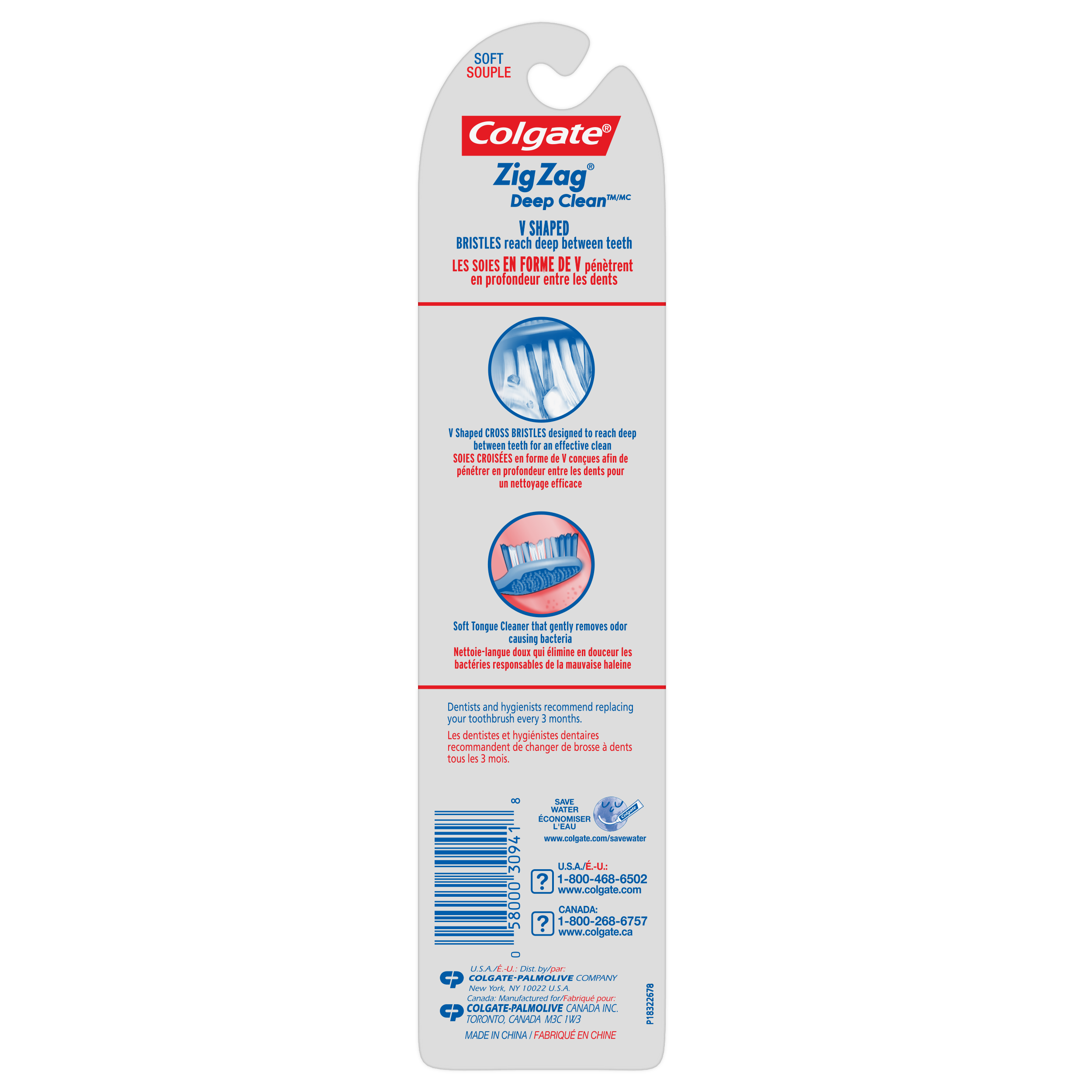 Product Title Colgate Zig Zag Deep Clean Soft Toothbrush with Soft Bristles, Adult Toothbrushes, 2 Pack SKU CN01385A SKU eCommerce Name Colgate Zig Zag Deep Clean Soft Toothbrush with Soft Bristles, Adult Toothbrushes, 2 Pack Consumer Unit - GTIN 00058000309418 Case - GTIN 10058000313375 Product Category Oral Care Product Sub Category Manual TB Brand Colgate Product Sub Brand Colgate Zigzag Man TB Consumer Unit Gross Weight 0.031 KG / 0.068 LB Consumer Unit Net Weight 0.024 KG / 0.053 LB Consumer Unit Length 22.000 MM / 0.866 IN Consumer Unit Width 52.000 MM / 2.047 IN Consumer Unit Height 229.000 MM / 9.016 IN Consumer Unit Volume 0.262 C8 / 0.009 CF Product Title Colgate Zig Zag Deep Clean Soft Toothbrush with Soft Bristles, Adult Toothbrushes, 2 Pack eCommerce Copy Colgate ZigZag Toothbrush is designed with v-shaped cross bristles to reach deep between teeth for an effective clean that reaches the right places. This toothbrush is made with 25% recycled plastic and in a true zero waste facility. eCommerce Copy- Long Description Colgate ZigZag Toothbrush is a soft toothbrush designed with v-shaped cross bristles to reach deep between teeth for an effective clean that reaches the right places. This toothbrush also has a soft tongue cleaner that gently removes odor causing bacteria from your tongue and cheeks. Not only comfortable to allow more control during your brushing routine, the Colgate ZigZag Toothbrush is also responsibly made.* Made in a zero true waste, LEED-certified facility, the ZigZag toothbrush features a 25% recycled plastic toothbrush handle and a 100% recycled paperboard backercard. These deep clean toothbrushes come in different colors for multiple people in a household or for a replenishment. Remember to change your toothbrush every 3 months. *To learn more, visit www.colgatepalmolive.com/responsibly-made Keywords (eCommerce) colgate toothbrush, manual toothbrush, soft toothbrush bristles, adult toothbrush, cheek tongue cleaner, full head, travel toothbrush, bulk toothbrushes, family toothbrushes, value pack toothbrushes, toothbrushes OS Amazon On Page Keywords soft toothbrushes, toothbrush pack, soft toothbrush, adult toothbrushes, deep clean toothbrushes, soft bristle toothbrush, manual toothbrush OS Walmart On Page Keywords soft toothbrushes, toothbrush pack, soft toothbrush, adult toothbrushes, deep clean toothbrushes, soft bristle toothbrush, manual toothbrush