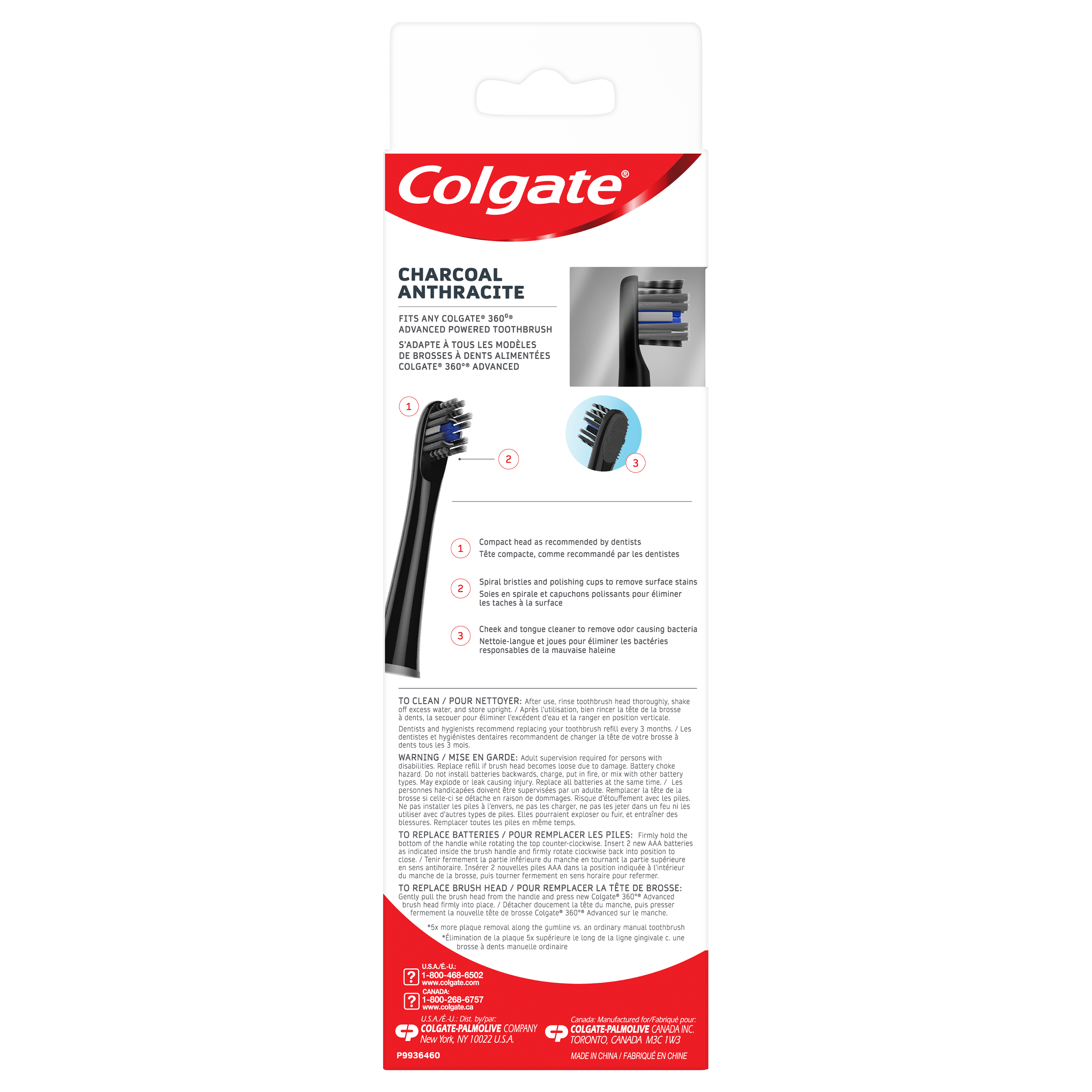 Product Title 360 ADV CHARCL BAT TB REP HEAD 2PK CS MU SKU CN06918A Consumer Unit - GTIN 00035000467034 Case - GTIN 10035000467031 Product Category Oral Care Product Sub Category Battery TB Brand Colgate Product Sub Brand Colgate 360 Adv BTB Consumer Unit Gross Weight 0.035 KG / 0.077 LB Consumer Unit Net Weight 0.035 KG / 0.077 LB Consumer Unit Length 33.000 MM / 1.299 IN Consumer Unit Width 59.000 MM / 2.323 IN Consumer Unit Height 230.000 MM / 9.055 IN Consumer Unit Volume 0.453 C8 / 0.016 CF Product Title 360 ADV CHARCL BAT TB REP HEAD 2PK CS MU
