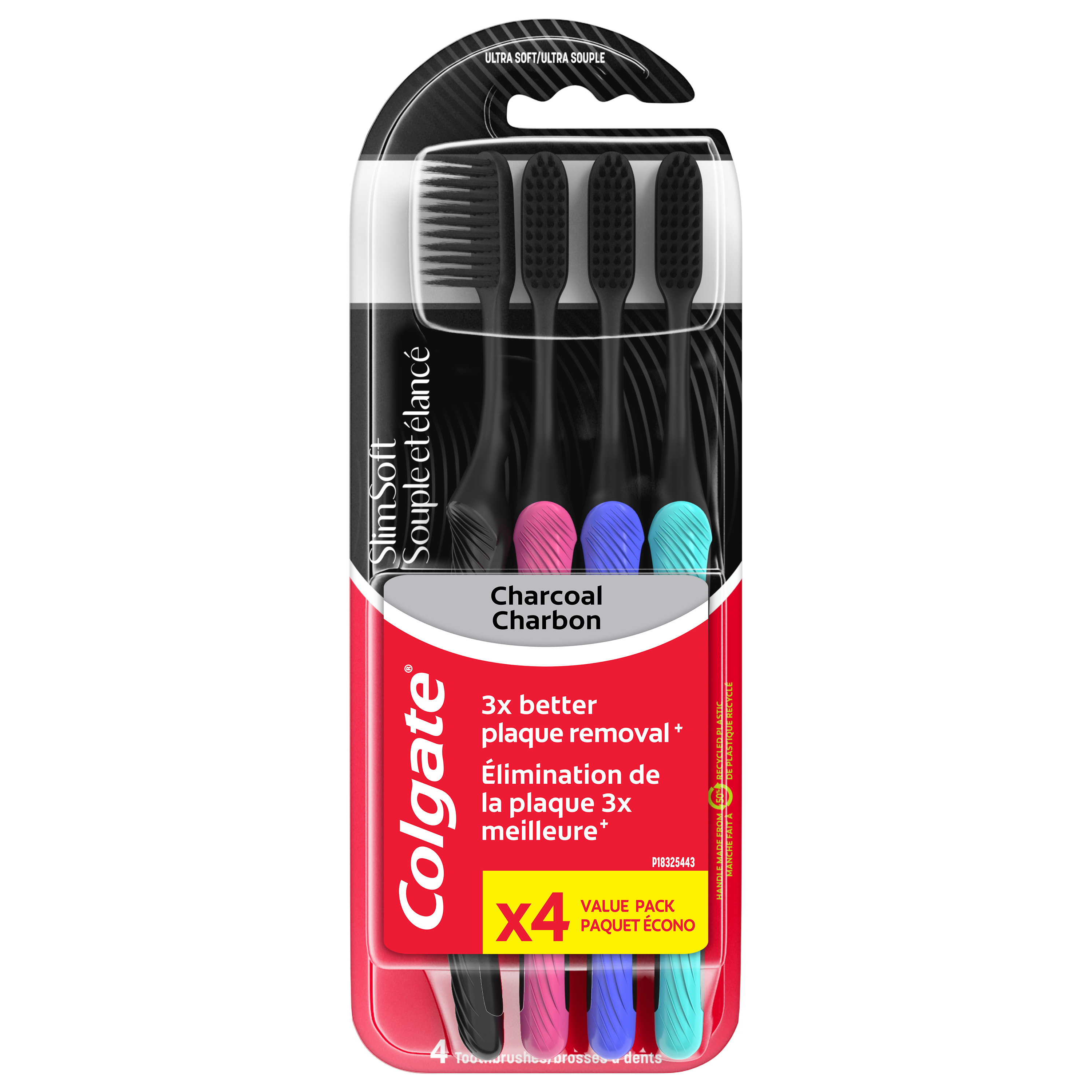 Product Title Colgate Slim Soft Charcoal Toothbrush 17x Slimmer Tip Soft Bristles - 4 Count SKU CN08101A SKU eCommerce Name Colgate Slim Soft Charcoal Toothbrush 17x Slimmer Tip Soft Bristles - 4 Count Consumer Unit - GTIN 00035000978479 Case - GTIN 10035000978476 Product Category Oral Care Product Sub Category Manual TB Brand Colgate Product Sub Brand Colgate Slim Soft Man TB Consumer Unit Gross Weight 0.100 KG / 0.221 LB Consumer Unit Net Weight 0.044 KG / 0.097 LB Consumer Unit Length 229.000 MM / 9.016 IN Consumer Unit Width 85.000 MM / 3.346 IN Consumer Unit Height 23.000 MM / 0.906 IN Consumer Unit Volume 0.448 C8 / 0.016 CF Product Title Colgate Slim Soft Charcoal Toothbrush 17x Slimmer Tip Soft Bristles - 4 Count eCommerce Copy Colgate Slim Soft Charcoal Toothbrush, with charcoal infused bristles, cleans deep in between teeth. eCommerce Copy- Long Description Colgate Slim Soft Charcoal Toothbrush, with charcoal infused bristles, cleans deep in between teeth. 17x slimmer tip bristles* are specially designed for a deep and gentle clean. Helps sweep food and plaque from around the gum line. Toothbrush comes with soft bristles. *Slimmer tips vs. end rounded bristles Keywords (eCommerce) teethbrush, tooth, brush, tooth brush, manual, best, gums, flosser, floss, adult, sensitive, value, interdental, dentist recommended, gentle, cleans gently, non-electric, mouth care, good, handle, soft, black, oral care, value, small mouth, fine bristles, slim, soft charcoal