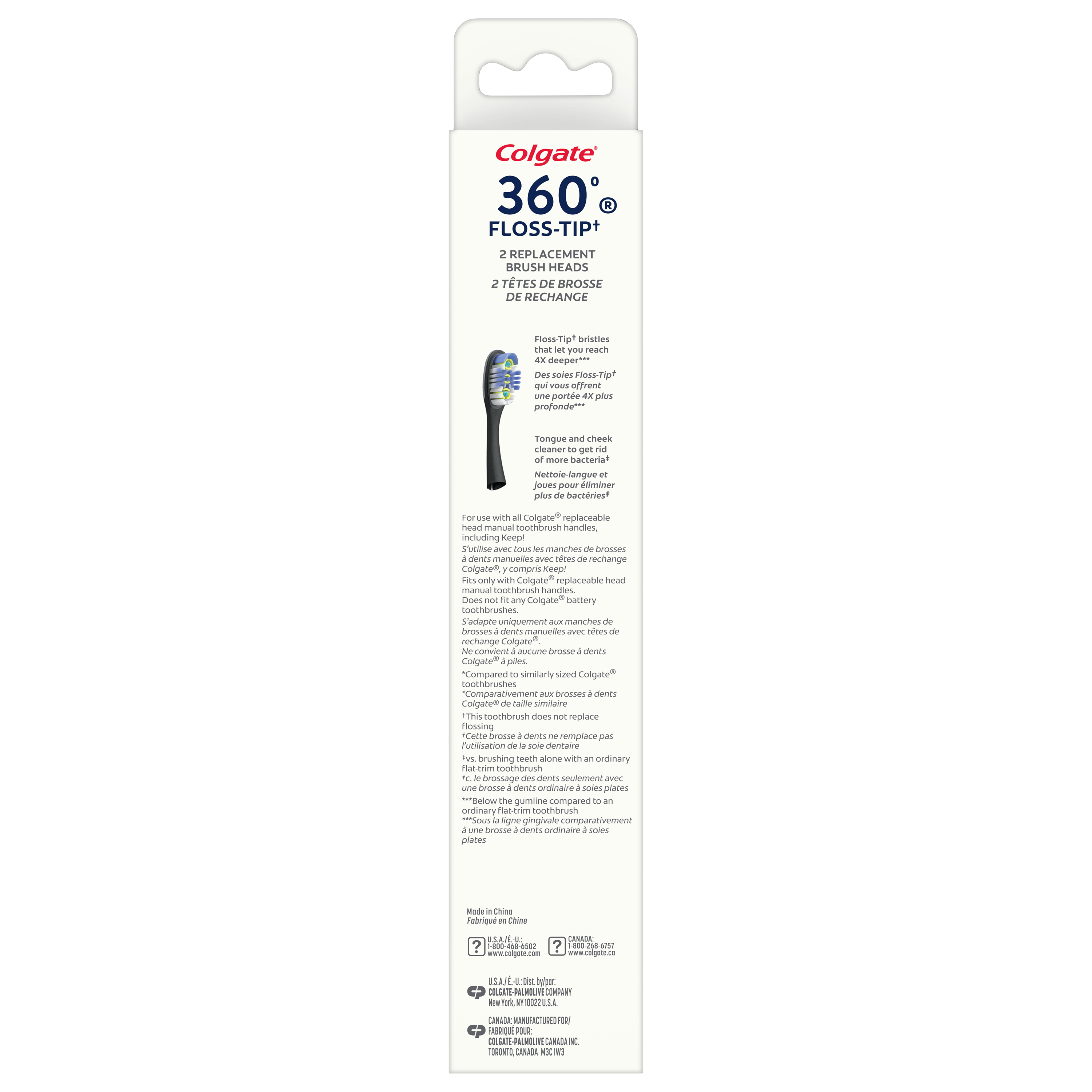 Product Title Colgate Keep Manual Toothbrush Deep Clean Refills - 2pk SKU CN08186A SKU eCommerce Name Colgate Keep Manual Toothbrush Deep Clean Refills - 2pk Consumer Unit - GTIN 00035000982018 Case - GTIN 10035000982015 Product Category Oral Care Product Sub Category Manual TB Brand Colgate Product Sub Brand Colgate Keep Man TB Consumer Unit Gross Weight 0.016 KG / 0.035 LB Consumer Unit Net Weight 0.006 KG / 0.013 LB Consumer Unit Length 19.000 MM / 0.748 IN Consumer Unit Width 43.000 MM / 1.693 IN Consumer Unit Height 230.000 MM / 9.055 IN Consumer Unit Volume 0.170 C8 / 0.006 CF Product Title Colgate Keep Manual Toothbrush Deep Clean Refills - 2pk eCommerce Copy Easily-replaceable brush heads with Floss-Tip bristles† for a deeper clean. † This toothbrush does not replace flossing eCommerce Copy- Long Description Deep Clean with Floss-Tip bristles† gently reach 4x deeper below the gum line‡ and between teeth. Plus, our unique tongue and cheek cleaner helps reduce more bacteria**. †This toothbrush does not replace flossing ‡vs. an ordinary flat trim toothbrush **vs. brushing teeth alone with an ordinary flat-trim toothbrush Keywords (eCommerce) toothbrush, toothbrush heads, soft toothbrush, toothbrush replacement heads, replacement toothbrush heads, soft bristle toothbrush for sensitive teeth, toothbrush head, soft bristle toothbrush, toothbrush pack, whitening toothbrush, portable toothbrush, tooth brush heads, manual toothbrush, eco toothbrush, eco friendly toothbrush, adult toothbrush, toothbrush set, sensitive toothbrush, sustainable toothbrush, single toothbrush Walmart Bullet 1 Cleans teeth, tongue, cheeks and gums Walmart Bullet 2 Two replaceable floss-tip brush heads Walmart Bullet 3 Floss-Tip bristles† gently reach 4x deeper below the gum line‡ and between teeth. † This toothbrush does not replace flossing ‡vs. an ordinary flat trim toothbrush Walmart Bullet 4 Reusable product - Use these manual toothbrush replacement heads with any Colgate reusable metal toothbrush handle Walmart Bullet 5 Colgate’s best selling Floss Tip† bristles † This toothbrush does not replace flossing.