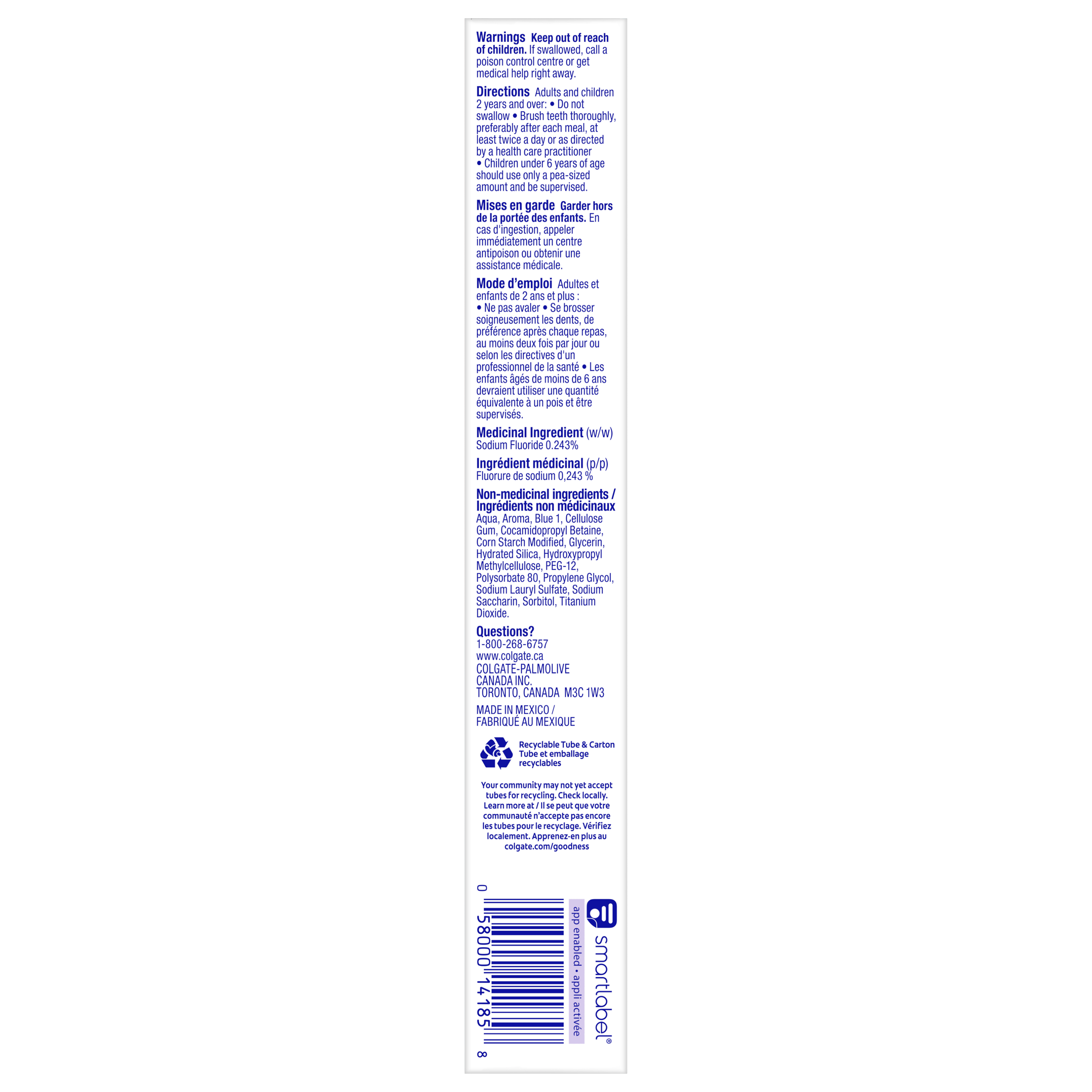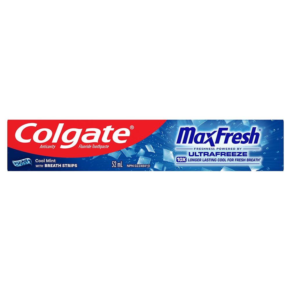Product Title Colgate Max Fresh Cool Mint Toothpaste 52 mL SKU MX05779A SKU eCommerce Name Colgate Max Fresh Cool Mint Toothpaste 52 mL Consumer Unit - GTIN 00058000141858 Case - GTIN 10058000141855 Product Category Oral Care Product Sub Category Toothpaste Brand Colgate Product Sub Brand Colgate Max Fresh TP Consumer Unit Gross Weight 0.087 KG / 0.192 LB Consumer Unit Net Weight 0.071 KG / 0.157 LB Consumer Unit Length 34.000 MM / 1.339 IN Consumer Unit Width 184.000 MM / 7.244 IN Consumer Unit Height 28.000 MM / 1.102 IN Consumer Unit Volume 0.175 C8 / 0.006 CF Product Title Colgate Max Fresh Cool Mint Toothpaste 52 mL Product Description Release an instant blast of freshness with Colgate MaxFresh Cool Mint Toothpaste. Powered by Ultrafreeze, this travel size toothpaste offers 10X longer-lasting cool for fresh breath*. This minty breath freshener toothpaste, with hundreds of mini breath strips,, is bursting with freshness that lasts for hours. Colgate MaxFresh Toothpaste comes in a refreshing Cool Mint flavour that invigorates the brushing experience. However, it’s more than just a travel toothpaste for bad breath, Colgate MaxFresh Cool Mint Toothpaste is also a fluoride toothpaste and helps prevent cavities. With its refreshing Cool Mint flavour and hundreds of mini breath strips, Colgate MaxFresh Toothpaste leaves your breath feeling fresh for hours. Plus, the fluoride-based formula helps fight cavities. Get long-lasting fresh breath with Colgate MaxFresh Toothpaste. *vs. a regular Colgate fluoride toothpaste eCommerce Copy Colgate Max Fresh Toothpaste with Breath Strips and a great Cool Mint flavor fights cavities, whitens teeth, and freshens breath. eCommerce Copy- Long Description You can breathe confidently with Colgate Max Fresh Toothpaste with Breath Strips and a great Cool Mint flavor. Our unique toothpaste formula is packed with hundreds of mini breath strips and unleashes a powerful rush of freshness for long-lasting fresh breath. Colgate Max Fresh Toothpaste with Breath Strips invigorates your brushing experience and leaves your breath feeling fresh for hours. Plus, it fights cavities and whitens teeth leaving you with a healthy smile. Bullet 1 Includes one (1) 52 mL tube of Colgate MaxFresh Cool Mint Toothpaste, Travel Size Toothpaste Bullet 2 Powered by Ultrafreeze, this Colgate MaxFresh mini toothpaste provides 10X longer-lasting cool for fresh breath* Bullet 3 Fluoride toothpaste formula helps fight cavities Bullet 4 This travel toothpaste, with hundreds of mini breath strips, is bursting with freshness that lasts for hours Bullet 5 Release an instant blast of freshness with Colgate MaxFresh Cool Mint Toothpaste for Bad Breath Keywords (eCommerce) tooth paste, toothpastes, paste, best whitening, strips, cavity protection, great taste, halitosis, teeth, tooth wash, clean, stain removal, bleach, healthy, affordable, at home, bad breath, easy, fast, home remedies, do it yourself, dental stain removal, over the counter, noticeable, beautiful, long lasting, refreshing, lightens, freshen, keeps, gel, pearly OS Amazon Product Title Colgate MaxFresh Cool Mint Toothpaste for Bad Breath, Travel Toothpaste with Fluoride, Includes Hundreds of Mini Breath Strips, Leaves Mouth Feeling Refreshed for Hours, 52 mL OS Amazon Product Description Release an instant blast of freshness with Colgate MaxFresh Cool Mint Toothpaste. Powered by Ultrafreeze, this travel size toothpaste offers 10X longer-lasting cool for fresh breath*. This minty breath freshener toothpaste, with hundreds of mini breath strips, is bursting with freshness that lasts for hours. Colgate MaxFresh Toothpaste comes in a refreshing Cool Mint flavour that invigorates the brushing experience. However, it’s more than just a travel toothpaste for bad breath, Colgate MaxFresh Cool Mint Toothpaste is also a fluoride toothpaste and helps prevent cavities. With its refreshing Cool Mint flavour and hundreds of mini breath strips, Colgate MaxFresh Toothpaste leaves your breath feeling fresh for hours. Plus, the fluoride-based formula helps fight cavities. Get long-lasting fresh breath with Colgate MaxFresh Toothpaste. *vs. a regular Colgate fluoride toothpaste OS Amazon Bullet 1 Includes one (1) 52 mL tube of Colgate MaxFresh Cool Mint Toothpaste, Travel Size Toothpaste OS Amazon Bullet 2 Powered by Ultrafreeze, this Colgate MaxFresh mini toothpaste provides 10X longer-lasting cool for fresh breath* OS Amazon Bullet 3 Fluoride toothpaste formula helps fight cavities OS Amazon Bullet 4 This travel toothpaste, with hundreds of mini breath strips, is bursting with freshness that lasts for hours OS Amazon Bullet 5 Release an instant blast of freshness with Colgate MaxFresh Cool Mint Toothpaste for Bad Breath OS Walmart Product Title Colgate MaxFresh Cool Mint Toothpaste, Travel Size Toothpaste, 52 mL OS Walmart Product Description Colgate MaxFresh Cool Mint Toothpaste, Travel Size Toothpaste, 52 mL Release an instant blast of freshness with Colgate MaxFresh Cool Mint Toothpaste. Powered by Ultrafreeze, this minty travel size toothpaste offers 10X longer-lasting cool for fresh breath (1). This breath freshener toothpaste, with hundreds of mini breath strips, is bursting with freshness that lasts for hours. A Fresh Experience in Fighting Bad Breath Colgate MaxFresh Toothpaste comes in a refreshing Cool Mint flavour that invigorates the brushing experience. However, it’s more than just a mini toothpaste for bad breath, Colgate MaxFresh Cool Mint Toothpaste is also a fluoride toothpaste and helps prevent cavities. Long-Lasting Fresh Breath With its refreshing Cool Mint flavour and hundreds of mini breath strips, Colgate MaxFresh Toothpaste leaves your breath feeling fresh for hours. Plus, the fluoride-based formula helps fight cavities. Get long-lasting fresh breath with Colgate MaxFresh Toothpaste. (1) vs. a regular Colgate fluoride toothpaste OS Walmart Bullet 1 Includes one (1) 52 mL tube of Colgate MaxFresh Cool Mint Toothpaste, 