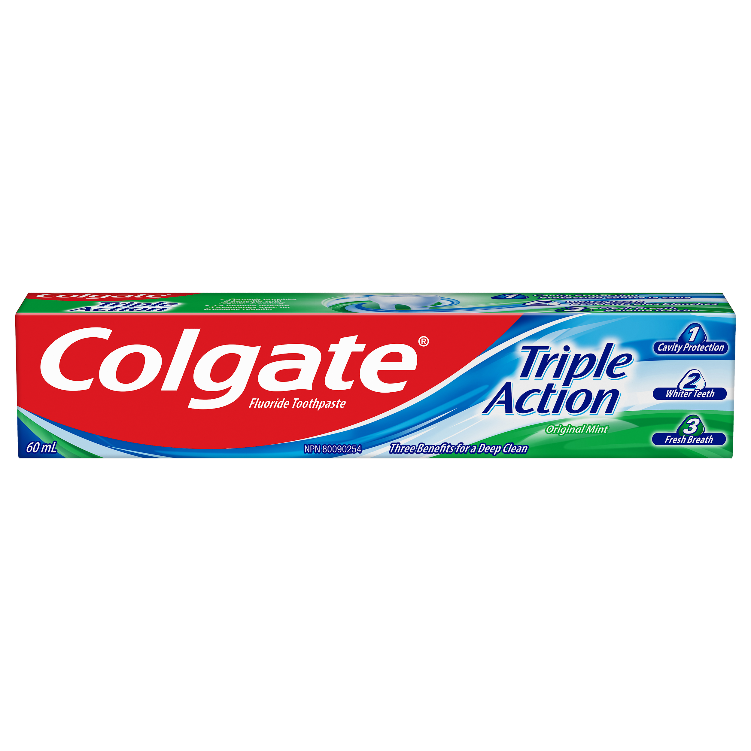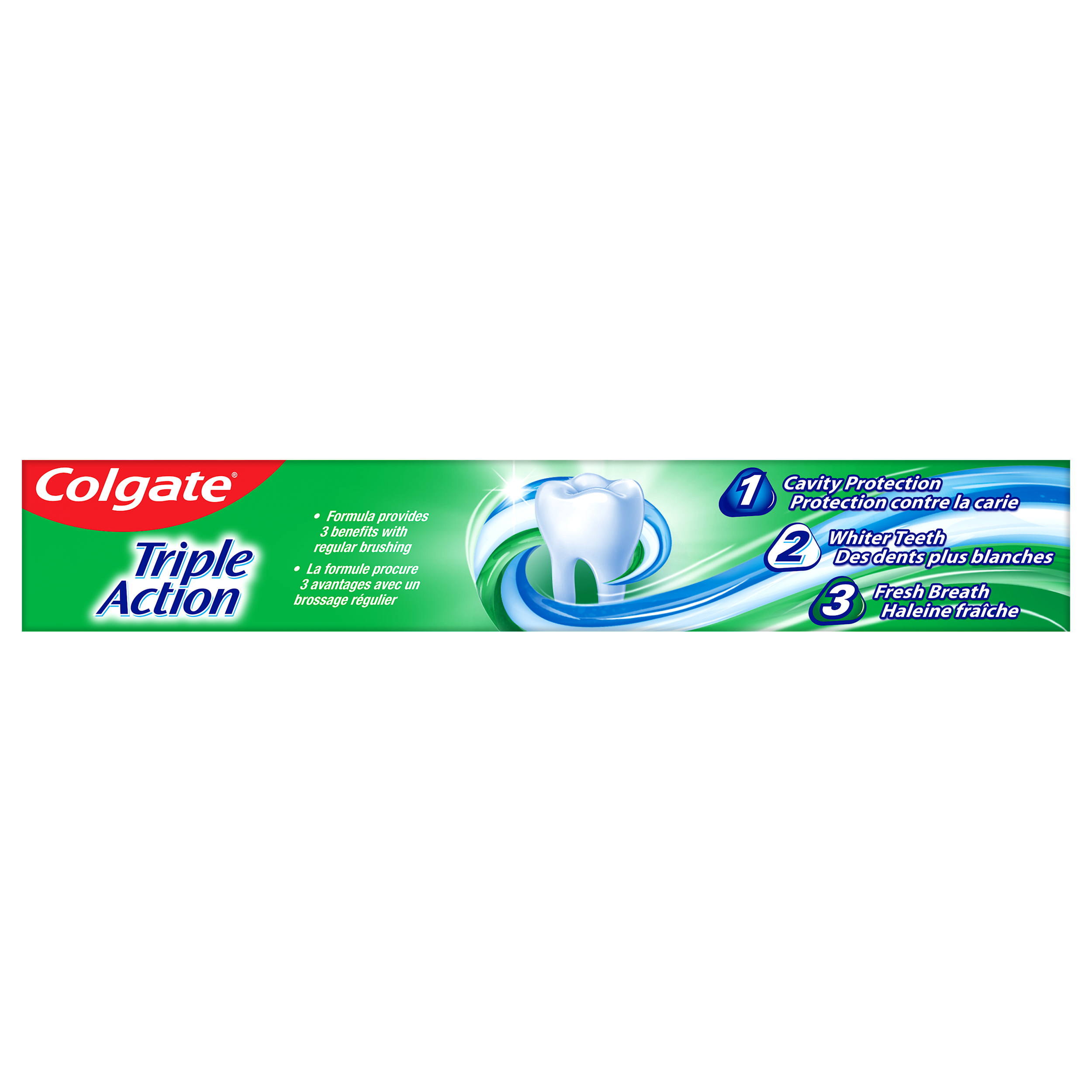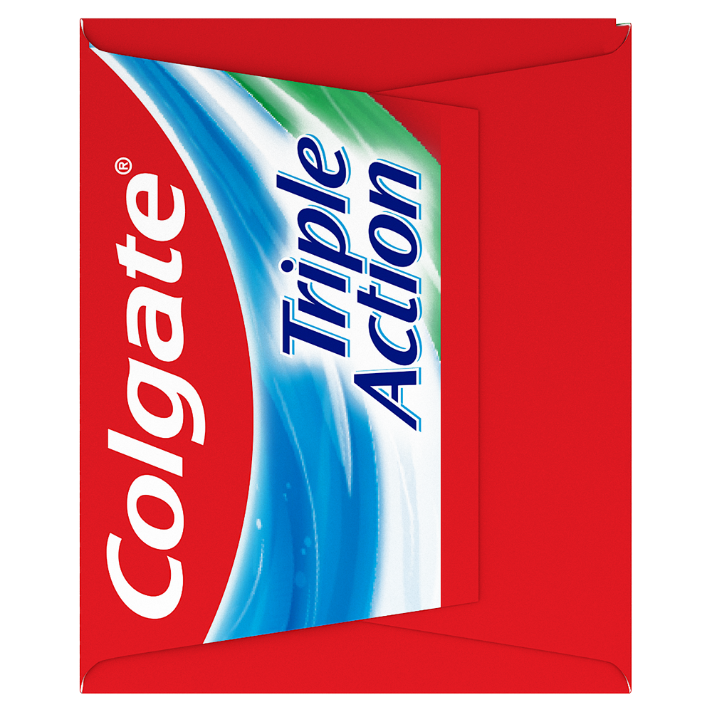 Product Title CTP TRIPLE ACTION 60ML CS SP SKU MX06707A Consumer Unit - GTIN 00035000968852 Case - GTIN 10035000968859 Product Category Oral Care Product Sub Category Toothpaste Brand Colgate Product Sub Brand Colgate Triple Action TP Consumer Unit Gross Weight 0.098 KG / 0.216 LB Consumer Unit Net Weight 0.081 KG / 0.179 LB Consumer Unit Length 31.000 MM / 1.220 IN Consumer Unit Width 184.000 MM / 7.244 IN Consumer Unit Height 38.000 MM / 1.496 IN Consumer Unit Volume 0.217 C8 / 0.008 CF Product Title CTP TRIPLE ACTION 60ML CS SP OS Amazon Product Title Colgate Triple Action Whitening Toothpaste, Helps Whiten Teeth, Freshen Breath, Fight Cavities, and Remineralize Tooth Enamel, Mint Toothpaste, 60 mL OS Amazon Product Description Colgate Triple Action Toothpaste provides three oral care benefits for a deep clean. Combining cavity protection, whitening, and freshness in one powerful formula, Colgate Triple Action Fluoride Toothpaste offers an all-in-one solution for your oral care needs. Colgate Triple Action Toothpaste is your key to fresher breath thanks to its great mint toothpaste flavour that tackles bad breath. This fresh breath toothpaste also doubles as a whitening toothpaste and helps remove surface stains when you brush. In addition to whitening teeth and freshening breath, Colgate Triple Action Toothpaste also uses fluoride to help remineralize tooth enamel. Use this cavity protection toothpaste to help fight cavities and provide a deep clean. OS Amazon Bullet 1 Includes one (1) 60 mL tube of Colgate Triple Action Whitening Toothpaste, Fluoride Toothpaste OS Amazon Bullet 2 This triple action toothpaste is a cavity protection toothpaste, whitening toothpaste, and mint toothpaste all in one OS Amazon Bullet 3 Use this minty fluoride toothpaste to help remineralize tooth enamel and fight cavities while also freshening breath OS Amazon Bullet 4 Add this teeth whitening toothpaste to your oral care routine to help remove surface stains OS Amazon Bullet 5 The refreshing mint toothpaste flavour helps fight against bad breath so you can tackle your day with confidence OS Walmart Product Title Colgate Triple Action Whitening Toothpaste, Mint Toothpaste, 60 mL OS Walmart Product Description Colgate Triple Action Whitening Toothpaste, Mint Toothpaste, 60 mL Colgate Triple Action Toothpaste provides three oral care benefits for a deep clean. Combining cavity protection, whitening, and freshness in one powerful formula, Colgate Triple Action Fluoride Toothpaste offers an all-in-one solution for your oral care needs. Whiter Teeth and Fresher Breath Colgate Triple Action Toothpaste is your key to fresher breath thanks to its great mint toothpaste flavour that tackles bad breath. This fresh breath toothpaste also doubles as a whitening toothpaste and helps remove surface stains when you brush. Helps Strengthen Your Teeth In addition to whitening teeth and freshening breath, Colgate Triple Action Toothpaste also uses fluoride to help remineralize tooth enamel. Use this cavity protection toothpaste to help fight cavities and provide a deep clean. OS Walmart Bullet 1 Includes one (1) 60 mL tube of Colgate Triple Action Whitening Toothpaste, Fluoride Toothpaste OS Walmart Bullet 2 This triple action toothpaste is a cavity protection toothpaste, whitening toothpaste, and mint toothpaste all in one OS Walmart Bullet 3 Use this minty fluoride toothpaste to help remineralize tooth enamel and fight cavities while also freshening breath OS Walmart Bullet 4 Add this teeth whitening toothpaste to your oral care routine to help remove surface stains OS Walmart Bullet 5 The refreshing mint toothpaste flavour helps fight against bad breath so you can tackle your day with confidence OS Loblaws Product Title Triple Action Whitening Toothpaste, Mint Toothpaste OS Loblaws Product Description Colgate Triple Action Toothpaste provides three oral care benefits for a deep clean. Combining cavity protection, whitening, and freshness in one powerful formula, Colgate Triple Action Fluoride Toothpaste offers an all-in-one solution for your oral care needs. Colgate Triple Action Toothpaste is your key to fresher breath thanks to its great mint toothpaste flavour that tackles bad breath. This fresh breath toothpaste also doubles as a whitening toothpaste and helps remove surface stains when you brush. In addition to whitening teeth and freshening breath, Colgate Triple Action Toothpaste also uses fluoride to help remineralize tooth enamel. Use this cavity protection toothpaste to help fight cavities and provide a deep clean. OS Loblaws Bullet 1 Includes one (1) 60 mL tube of Colgate Triple Action Whitening Toothpaste, Fluoride Toothpaste OS Loblaws Bullet 2 This triple action toothpaste is a cavity protection toothpaste, whitening toothpaste, and mint toothpaste all in one OS Loblaws Bullet 3 Use this minty fluoride toothpaste to help remineralize tooth enamel and fight cavities while also freshening breath OS Loblaws Bullet 4 Add this teeth whitening toothpaste to your oral care routine to help remove surface stains OS Loblaws Bullet 5 The refreshing mint toothpaste flavour helps fight against bad breath so you can tackle your day with confidence