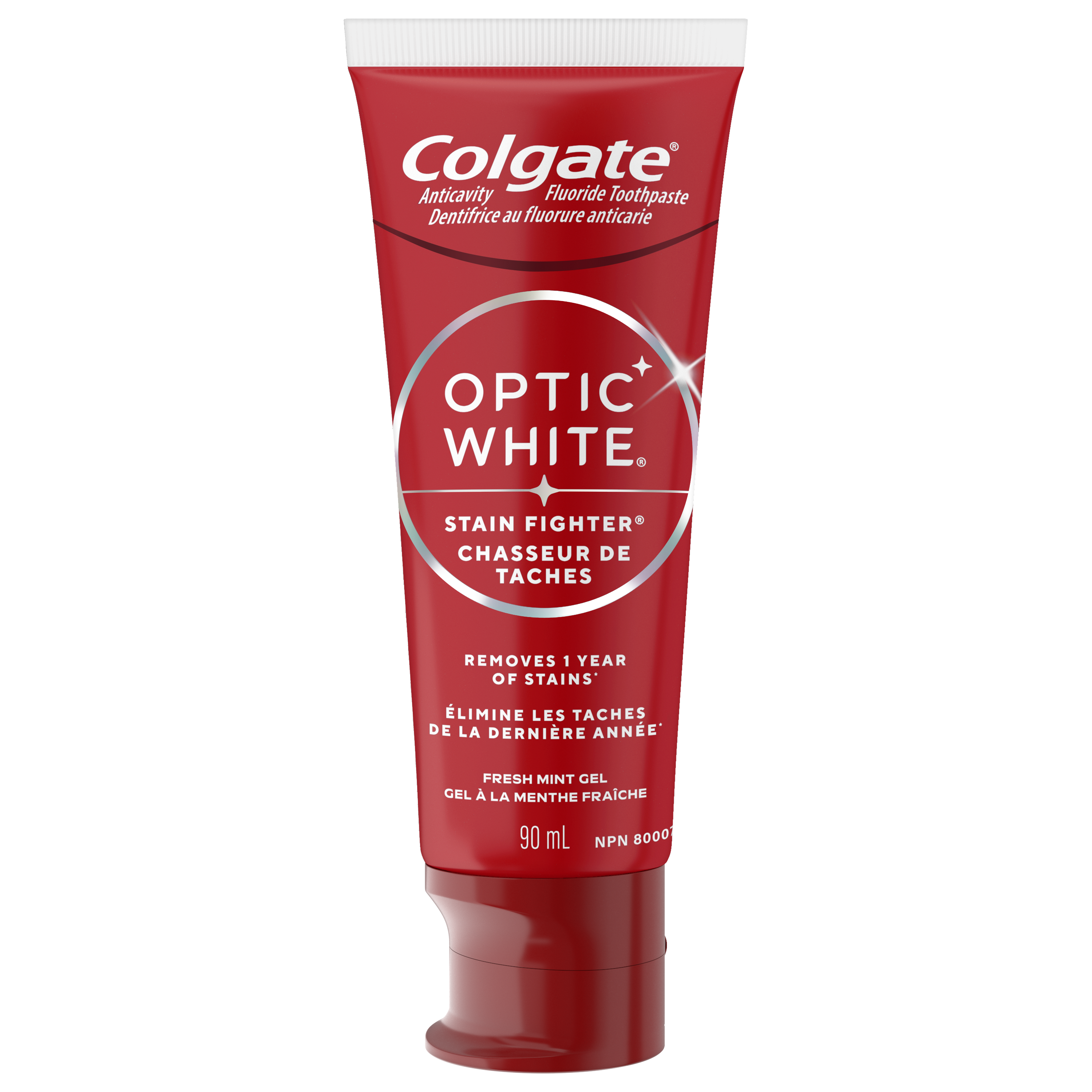 Colgate Optic White Stain Fighter Fresh Mint Teeth Whitening Toothpaste Gel, Anticavity Toothpaste Gel with Fluoride, 90 mL