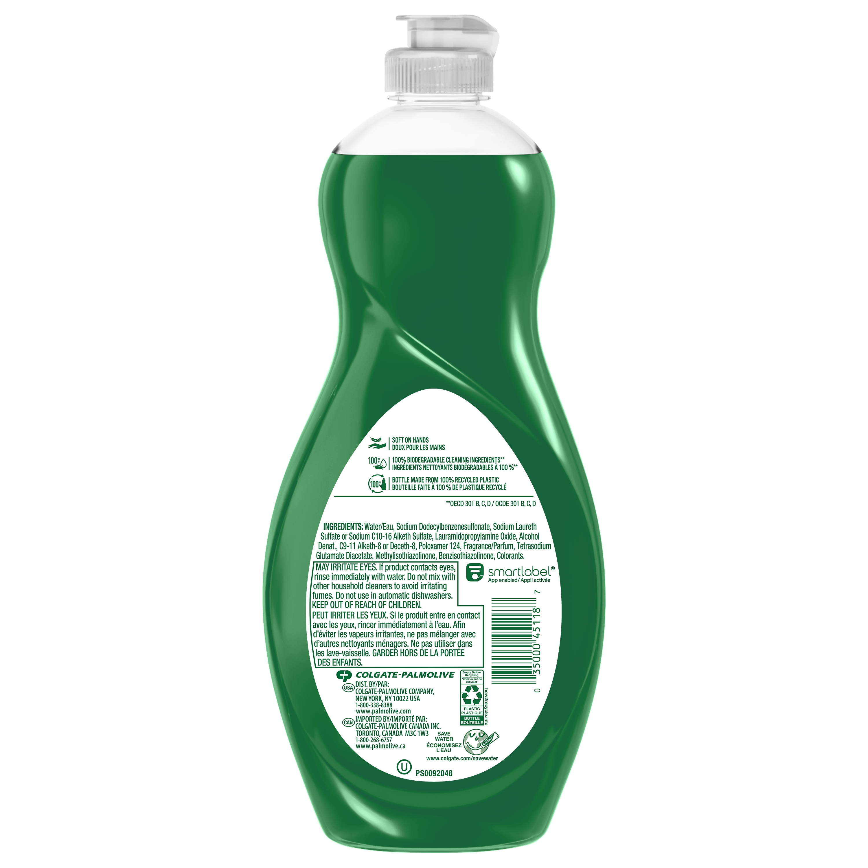 Product Title Palmolive Ultra Strength Liquid Dish Soap, Original Green - 591 mL SKU US04268A SKU eCommerce Name Palmolive Ultra Strength Liquid Dish Soap, Original Green - 591 mL Consumer Unit - GTIN 00035000451187 Case - GTIN 10035000451184 Product Category Home Care Product Sub Category Dish Hand Brand Palmolive Product Sub Brand Palmolive Ultra HD Consumer Unit Gross Weight 0.649 KG / 1.431 LB Consumer Unit Net Weight 0.610 KG / 1.345 LB Consumer Unit Length 50.000 MM / 1.969 IN Consumer Unit Width 105.000 MM / 4.134 IN Consumer Unit Height 244.000 MM / 9.606 IN Consumer Unit Volume 1.331 C8 / 0.047 CF Product Title Palmolive Ultra Strength Liquid Dish Soap, Original Green - 591 mL eCommerce Copy Palmolive Ultra Strength liquid dish soap is the original grease fighter you know and trust. Our signature green formula instantly cuts through grease, and works in 10 different ways to fight grease in your kitchen and beyond. eCommerce Copy- Long Description The OG: Original Green Palmolive.