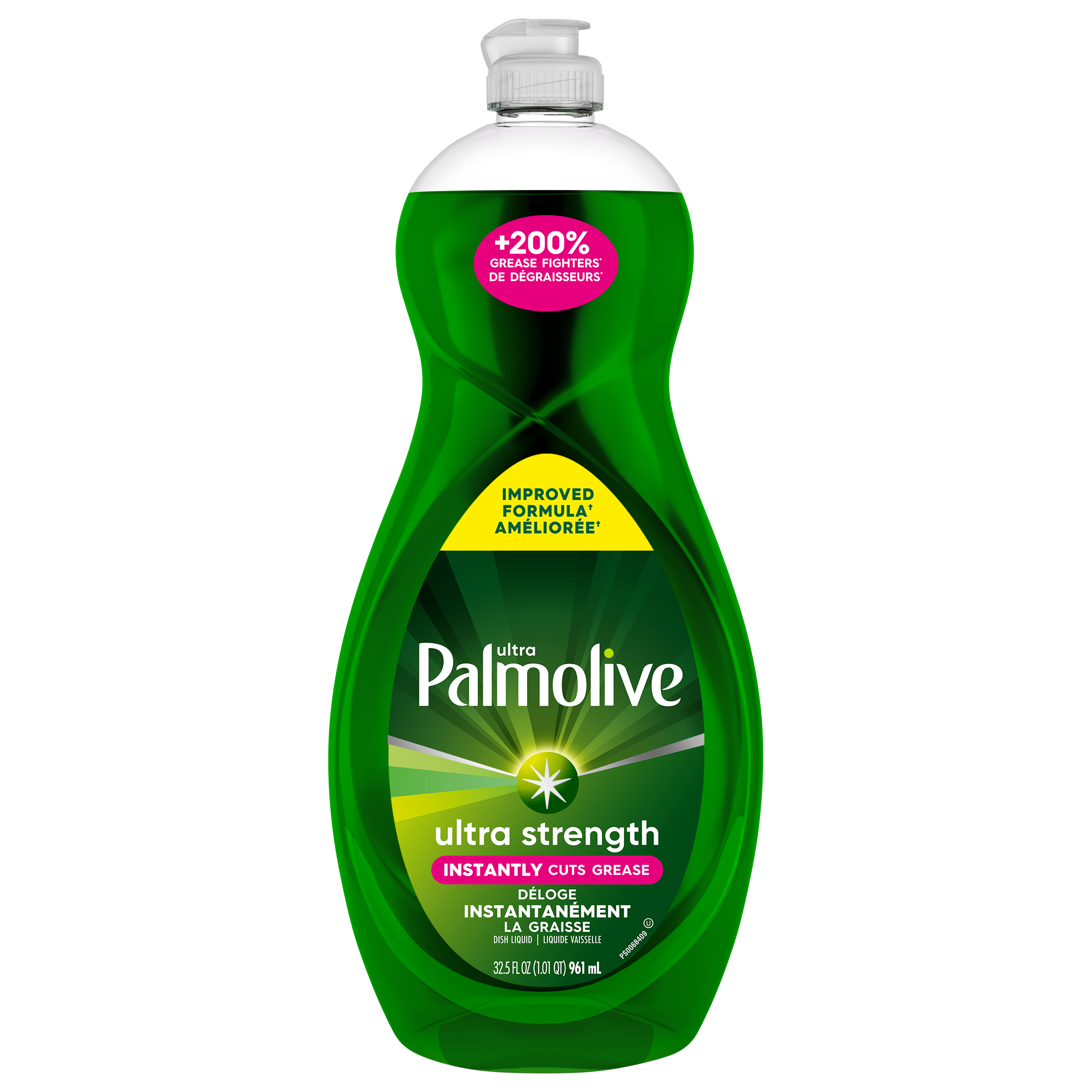 Product Title Palmolive Ultra Strength Liquid Dish Soap, Original Green - 961 mL SKU US04282A SKU eCommerce Name Palmolive Ultra Strength Liquid Dish Soap, Original Green - 961 mL Consumer Unit - GTIN 00035000450937 Case - GTIN 10035000450934 Product Category Home Care Product Sub Category Dish Hand Brand Palmolive Product Sub Brand Palmolive Ultra HD Consumer Unit Gross Weight 1.045 KG / 2.304 LB Consumer Unit Net Weight 0.991 KG / 2.185 LB Consumer Unit Length 64.000 MM / 2.520 IN Consumer Unit Width 111.000 MM / 4.370 IN Consumer Unit Height 272.000 MM / 10.709 IN Consumer Unit Volume 2.010 C8 / 0.071 CF Product Title Palmolive Ultra Strength Liquid Dish Soap, Original Green - 961 mL eCommerce Copy Palmolive Ultra Strength liquid dish soap is the original grease fighter you know and trust. Our signature green formula instantly cuts through grease, and works in 10 different ways to fight grease in your kitchen and beyond. eCommerce Copy- Long Description The OG: Original Green Palmolive.
