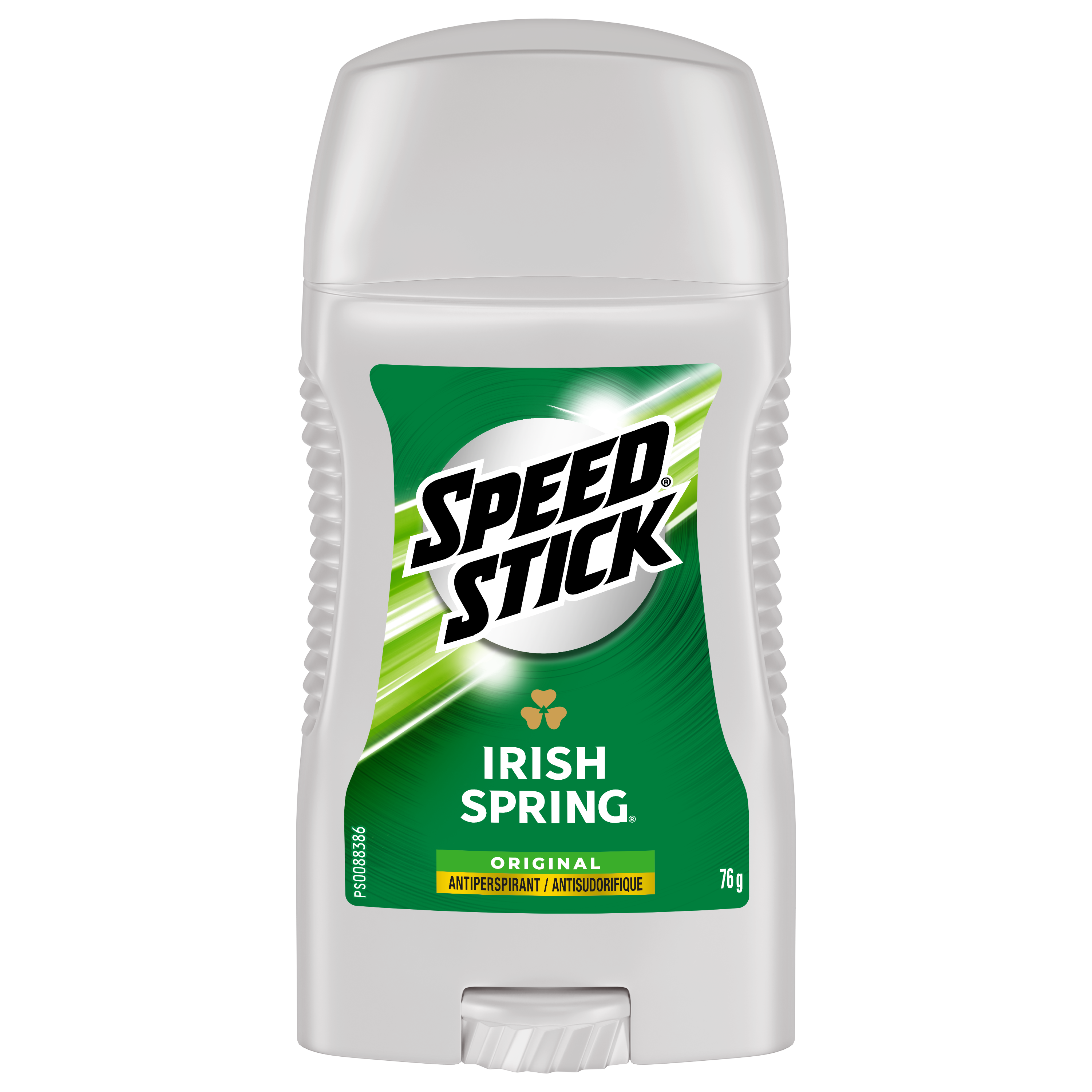 Product Title Speed Stick Antiperspirant Deodorant for Men, 72 HR Sweat & Odor Protection, Irish Spring Scent, 76 g Stick SKU US04304A SKU eCommerce Name Speed Stick Antiperspirant Deodorant for Men, Irish Spring Scent, 76 g Consumer Unit - GTIN 00058000000230 Case - GTIN 10058000140186 Product Category Personal Care Product Sub Category AP > Deo Brand Speed Stick Product Sub Brand Mennen Speed Stick AP/Deo Consumer Unit Gross Weight 0.113 KG / 0.249 LB Consumer Unit Net Weight 0.076 KG / 0.168 LB Consumer Unit Length 32.000 MM / 1.260 IN Consumer Unit Width 69.000 MM / 2.717 IN Consumer Unit Height 144.000 MM / 5.669 IN Consumer Unit Volume 0.311 C8 / 0.011 CF Product Title Speed Stick Antiperspirant Deodorant for Men, 72 HR Sweat & Odor Protection, Irish Spring Scent, 76 g Stick Product Description Speed Stick Antiperspirant Deodorant features an Irish Spring Scent that ignites your day. Powered by long‑lasting antiperspirant protection, this solid stick delivers 72 hour sweat and odor protection, so you stay fresh, dry, and confident from your morning to night. Engineered for comfort and control, the unique comfort guard applicator delivers a smooth, precise glide and even coverage every time. Whether you’re conquering the office, hitting the gym, or heading out after hours, Speed Stick keeps you covered with premium performance you can rely on. Elevate your grooming routine with antiperspirant deodorant protection that helps you feel confident in any situation—clean, dry, and ready to move with Speed Stick Deodorant for Men. eCommerce Copy- Long Description Speed Stick Antiperspirant Deodorant features an Irish Spring Scent that ignites your day. Powered by long‑lasting antiperspirant protection, this solid stick delivers 72 hour sweat and odor protection, so you stay fresh, dry, and confident from your morning to night. Engineered for comfort and control, the unique comfort guard applicator delivers a smooth, precise glide and even coverage every time. Whether you’re conquering the office, hitting the gym, or heading out after hours, Speed Stick keeps you covered with premium performance you can rely on. Elevate your grooming routine with antiperspirant deodorant protection that helps you feel confident in any situation—clean, dry, and ready to move with Speed Stick Deodorant for Men. Bullet 1 Includes one 76 g stick of Speed Stick Antiperspirant Deodorant For Men, Irish Spring Scent Bullet 2 Our underarm deodorant introduces an Irish Spring Scent with its signature clean fragrance to infuse your day with freshness Bullet 3 Powered by long‑lasting antiperspirant protection, this solid stick delivers 72 hour sweat and odor protection, so you stay fresh, dry, and confident Bullet 4 This men's antiperspirant includes a unique comfort guard applicator, ensuring a smooth application process Bullet 5 Reliable performance for gym sessions, busy workdays, and nights out—designed for men and ideal for active lifestyles Bullet 6 Elevate your grooming routine with antiperspirant deodorant protection that helps you feel confident in any situation with Speed Stick Deodorant for Men Keywords (eCommerce) Antiperspirant, antiperspirant deodorant, underarm antiperspirant, odor fighting, underarm antiperspirant for men, deodorant, stick antiperspirant, irish spring OS Amazon Product Title Speed Stick Antiperspirant Deodorant for Men, 72 HR Sweat & Odor Protection, Irish Spring Scent, 76 g Stick OS Amazon Product Description Speed Stick Antiperspirant Deodorant features an Irish Spring Scent that ignites your day. Powered by long‑lasting antiperspirant protection, this solid stick delivers 72 hour sweat and odor protection, so you stay fresh, dry, and confident from your morning to night. Engineered for comfort and control, the unique comfort guard applicator delivers a smooth, precise glide and even coverage every time. Whether you’re conquering the office, hitting the gym, or heading out after hours, Speed Stick keeps you covered with premium performance you can rely on. Elevate your grooming routine with antiperspirant deodorant protection that helps you feel confident in any situation—clean, dry, and ready to move with Speed Stick Deodorant for Men. OS Amazon Bullet 1 WHAT'S INCLUDED: One 76 g stick of Speed Stick Antiperspirant Deodorant For Men, Irish Spring Scent OS Amazon Bullet 2 FRAGRANCE & PROTECTION: Our underarm deodorant introduces an Irish Spring Scent with its signature clean fragrance to infuse your day with freshness OS Amazon Bullet 3 72 HR PROTECTION: Powered by long‑lasting antiperspirant protection, this solid stick delivers 72 hour sweat and odor protection, so you stay fresh, dry, and confident from your morning to night OS Amazon Bullet 4 SMOOTH APPLICATION: This men's antiperspirant includes a unique comfort guard applicator, ensuring a smooth application process, allowing you to glide through your grooming routine with ease OS Amazon Bullet 5 EVERYDAY READY: Reliable performance for gym sessions, busy workdays, and nights out—designed for men and ideal for active lifestyles OS Amazon On Page Keywords Antiperspirant, antiperspirant deodorant, underarm antiperspirant, odor fighting, underarm antiperspirant for men, deodorant, stick antiperspirant, irish spring OS Walmart Product Title Speed Stick Antiperspirant Deodorant for Men, Irish Spring Scent, 76 g OS Walmart Product Description Speed Stick Antiperspirant Deodorant features an Irish Spring Scent that ignites your day. Powered by long‑lasting antiperspirant protection, this solid stick delivers 72 hour sweat and odor protection, so you stay fresh, dry, and confident from your morning to night. Engineered for comfort and control, the unique comfort guard applicator delivers a smooth, precise glide and even coverage every time. Whether you’re conquering the office, hitting the gym, or heading out after hours, Speed Stick keeps you covered with premium performance you can rely on. Elevate your g