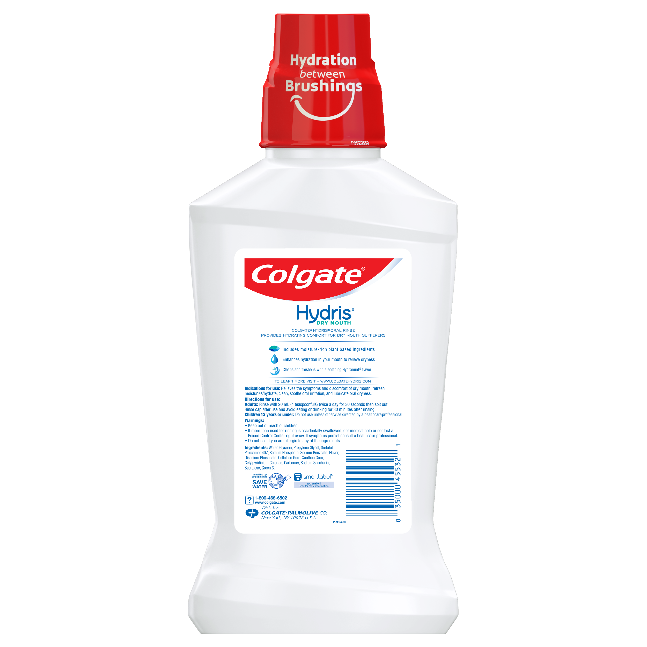 Product Title Colgate® HydrisTM Dry Mouth Mouthwash, Mint - 500 mL SKU US04726A Consumer Unit - GTIN 00035000455321 Case - GTIN 10035000455328 Product Category Oral Care Product Sub Category Mouthwash Brand Colgate Product Sub Brand Colgate Hydris MW Consumer Unit Gross Weight 0.571 KG / 1.259 LB Consumer Unit Net Weight 0.530 KG / 1.169 LB Consumer Unit Length 51.000 MM / 2.008 IN Consumer Unit Width 98.000 MM / 3.858 IN Consumer Unit Height 222.000 MM / 8.740 IN Consumer Unit Volume 1.104 C8 / 0.039 CF Product Title Colgate® HydrisTM Dry Mouth Mouthwash, Mint - 500 mL Walmart Bullet 1 Relieves Dry Mouth Walmart Bullet 2 Cleans and Freshens Bad Breath Walmart Bullet 3 Up to 4 Hours of Lasting Comfort Walmart Bullet 4 Alcohol Free Mouthwash, No Burn Walmart Bullet 5 Soothing Hydramint Flavor