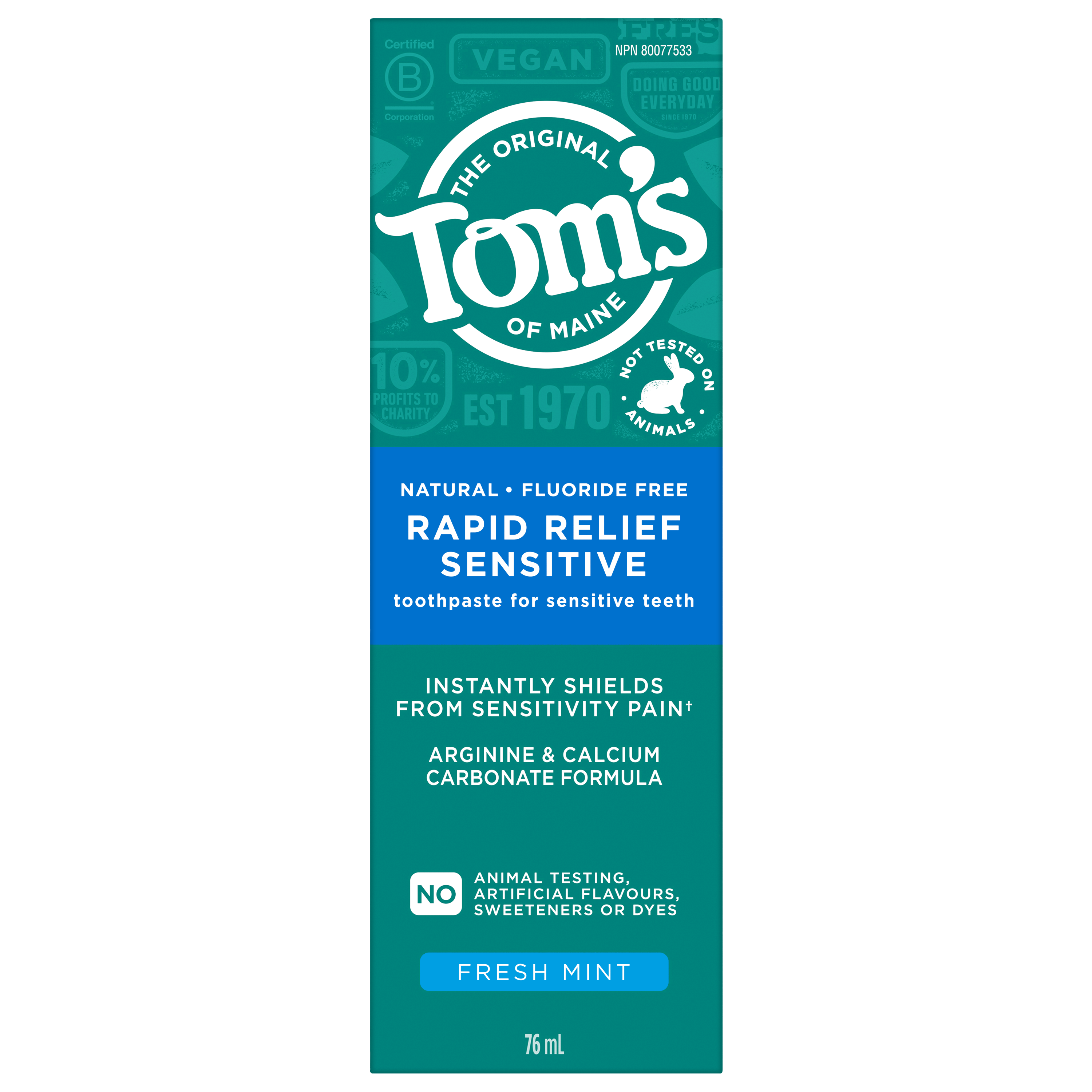 Tom's of Maine Fresh Mint Rapid Relief Sensitive Natural Paste, Fresh Mint, 76 mL