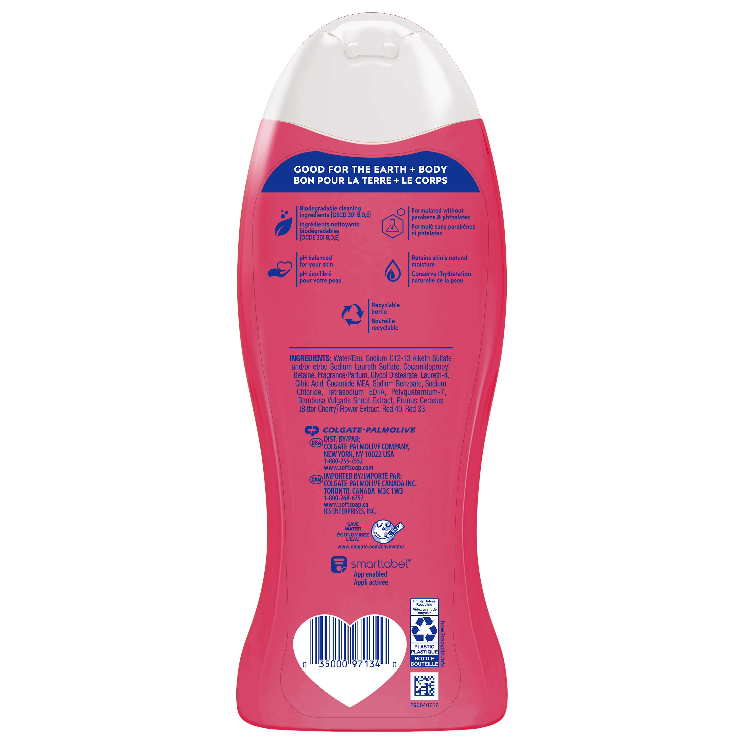 Product Title Softsoap Body Fiji Nights Body Wash, Moisturizing Body Wash, 946 mL SKU US06398A SKU eCommerce Name Softsoap Body Fiji Nights Body Wash, Moisturizing Body Wash, 946 mL Consumer Unit - GTIN 00035000971340 Case - GTIN 10035000971347 Product Category Personal Care Product Sub Category Body Wash Brand Softsoap Product Sub Brand Softsoap BW Consumer Unit Gross Weight 0.640 KG / 1.411 LB Consumer Unit Net Weight 0.603 KG / 1.330 LB Consumer Unit Length 54.000 MM / 2.126 IN Consumer Unit Width 91.000 MM / 3.583 IN Consumer Unit Height 240.000 MM / 9.449 IN Consumer Unit Volume 1.161 C8 / 0.041 CF Product Title Softsoap Body Fiji Nights Body Wash, Moisturizing Body Wash, 946 mL eCommerce Copy- Long Description Softsoap Body Fiji Nights Body Wash, 946 mL Softsoap Body Fiji Nights has red berries and floral notes of sunset jasmine and hibiscus scent wrapped in warm vanilla scent which will transport you to paradise. This moisturizing body wash retains skin’s moisture and is dermatologically tested and pH balanced for your skin. Feel the joy of clean with Softsoap Body! Feel Good About Your Body Wash This body wash formula retains skin’s natural moisture and is made with biodegradable cleaning ingredients. Plus, this body wash is formulated without parabens and phthalates, so you can feel good about your body wash. Feel the Joy of Clean Confidently wash with Softsoap Body while enjoying fragrant scents and fun labels that will bring you joy. For everyone, every mood, and every shower, Softsoap body wash is designed to make you joyfully clean. Softsoap Body Fiji Nights moisturizing body wash is the perfect way to add a moment of joy to your life. At Softsoap, we believe that the little moments throughout your day should be fun! With delightful bubbles and fragrant scents, every trip to the sink and every shower leaves you feeling uplifted. Enjoy those small moments of joy and get brilliantly clean with Softsoap liquid hand soaps and body washes—now, you’re ready to take on the world! OS Amazon On Page Keywords aloe body wash, aloe vera body wash, mint body wash, hydrating body wash, moisturizing body wash, soothing body wash, sensitive body wash, body wash for sensitive skin, gender neutral body wash, organic body wash, men's shower gel, women's shower gel, coconut body wash, scented body wash, citrus body wash, antiperspirant body wash, antibacterial body wash, body wash for dry skin, natural body wash, body wash for men, men's body wash OS Walmart On Page Keywords aloe body wash, aloe vera body wash, mint body wash, hydrating body wash, moisturizing body wash, soothing body wash, sensitive body wash, body wash for sensitive skin, gender neutral body wash, organic body wash, men's shower gel, women's shower gel, coconut body wash, scented body wash, citrus body wash, antiperspirant body wash, antibacterial body wash, body wash for dry skin, natural body wash, body wash for men, men's body wash Walmart Bullet 1 One 20 oz bottle of Softsoap Fiji Nights Floral Moisturizing Body Wash for Dry Skin, Dry Skin Body Wash with Biodegradable Cleaning Ingredients Walmart Bullet 2 Fiji Nights Softsoap moisturizing body wash contains a red berries and hibiscus scent with notes of sunset jasmine and warm vanilla Walmart Bullet 3 Hydrating body wash retains the skin’s natural moisture Walmart Bullet 4 This soothing body wash for dry skin is the perfect way to add a moment of joy to your night Walmart Bullet 5 Softsoap liquid body wash is made with biodegradable cleansing ingredients Walmart Bullet 6 Softsoap body wash is pH balanced for your skin Walmart Bullet 7 Paraben free body wash is also formulated without phthalates Walmart Bullet 8 Dry skin body wash is dermatologically tested Walmart Bullet 9 Suitable for all ages and all skin types.