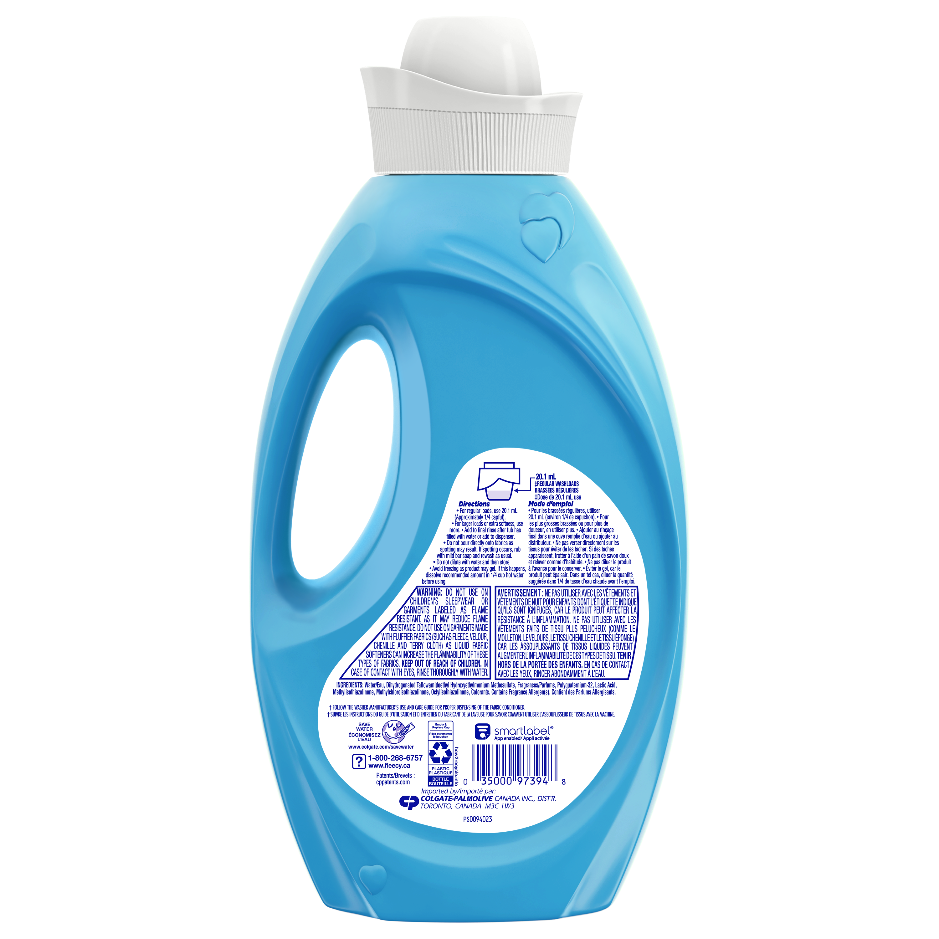 Product Title Fleecy Liquid Fabric Softener, Fresh Air, 57 Loads, 1.36 L SKU US06543A SKU eCommerce Name Fleecy Liquid Fabric Softener, Fresh Air, 57 Loads, 1.36 L Consumer Unit - GTIN 00035000973948 Case - GTIN 10035000973945 Product Category Home Care Product Sub Category FC Liquids Brand Fleecy Product Sub Brand Fleecy Liq FC Consumer Unit Gross Weight 1.484 KG / 3.272 LB Consumer Unit Net Weight 1.360 KG / 2.999 LB Consumer Unit Length 75.000 MM / 2.953 IN Consumer Unit Width 150.000 MM / 5.906 IN Consumer Unit Height 304.000 MM / 11.969 IN Consumer Unit Volume 3.420 C8 / 0.121 CF Product Title Fleecy Liquid Fabric Softener, Fresh Air, 57 Loads, 1.36 L Product Description Experience long-lasting freshness with Fleecy Concentrated Fabric Softener in Fresh Air scent. this compact formula offers irresistible softening and freshness for your clothes and linens. Enjoy more wash loads in the same convenient 1.36 L size—now up to 67 loads*. The concentrated formula is designed for superior fabric care so you can feel good about every wash. It is HE compatible** and suitable for use in both high-efficiency and standard washing machines. For regular loads, use 20.1 mL (approximately ¼ capful). For larger loads or extra softness, use more. *Compared to the previous formula **Follow the washer manufacturer’s use and care guide for proper dispensing of the fabric conditioner eCommerce Copy- Long Description There's nothing like the smell of fresh clean clothes. Now you can have that fresh scent every day with Fleecy Fresh Air. Fleecy Fresh Air has that fresh outdoor fragrance your family loves with all the softness and static control you trust. Bullet 1 One 1.36 L bottle of Fleecy Concentrated Fabric Softener, Fresh Air scent Bullet 2 Delivers long-lasting freshness with its uplifting Fresh Air scent Bullet 3 Features a concentrated formula that provides up to 67 wash loads* in each 1.36 L bottle Bullet 4 HE compatible** and suitable for use in both high-efficiency and standard washing machines Bullet 5 This liquid fabric conditioner leaves fabrics irresistibly soft, silky, and fluffy Bullet 6 Simply use 20.1 mL (about ¼ capful) per regular load and follow washer manufacturer’s instructions Keywords (eCommerce) fleecy, flecy, fleecie, fleece, laundry, loads, softner, laundry, best, softness, freshness, best fragrance, softening, laundry, laundry detergent, laundry supplies, bedding, aroma, value, softens, bed sheets, towels, great smell, soothing, long lasting, sensitive, skin, washer, clothes, flowery OS Amazon Product Title Fleecy Concentrated Fabric Softener, Liquid Fabric Conditioner, Fresh Air Scent, 1.36 L OS Amazon Product Description Experience long-lasting freshness with Fleecy Concentrated Fabric Softener in Fresh Air scent. this compact formula offers irresistible softening and freshness for your clothes and linens. Enjoy more wash loads in the same convenient 1.36 L size—now up to 67 loads*. The concentrated formula is designed for superior fabric care so you can feel good about every wash. It is HE compatible** and suitable for use in both high-efficiency and standard washing machines. For regular loads, use 20.1 mL (approximately ¼ capful). For larger loads or extra softness, use more. *Compared to the previous formula **Follow the washer manufacturer’s use and care guide for proper dispensing of the fabric conditioner OS Amazon Bullet 1 One 1.36 L bottle of Fleecy Concentrated Fabric Softener, Fresh Air scent OS Amazon Bullet 2 Delivers long-lasting freshness with its uplifting Fresh Air scent OS Amazon Bullet 3 Features a concentrated formula that provides up to 67 wash loads* in each 1.36 L bottle OS Amazon Bullet 4 HE compatible** and suitable for use in both high-efficiency and standard washing machines OS Amazon Bullet 5 This liquid fabric conditioner leaves fabrics irresistibly soft, silky, and fluffy OS Walmart Product Title Fleecy Concentrated Fabric Softener, Fresh Air Scent, 1.36 L OS Walmart Product Description Experience long-lasting freshness with Fleecy Concentrated Fabric Softener in Fresh Air scent. this compact formula offers irresistible softening and freshness for your clothes and linens. Enjoy more wash loads in the same convenient 1.36 L size—now up to 67 loads*. The concentrated formula is designed for superior fabric care so you can feel good about every wash. It is HE compatible** and suitable for use in both high-efficiency and standard washing machines. For regular loads, use 20.1 mL (approximately ¼ capful). For larger loads or extra softness, use more. *Compared to the previous formula **Follow the washer manufacturer’s use and care guide for proper dispensing of the fabric conditioner OS Walmart Bullet 1 One 1.36 L bottle of Fleecy Concentrated Fabric Softener, Fresh Air scent OS Walmart Bullet 2 Delivers long-lasting freshness with its uplifting Fresh Air scent OS Walmart Bullet 3 Features a concentrated formula that provides up to 67 wash loads* in each 1.36 L bottle OS Walmart Bullet 4 HE compatible** and suitable for use in both high-efficiency and standard washing machines OS Walmart Bullet 5 This liquid fabric conditioner leaves fabrics irresistibly soft, silky, and fluffy OS Walmart Bullet 6 Simply use 20.1 mL (about ¼ capful) per regular load and follow washer manufacturer’s instructions Walmart Bullet 1 Formulated with less water Walmart Bullet 2 14 days of Freshness Walmart Bullet 3 27% more softening ingredients* Walmart Bullet 4 with 3D softness technology to increase sulkiness, fluffiness and comfort Walmart Bullet 5 Use Fleecy® liquid and Fleecy®dryer sheets together for added freshness Walmart Bullet 6 Free From/0% Parabens & Phosphates Walmart Bullet 7 92% Biodegradable formula Walmart Bullet 8 Responsibly Made* OS Loblaws Product Title Concentrated Fabric Softener, Fresh Air Scent OS Loblaws Product Description Experience long-lasting freshness with Fleecy Concentrated Fabric Softener in Fresh Air scent. this com
