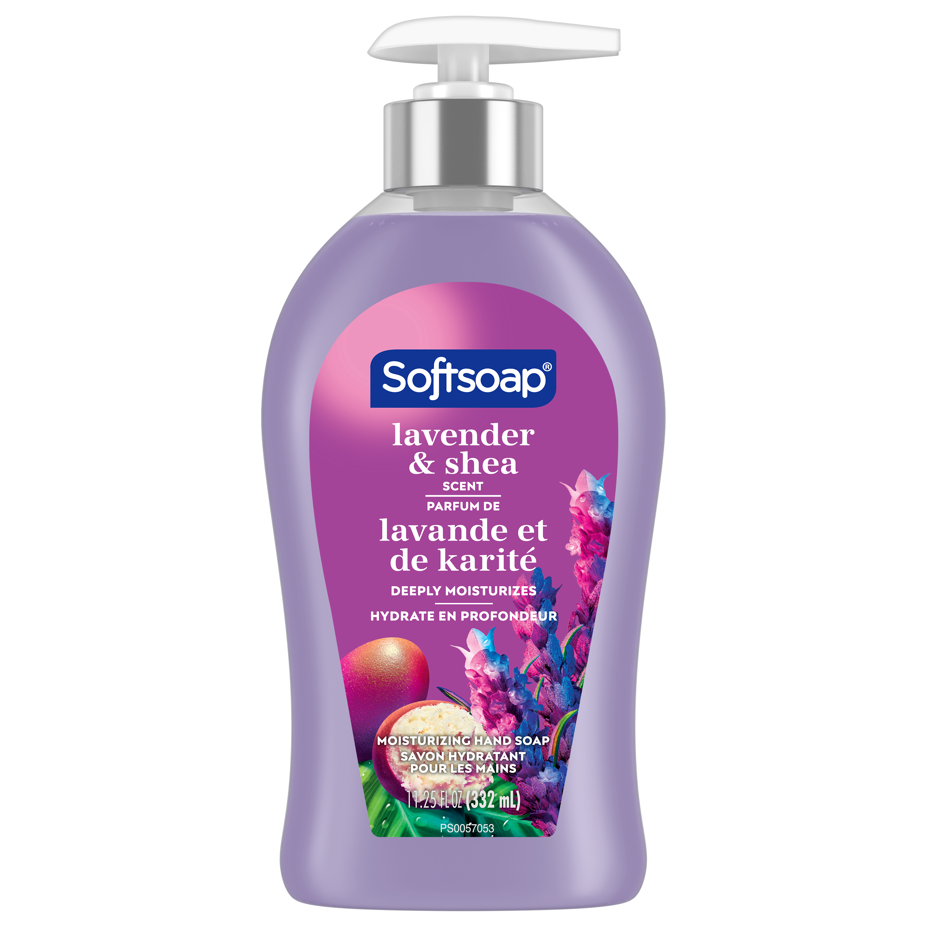 OS Loblaws Product Title Lavender & Shea Moisturizing Liquid Hand Soap OS Loblaws Product Description From the #1 liquid hand soap brand (1) comes a deeply moisturizing hand soap with a lavender and shea scent. With its beautiful bottle design and modern pump head, Softsoap's Lavender and Shea Moisturizing Liquid Hand Soap perfectly complements the elegance of your bathroom or kitchen sink. This fun pink hand soap with its sweet and floral scent will infuse joy into the smallest moments. Our dermatologist tested formula retains skin’s natural moisture and is formulated without parabens and phthalates. (1) Based in part on data reported by Nielsen through its Market Track Service for the Liquid Hand Soap Category for the 52 week period ending 15/02/2025, for the All Outlet market. Copyright © 2025 Nielsen. OS Loblaws Bullet 1 One 332 ml Bottle of Softsoap Lavender and Shea Moisturizing Liquid Hand Soap Pump - The #1 Liquid Hand Soap Brand (1) OS Loblaws Bullet 2 This fun pink hand soap with it's sweet and floral scent will infuse joy into the smallest moments OS Loblaws Bullet 3 With its beautiful bottle design and modern pump head, it perfectly complements the elegance of your bathroom or kitchen sink OS Loblaws Bullet 4 The creamy formula hydrates dry skin, leaving your hands feeling soft and smooth OS Loblaws Bullet 5 Elevate your senses while effectively washing away bacteria with this moisturizing hand soap