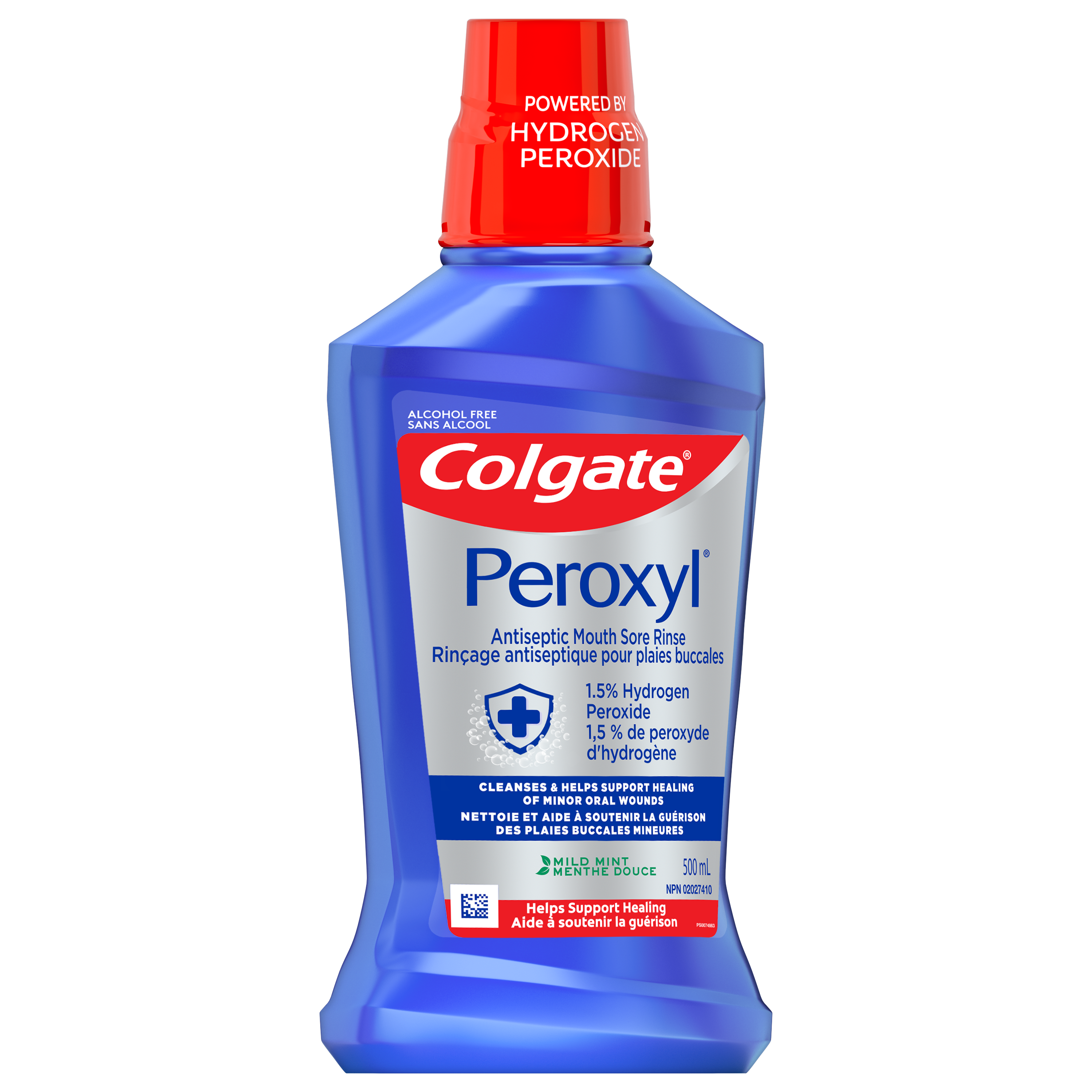 Product Title Colgate Peroxyl Antiseptic Mouthwash, Alcohol Free Mouth Sore Rinse, Mild Mint, 500 mL SKU US07392A SKU eCommerce Name Colgate Peroxyl Mouth Sore Rinse, Mild Mint - 500mL Consumer Unit - GTIN 00035000986740 Case - GTIN 10035000986747 Product Category Oral Care Product Sub Category Mouthwash Brand Colgate Product Sub Brand Colgate Peroxyl MW Consumer Unit Gross Weight 0.568 KG / 1.252 LB Consumer Unit Net Weight 0.525 KG / 1.158 LB Consumer Unit Length 50.000 MM / 1.969 IN Consumer Unit Width 97.000 MM / 3.819 IN Consumer Unit Height 224.000 MM / 8.819 IN Consumer Unit Volume 1.087 C8 / 0.038 CF Product Title Colgate Peroxyl Antiseptic Mouthwash, Alcohol Free Mouth Sore Rinse, Mild Mint, 500 mL Product Description Cleanse and help support the healing of minor oral wounds and minor gum inflammation from dental procedures or appliances with Colgate Peroxyl Antiseptic Mouth Sore Rinse. Designed for temporary use, this alcohol free* antiseptic oral rinse contains 1.5% hydrogen peroxide to help gently cleanse and foam away debris from minor oral wounds while helping promote the healing of canker sores, oral irritations, and mouth burns. With a Mild Mint flavour, this alcohol free mint mouth rinse is gentle enough to use up to 4x daily after meals and at bedtime for up to 7 days, or as directed by a dentist or physician. To use this hydrogen peroxide mouth rinse, rinse with half a capful (10 mL) for one minute and spit out. Colgate Peroxyl Antiseptic Mouth Sore Rinse cleanses and promotes the healing of minor oral wounds while helping leave your mouth clean and refreshed. *does not contain ethanol eCommerce Copy Colgate® Peroxyl® Antiseptic Mouth Sore Rinse cleanses and promotes healing of minor oral sores, irritation, and burns. eCommerce Copy- Long Description Colgate® Peroxyl® Antiseptic Mouth Sore Rinse cleanses and promotes healing of oral sores, minor gum irritation and burns resulting from minor dental procedures, dentures, orthodontic appliances, or accidental injury. This oral rinse contains 1.5% hydrogen peroxide to help reduce bacteria to prevent infection of minor oral wounds. Bullet 1 Includes one (1) 500 mL bottle of Colgate Peroxyl Mouth Sore Rinse, Alcohol Free* Antiseptic Mouth Oral Rinse in Mild Mint Bullet 2 Colgate Peroxyl Mouth Sore Rinse is specially designed to help cleanse minor oral wounds like canker sores, mouth irritations, and mouth burns Bullet 3 This antiseptic oral rinse with 1.5% hydrogen peroxide helps gently cleanse and foam away debris from minor oral wounds to promote healing Bullet 4 This mint mouthwash is gentle enough for use up to 4x daily after meals and at bedtime for up to 7 days, or as directed by a dentist or physician Bullet 5 To use this hydrogen peroxide mouth rinse, rinse with half a capful (10 mL) for one minute and spit out Bullet 6 Colgate Peroxyl Antiseptic Mouth Sore Rinse cleanses and promotes the healing of minor oral wounds while helping leave your mouth clean Keywords (eCommerce) alcohol free mouthwash,alcohol free mouthwash brands,alcohol free mouthwash brands,alcohol free mouthwashes,best alcohol free mouthwash,best mouthwash,best mouthwash for gums,best mouthwashes,brands of mouthwash,dental mouthwash,good mouthwash,gum health mouthwash,hydrogen peroxide mouthwash,mint mouthwash,most effective mouthwash,mouth rinse,mouth rinses,mouth wash,mouth washes,mouthwash,mouthwash alcohol free,mouthwash brands,mouthwash for gums,mouthwash no alcohol,mouthwash without alcohol,mouthwashes,mouthwashes without alcohol,no alcohol mouthwash,non alcohol mouthwash,non alcoholic mouthwash,non alcoholic mouthwash brands,non fluoride mouthwash,oral mouthwash,top mouthwash OS Amazon Product Title Colgate Peroxyl Antiseptic Mouthwash with 1.5% Hydrogen Peroxide, Alcohol Free Mouth Sore Rinse for Canker Sores and Minor Oral Irritations and Burns, Mild Mint, 500 mL Bottle OS Amazon Product Description Cleanse and help support the healing of minor oral wounds and minor gum inflammation from dental procedures or appliances with Colgate Peroxyl Antiseptic Mouth Sore Rinse. Designed for temporary use, this alcohol free* antiseptic oral rinse contains 1.5% hydrogen peroxide to help gently cleanse and foam away debris from minor oral wounds while helping promote the healing of canker sores, oral irritations, and mouth burns. With a Mild Mint flavour, this alcohol free mint mouth rinse is gentle enough to use up to 4x daily after meals and at bedtime for up to 7 days, or as directed by a dentist or physician. To use this hydrogen peroxide mouth rinse, rinse with half a capful (10 mL) for one minute and spit out. Colgate Peroxyl Antiseptic Mouth Sore Rinse cleanses and promotes the healing of minor oral wounds while helping leave your mouth clean and refreshed. *does not contain ethanol OS Amazon Bullet 1 WHAT’S INCLUDED: One (1) 500 mL bottle of Colgate Peroxyl Mouth Sore Rinse, Alcohol Free* Antiseptic Mouth Oral Rinse in Mild Mint OS Amazon Bullet 2 CLEANSES MINOR ORAL WOUNDS: Colgate Peroxyl Mouth Sore Rinse is specially designed to help cleanse minor oral wounds like canker sores, mouth irritations, and mouth burns OS Amazon Bullet 3 MADE WITH 1.5% HYDROGEN PEROXIDE: This antiseptic oral rinse with 1.5% hydrogen peroxide helps gently cleanse and foam away debris from minor oral wounds OS Amazon Bullet 4 ALCOHOL FREE MOUTH RINSE*: This alcohol free oral rinse is gentle enough for use up to 4x daily after meals and at bedtime for up to 7 days, or as directed by a dentist or physician OS Amazon Bullet 5 HOW TO USE: To use this hydrogen peroxide mouth rinse, rinse with half a capful (10 mL) for one minute and spit out OS Walmart Product Title Colgate Peroxyl Antiseptic Mouthwash, Alcohol Free Mouth Sore Rinse, Mild Mint, 500 mL OS Walmart Product Description Cleanse and help support the healing of minor oral wounds and minor gum inflammation from dental procedures or appliances with Colgate Peroxyl Antiseptic Mouth Sore Rinse. Designed for tempo