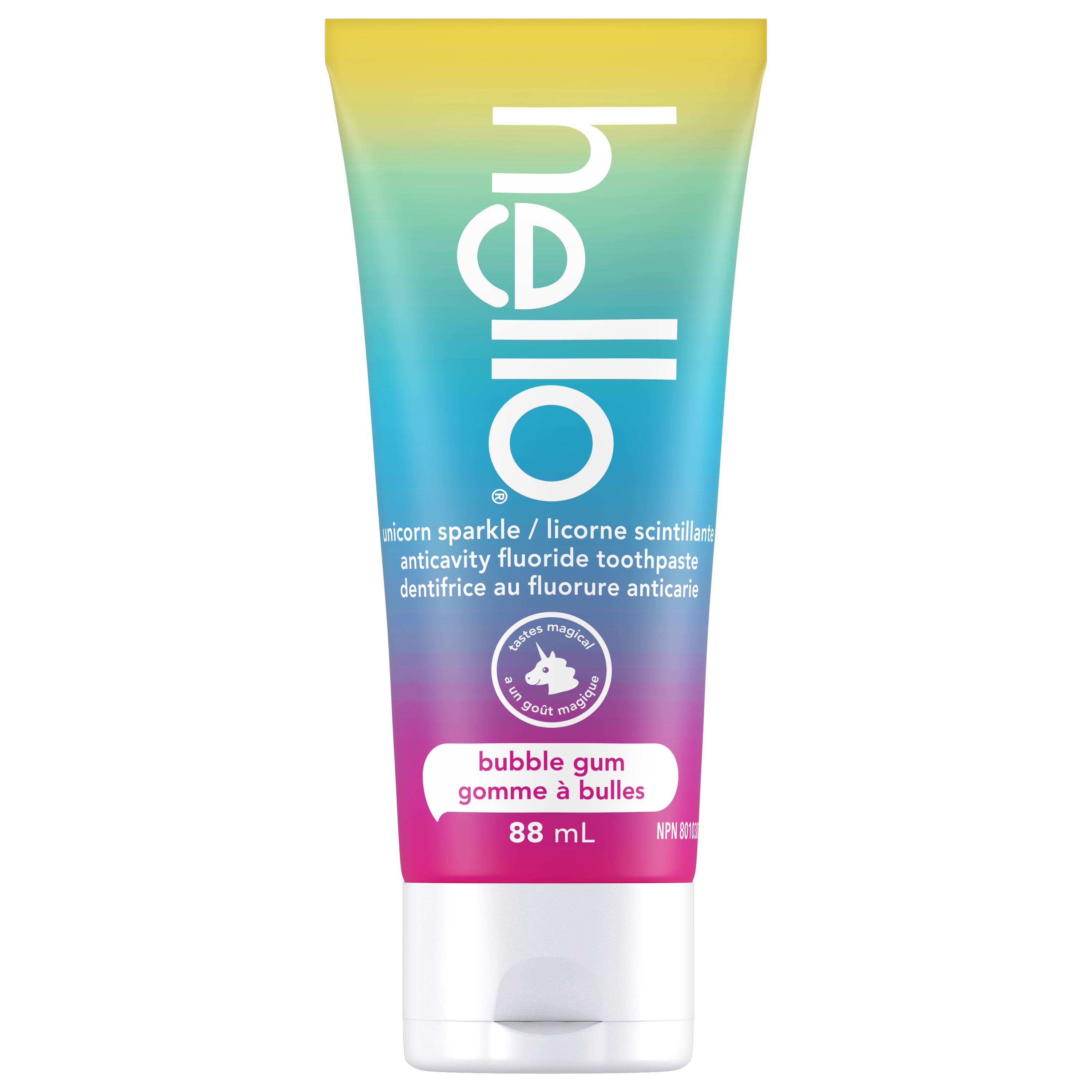 hello Unicorn Sparkle Kids Toothpaste with Fluoride, Bubble Gum Toothpaste, 88 mL Tube