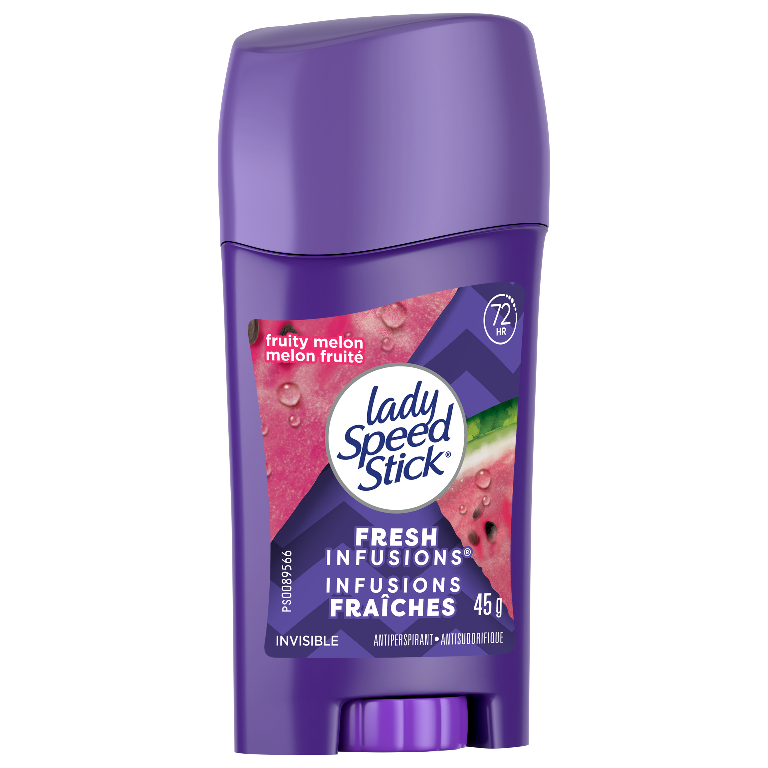 Déodorant antisudorifique Lady Speed Stick Fresh Infusions pour femmes, protection de 72 heures contre les odeurs et la transpiration, Invisible Dry, parfum Melon juteux, bâton de 45 g