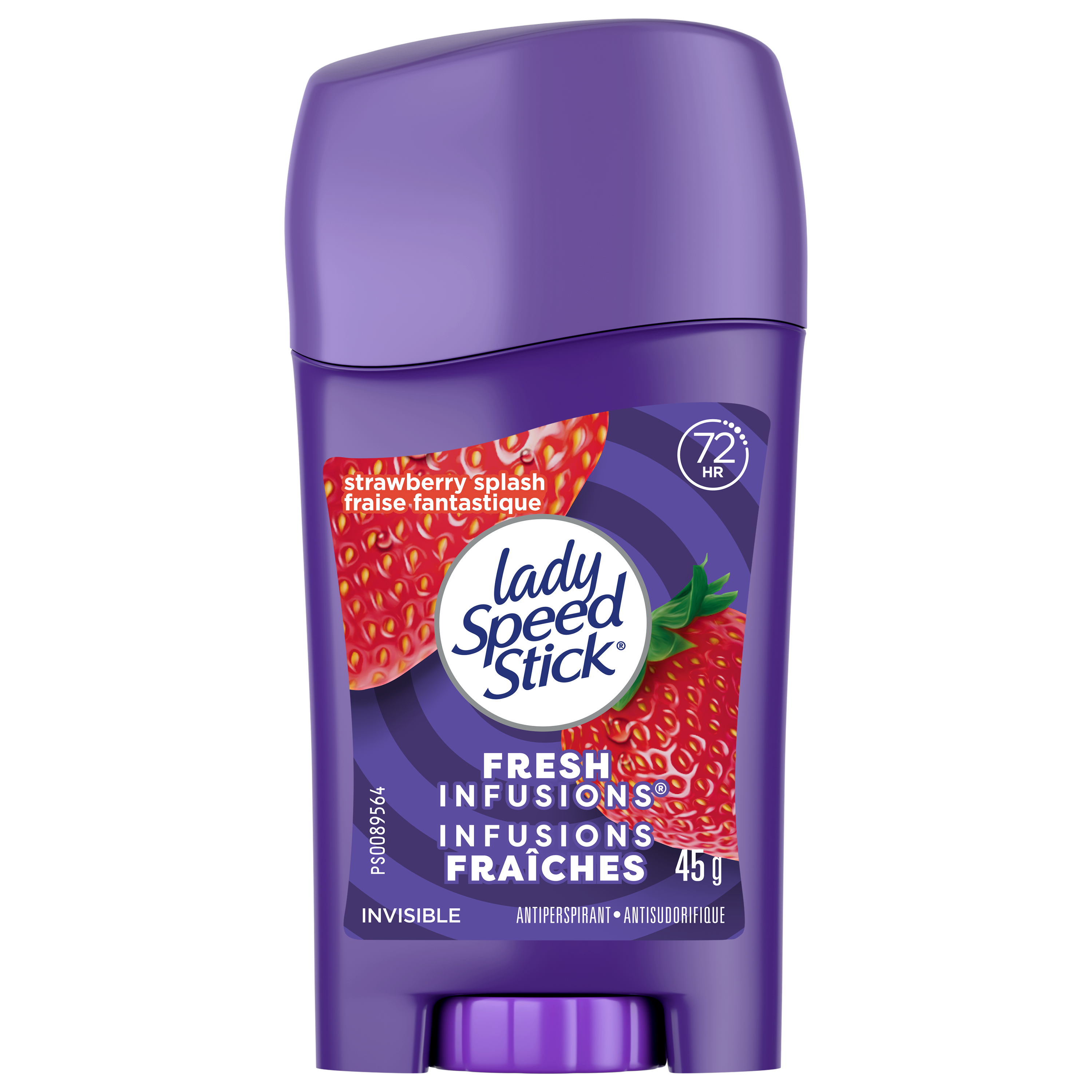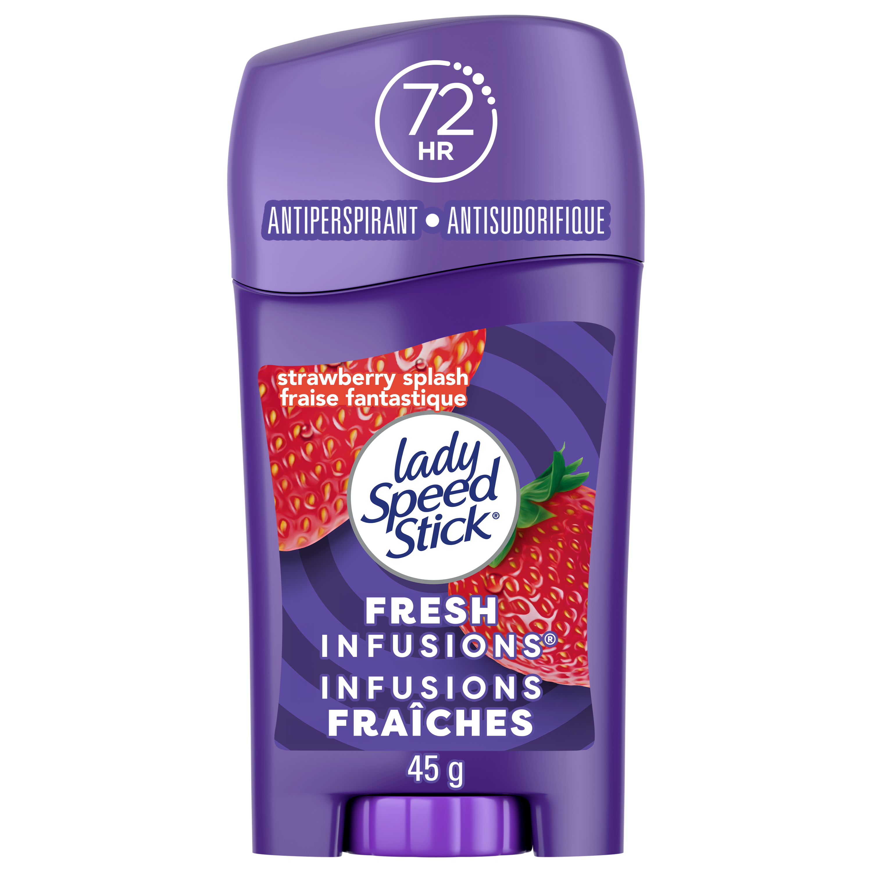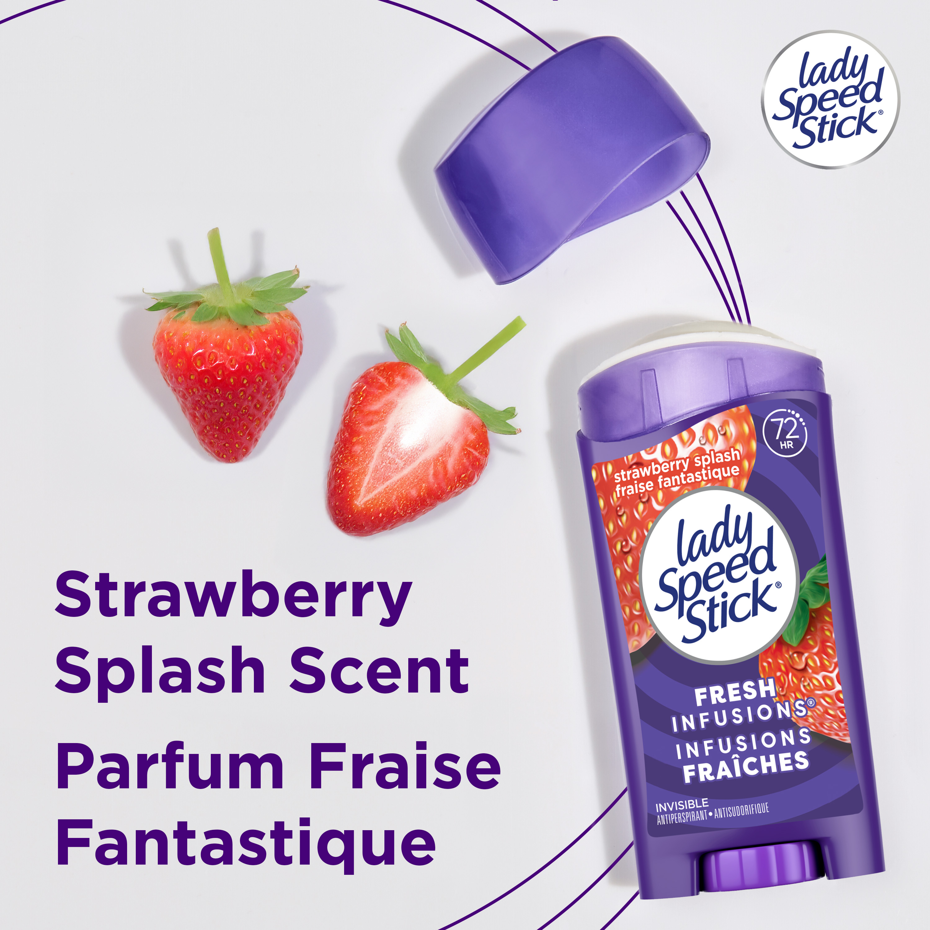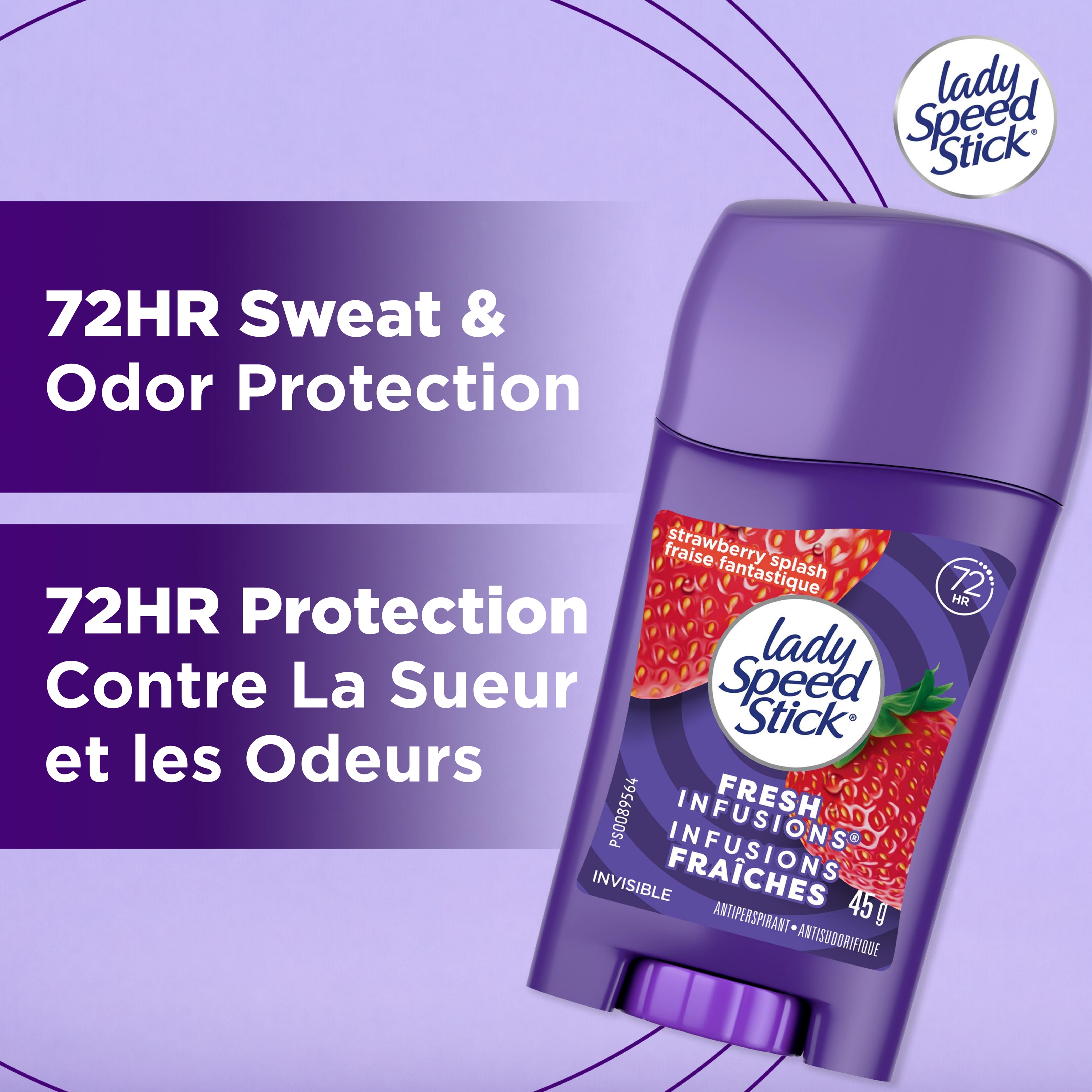 Déodorant antisudorifique Lady Speed Stick Fresh Infusions pour femmes, protection de 72 heures contre les odeurs et la transpiration, Invisible Dry, parfum Fraise fantastique, bâton de 45 g