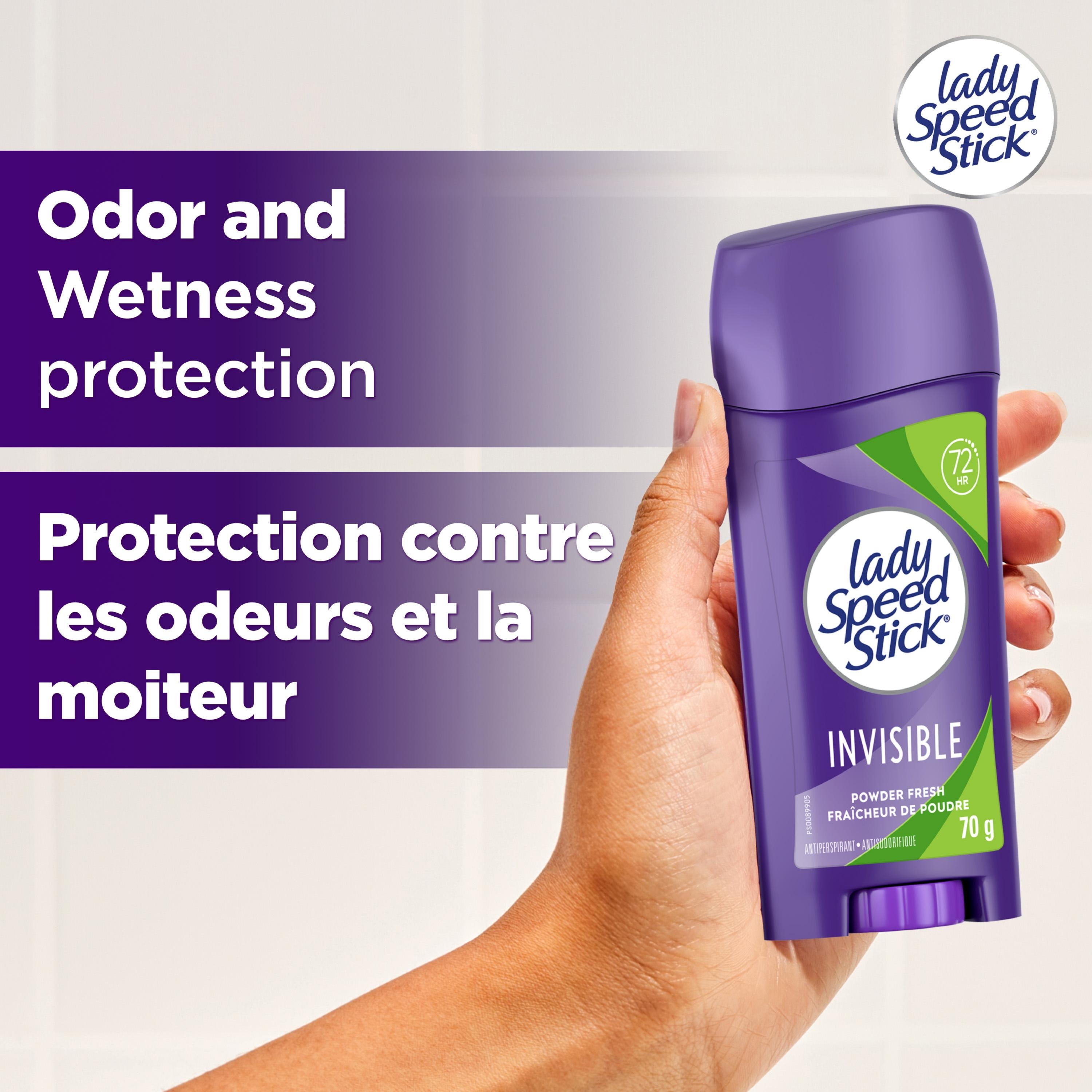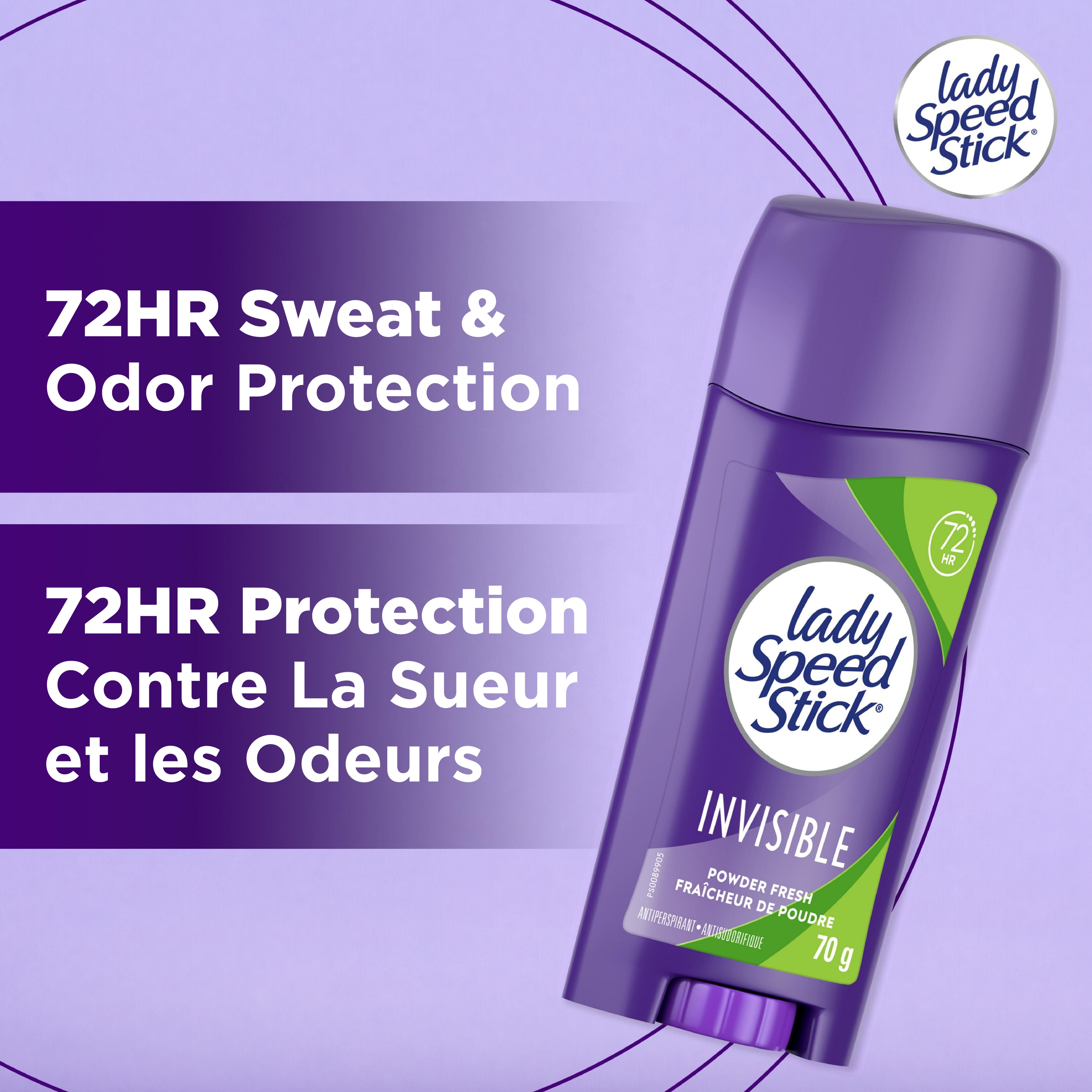 Déodorant antisudorifique Lady Speed Stick pour femmes, protection de 72 heures contre les odeurs et la transpiration, Invisible Dry, parfum Fraîcheur de poudre, bâton de 70 g