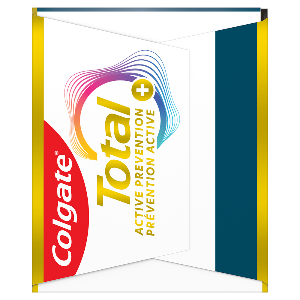 OS Walmart Bullet 1 Comprend un (1) tubes de 120 ml de dentifrice Colgate Total Prévention Active Plus Nettoyage en profondeur OS Walmart Bullet 2 Une formule de nettoyage active contenant pour aider à combattre la plaque entre les dents et dans les espaces difficiles à atteindre OS Walmart Bullet 3 Aide à combattre la cause première des problèmes que les caries, la gingivite, la plaque, l'érosion de l'émail, la sensibilité et le tartre OS Walmart Bullet 4 Ce paquet de dentifrice au fluorure développé par des experts est formulé avec davantage de fluorure pour protéger contre les caries OS Walmart Bullet 5 Aidez à prévenir les problèmes d'hygiène bucco-dentaire courants* avant qu'ils ne surviennent en utilisant Colgate Total Prévention Active Plus OS Walmart Bullet 6 Le nouveau Colgate Total combat la cause à l’origine des problèmes de santé buccodentaire courants comme la carie, la gingivite, la plaque, l'érosion de l'émail, la sensibilité et le tartre OS Walmart Bullet 7 Prévention proactive contre la carie, la sensibilité, la plaque, le tartre, la gingivite OS Loblaws Product Title Total prevention active plus dentifrice nettoyage en profondeur OS Loblaws Product Description Aidez à prévenir les problèmes d'hygiène bucco-dentaire courants* avant qu'ils ne surviennent avec le dentifrice Colgate Total Prévention Active Plus Nettoyage en profondeur. Ce dentifrice anticarie au fluorure utilise une formule nettoyante active contenant des microparticules pour aider à combattre la plaque entre les dents et dans les espaces difficiles à atteindre. Ce dentifrice au fluorure est également formulé avec davantage de fluorure pour protéger contre les caries. De plus, ce dentifrice anticarie combat la cause première des caries, de la gingivite, de la plaque, de l'érosion de l'émail, de la sensibilité et du tartre. Le dentifrice Colgate Total Prévention Active Plus Nettoyage en profondeur est cliniquement éprouvé pour aider à prévenir l'accumulation de plaque. Nettoyez en profondeur les zones difficiles à atteindre et rafraîchissez votre haleine avec ce paquet de dentifrice à la menthe pour un nettoyage en profondeur. *tels que les caries et la gingivite OS Loblaws Bullet 1 Comprend un (1) tube de 120 ml de dentifrice Colgate Total Prévention Active Plus Nettoyage en profondeur OS Loblaws Bullet 2 Une formule de nettoyage active contenant pour aider à combattre la plaque entre les dents et dans les espaces difficiles à atteindre OS Loblaws Bullet 3 Le nouveau Colgate Total combat la cause à l’origine des problèmes de santé buccodentaire courants comme la carie, la gingivite, la plaque, l'érosion de l'émail, la sensibilité et le tartre OS Loblaws Bullet 4 Prévention proactive contre la carie, la sensibilité, la plaque, le tartre, la gingivite OS Loblaws Bullet 5 Aidez à prévenir les problèmes d'hygiène bucco-dentaire courants* avant qu'ils ne surviennent en utilisant Colgate Total Prévention Active Plus
