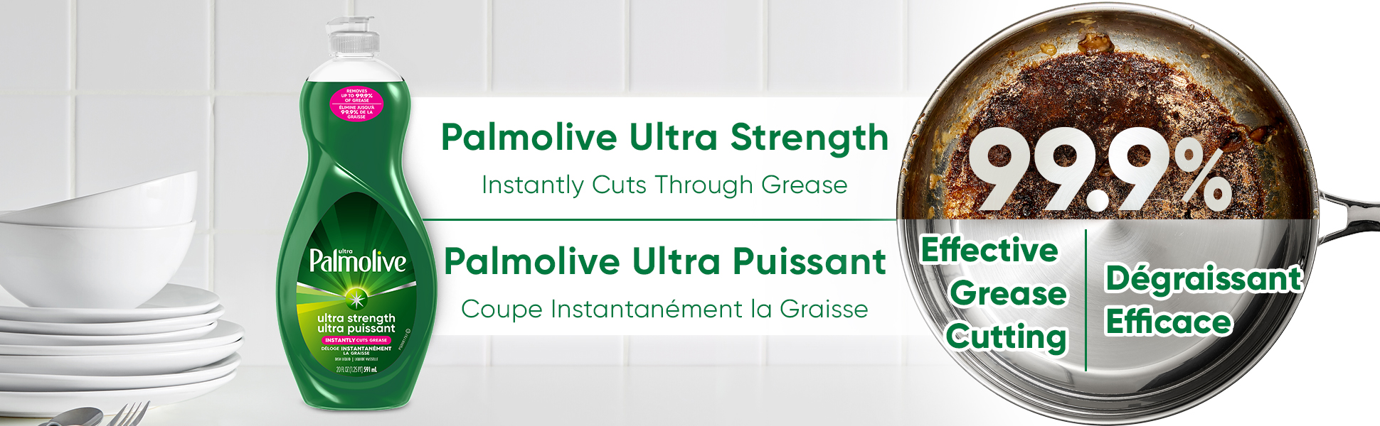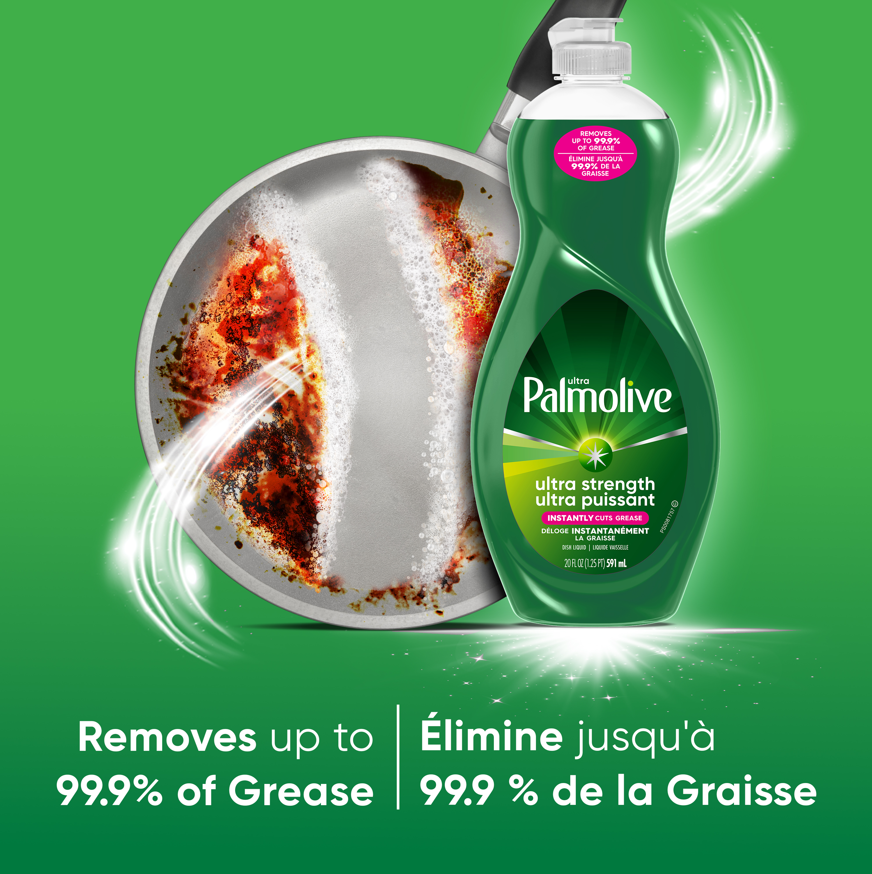 Le savon à vaisselle liquide concentré Palmolive Ultra Strength est le dégraisseur original que vous connaissez et auquel vous faites confiance depuis plus 50 ans. Notre formule principale verte déloge instantanément la graisse et fonctionne de 10 façons pour combattre la graisse dans votre cuisine et plus encore. Il est polyvalent : il s’attaque aux saletés les plus tenaces dans votre maison, des casseroles et poêles aux grilles de BBQ, en passant par les pneus, ainsi que la lessive. Il est puissant : même les aliments collés ne résistent pas à notre formule principale. Et bien qu’il soit dur sur la graisse, Palmolive Ultra est aussi doux pour la planète, puisqu’il contient des ingrédients nettoyants biodégradables à 100 %✝, 0 % de parabènes et de phosphates, et est offert dans une bouteille faite à 100 % de plastique recyclé post-consommation*. Découvrez la différence de notre formule principale : aujourd’hui, demain et pour les 50 prochaines années.