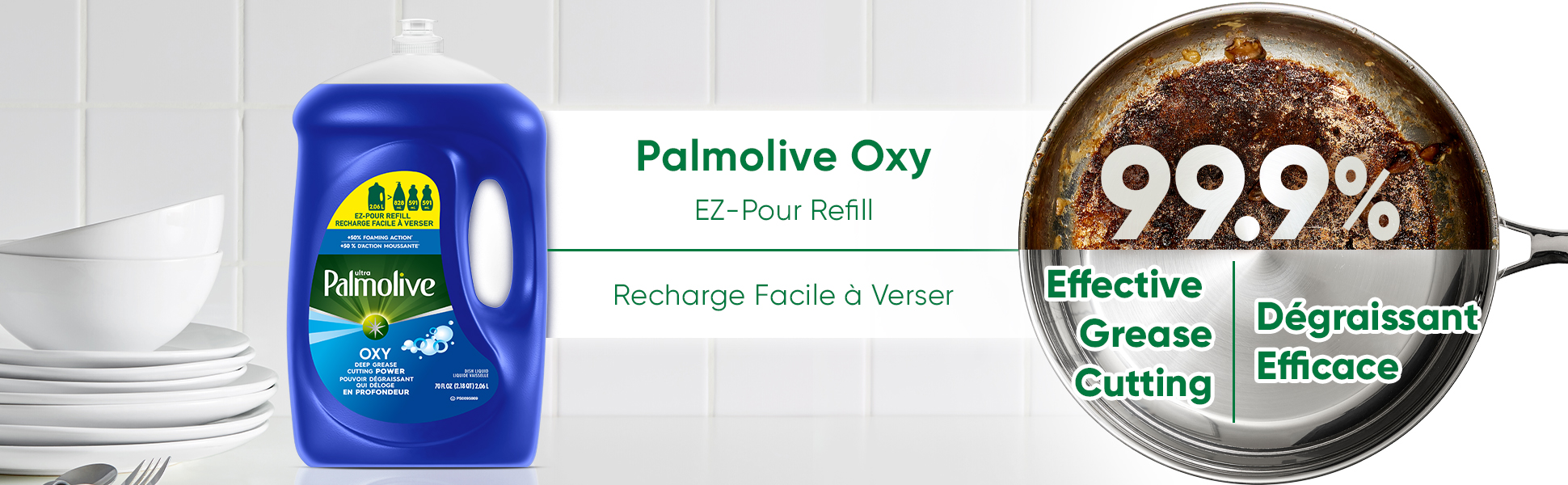 Product Title Liquide vaisselle Palmolive Ultra Oxy, élimine la graisse et la saleté, sans trempage, action puissante sur les plastiques, liquide vaisselle, bouteille de recharge EZ-Pour de 2,06 L SKU 61057186 Consumer Unit - GTIN 00827854030461 Case - GTIN 10827854030468 Product Category Home Care Product Sub Category Dish Hand Brand Palmolive Product Sub Brand Palmolive Ultra HD Consumer Unit Gross Weight 2.222 KG / 4.900 LB Consumer Unit Net Weight 2.134 KG / 4.705 LB Consumer Unit Length 82.000 MM / 3.228 IN Consumer Unit Width 168.000 MM / 6.614 IN Consumer Unit Height 275.000 MM / 10.827 IN Consumer Unit Volume 3.788 C8 / 0.134 CF Product Title Liquide vaisselle Palmolive Ultra Oxy, élimine la graisse et la saleté, sans trempage, action puissante sur les plastiques, liquide vaisselle, bouteille de recharge EZ-Pour de 2,06 L Product Description Le liquide vaisselle Palmolive Ultra Oxy est le liquide vaisselle de confiance pour tous les foyers. La bouteille de recharge EZ-Pour est conçue pour permettre un versement facile et sans dégâts. Profitez d’un parfum frais et d’un nettoyage puissant avec + 50 % d’action moussante*. Ce liquide vaisselle élimine 99,9 % des graisses, ce qui en fait un produit de vaisselle très efficace pour éliminer les résidus alimentaires. Il agit par contact pour éliminer la graisse et la saleté. Aucun trempage nécessaire : cette formule de liquide vaisselle sans trempage vous permet de réaliser le travail en une seule fois. Ce liquide vaisselle sans parabènes ne contient pas de phtalates, ce qui le rend parfait pour les familles et la vaisselle quotidienne. Grâce à sa polyvalence de nettoyage, vous pouvez l’utiliser comme nettoyant pour grilles, pour pneus de voiture, ou comme détachant de prétraitement pour le linge, en plus de la vaisselle, des verres, des casseroles, des poêles et de la plupart des accessoires de cuisine. Il est également puissant sur les plastiques, garantissant que même vos récipients en plastique, vos boîtes à lunch et vos couvercles ressortent étincelants de propreté. Le liquide vaisselle Palmolive Ultra Oxy est la solution pour tous vos besoins de nettoyage en cuisine. * par rapport au liquide vaisselle non concentré d'une grande marque Bullet 1 Comprend une bouteille de recharge EZ-Pour de 2,06 L de liquide vaisselle Palmolive Ultra Oxy, pour un nettoyage puissant avec + 50 % d’action moussante* et un parfum frais Bullet 2 La bouteille rechargeable facile à verser rend le lavage de la vaisselle encore plus simple Bullet 3 Élimine 99,9 % des graisses, ce qui en fait un produit de vaisselle très efficace pour éliminer les résidus alimentaires Bullet 4 Aucun trempage nécessaire : cette formule de liquide vaisselle sans trempage vous permet de réaliser le travail en une seule fois Bullet 5 Elle vous garantit que même vos récipients en plastique, vos boîtes à lunch et vos couvercles de rangement ressortent de chaque lavage d’une propreté étincelante et sans résidus Bullet 6 Palmolive Ultra Oxy est un liquide vaisselle sans parabènes et sans phtalates, parfait pour les familles OS Amazon Product Title Liquide vaisselle Palmolive Ultra Oxy, élimine la graisse et la saleté, sans trempage, action puissante sur les plastiques, liquide vaisselle, bouteille de recharge EZ-Pour de 2,06 L OS Amazon Product Description Le liquide vaisselle Palmolive Ultra Oxy est le liquide vaisselle de confiance pour tous les foyers. La bouteille de recharge EZ-Pour est conçue pour permettre un versement facile et sans dégâts. Profitez d’un parfum frais et d’un nettoyage puissant avec + 50 % d’action moussante*. Ce liquide vaisselle élimine 99,9 % des graisses, ce qui en fait un produit de vaisselle très efficace pour éliminer les résidus alimentaires. Il agit par contact pour éliminer la graisse et la saleté. Aucun trempage nécessaire : cette formule de liquide vaisselle sans trempage vous permet de réaliser le travail en une seule fois. Ce liquide vaisselle sans parabènes ne contient pas de phtalates, ce qui le rend parfait pour les familles et la vaisselle quotidienne. Grâce à sa polyvalence de nettoyage, vous pouvez l’utiliser comme nettoyant pour grilles, pour pneus de voiture, ou comme détachant de prétraitement pour le linge, en plus de la vaisselle, des verres, des casseroles, des poêles et de la plupart des accessoires de cuisine. Il est également puissant sur les plastiques, garantissant que même vos récipients en plastique, vos boîtes à lunch et vos couvercles ressortent étincelants de propreté. Le liquide vaisselle Palmolive Ultra Oxy est la solution pour tous vos besoins de nettoyage en cuisine. * par rapport au liquide vaisselle non concentré d'une grande marque OS Amazon Bullet 1 CONTENU : Une bouteille de recharge EZ-Pour de 2,06 L de liquide vaisselle Palmolive Ultra Oxy, pour un nettoyage puissant avec + 50 % d’action moussante* et un parfum frais OS Amazon Bullet 2 LAVAGE DE LA VAISSELLE PRATIQUE : La bouteille rechargeable facile à verser rend le lavage de la vaisselle encore plus simple OS Amazon Bullet 3 POUVOIR NETTOYANT : Élimine 99,9 % des graisses, ce qui en fait un produit de vaisselle très efficace pour éliminer les résidus alimentaires OS Amazon Bullet 4 AUCUN TREMPAGE : Cette formule de liquide vaisselle sans trempage vous permet de réaliser le travail en une seule fois OS Amazon Bullet 5 ACTION PUISSANTE SUR LES PLASTIQUES : Palmolive Ultra Oxy garantit que même vos récipients en plastique, vos boîtes à lunch et vos couvercles de rangement sont d’une propreté étincelante et sans résidus après chaque lavage OS Walmart Product Title Liquide vaisselle Palmolive Ultra Oxy, puissant sur les graisses, recharge EZ-Pour de 2,06 L OS Walmart Product Description Le liquide vaisselle Palmolive Ultra Oxy est le liquide vaisselle de confiance pour tous les foyers. La bouteille de recharge EZ-Pour est conçue pour permettre un versement fa