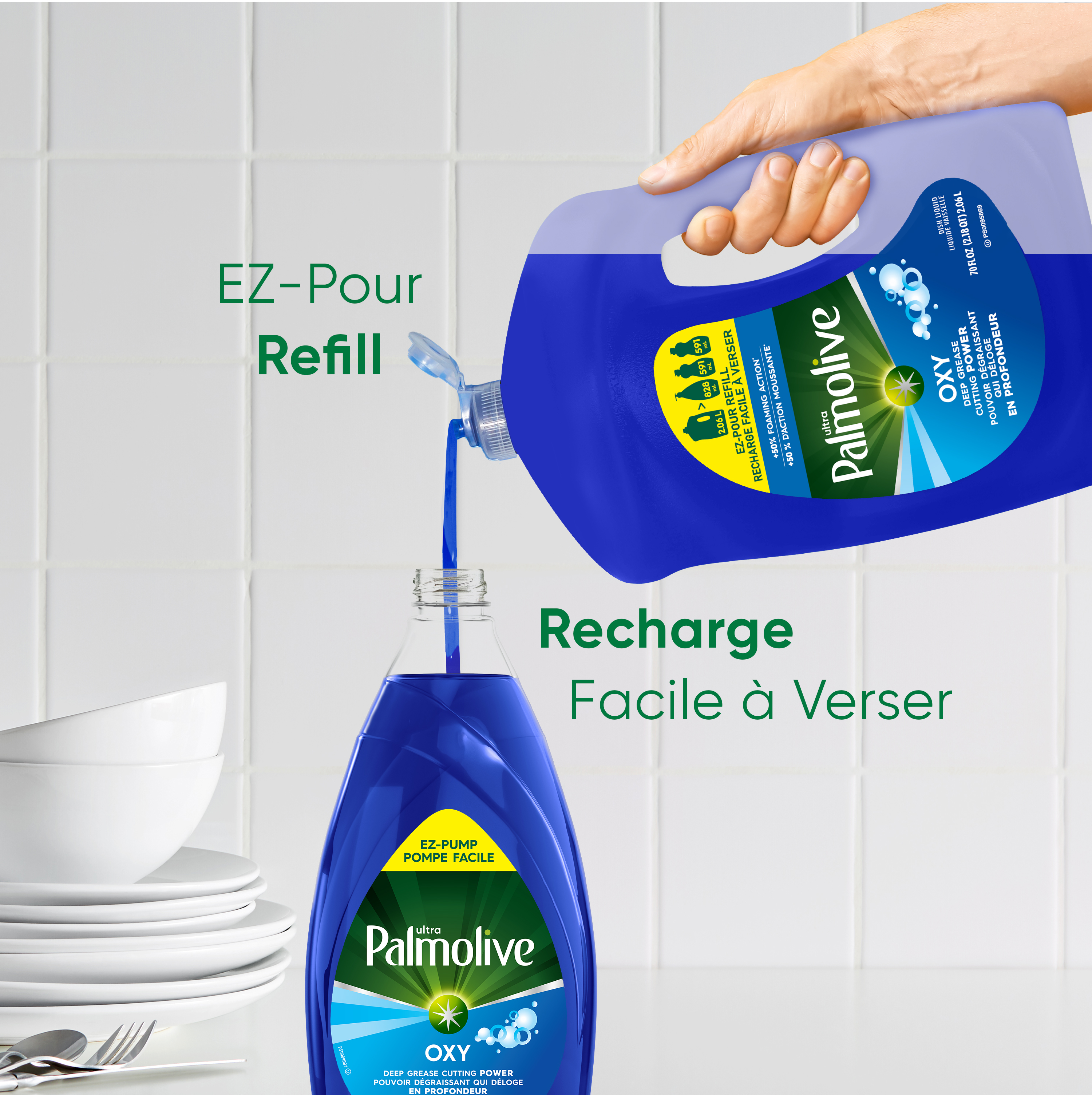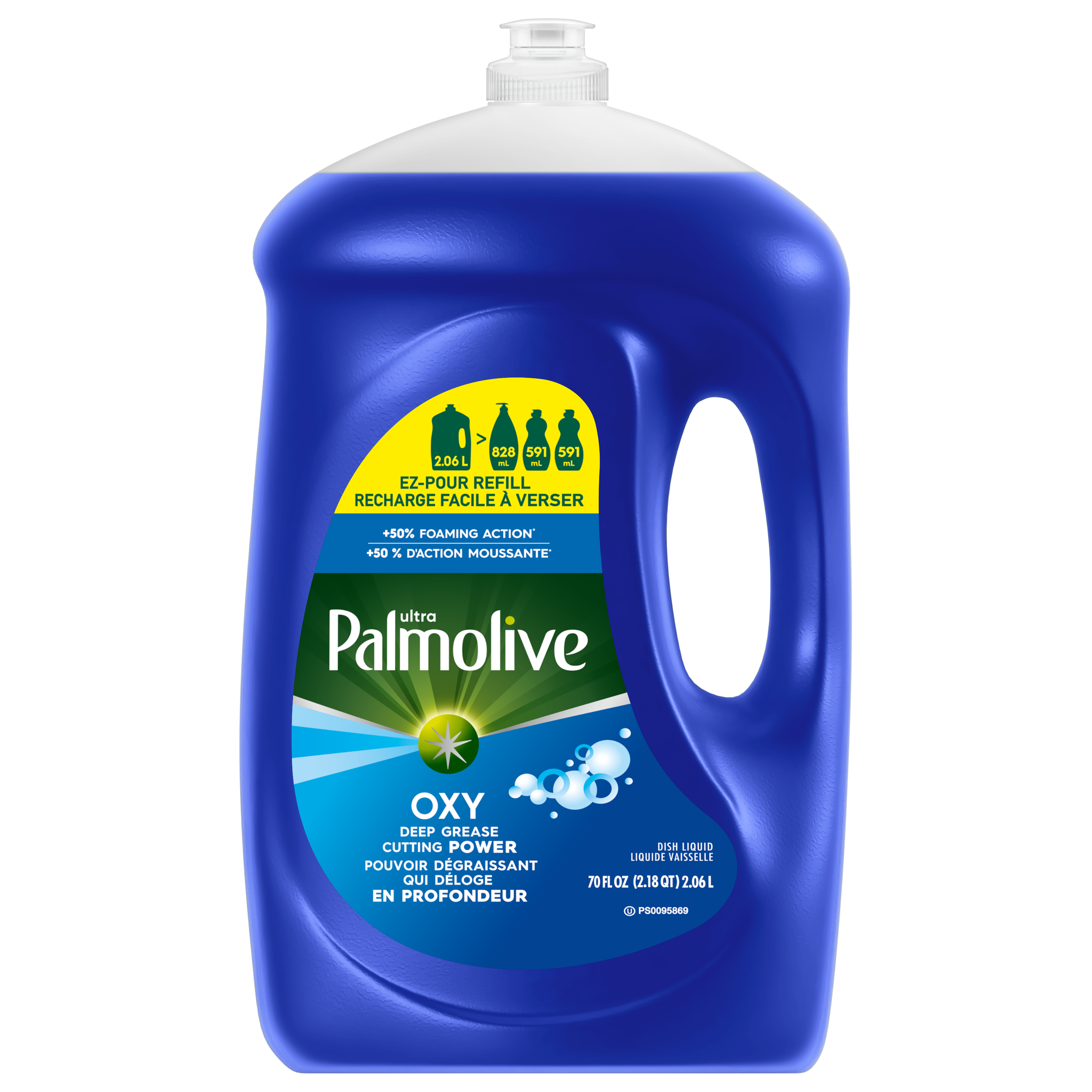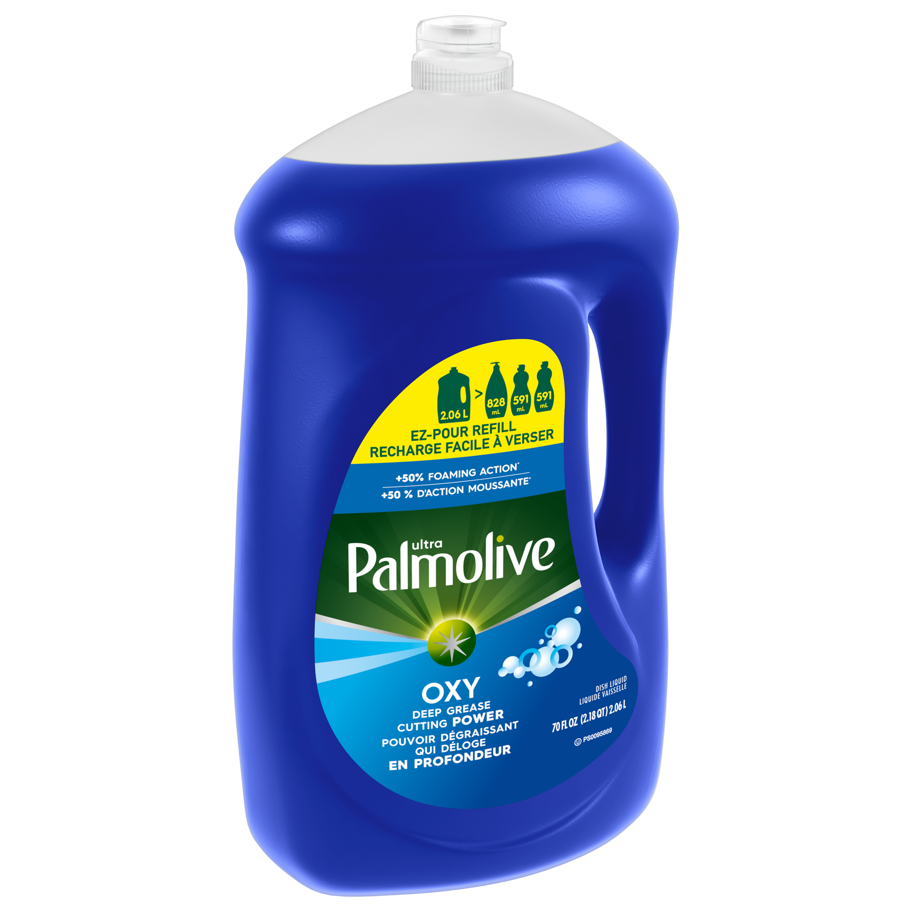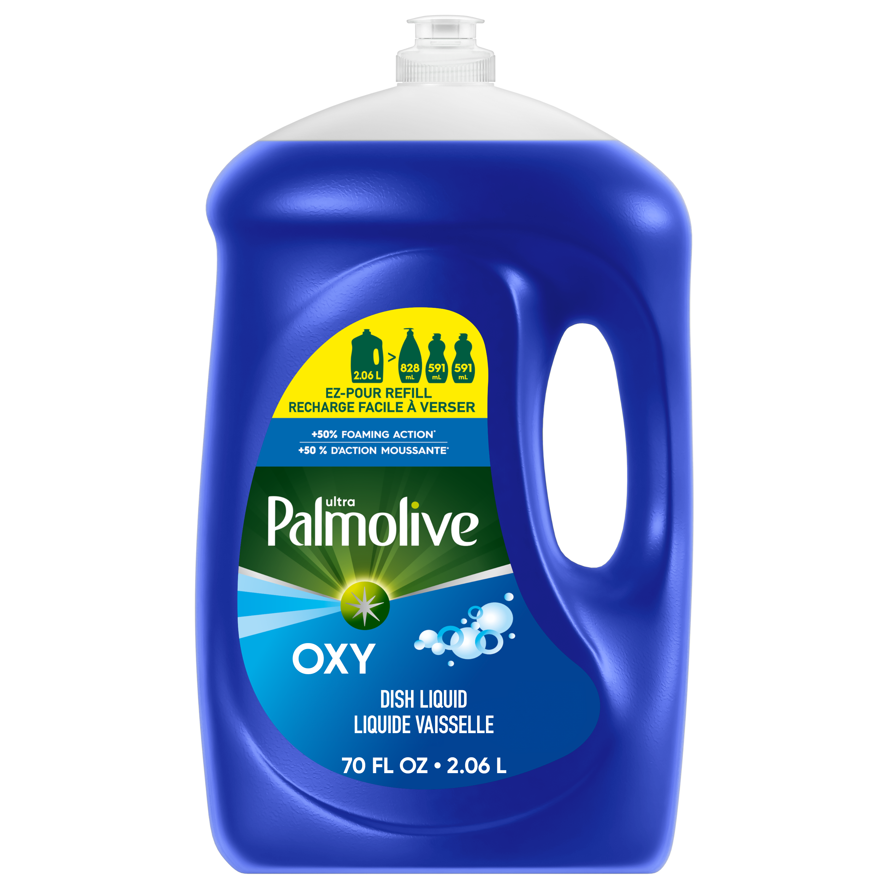 Liquide vaisselle Palmolive Ultra Oxy, élimine la graisse et la saleté, sans trempage, action puissante sur les plastiques, liquide vaisselle, bouteille de recharge EZ-Pour de 2,06 L