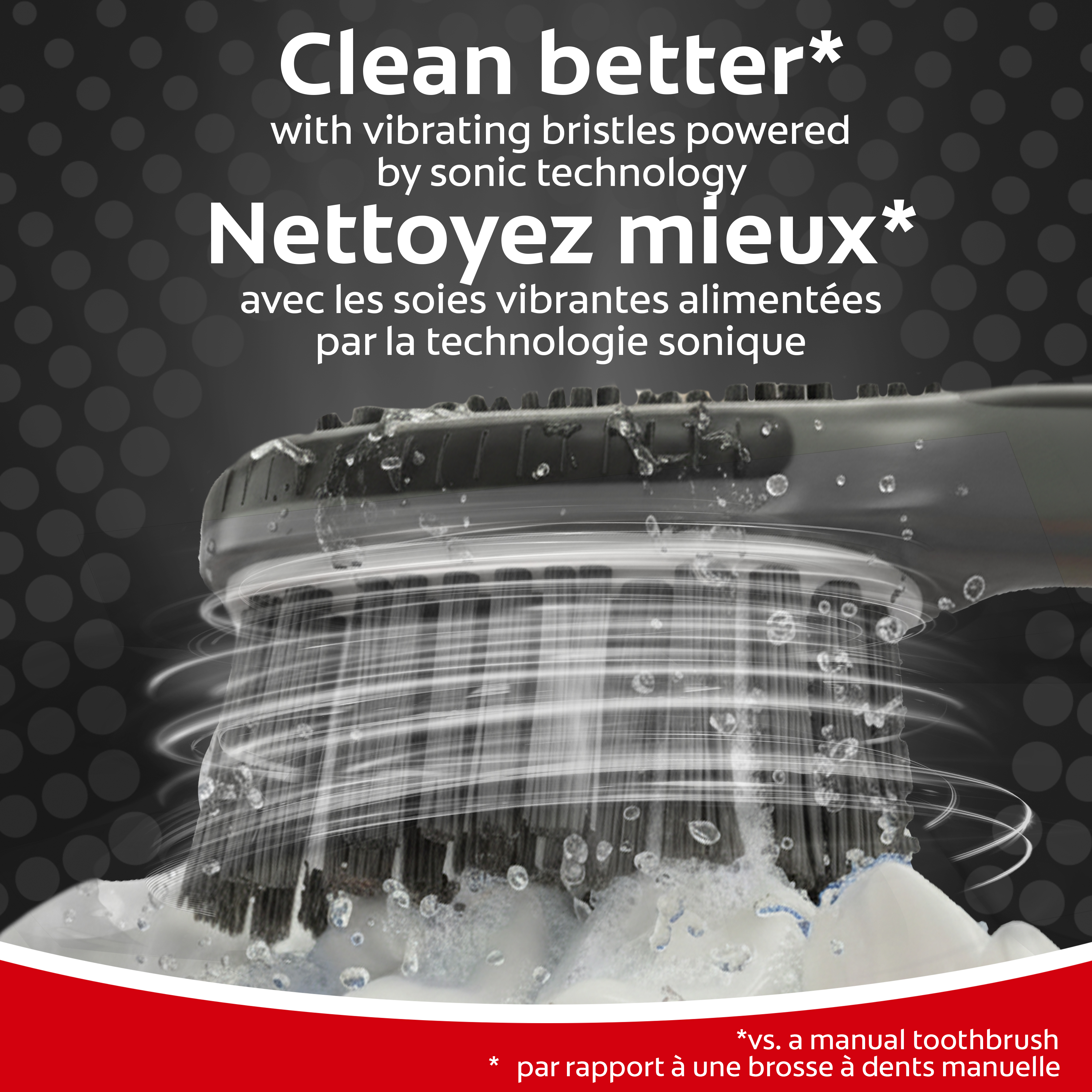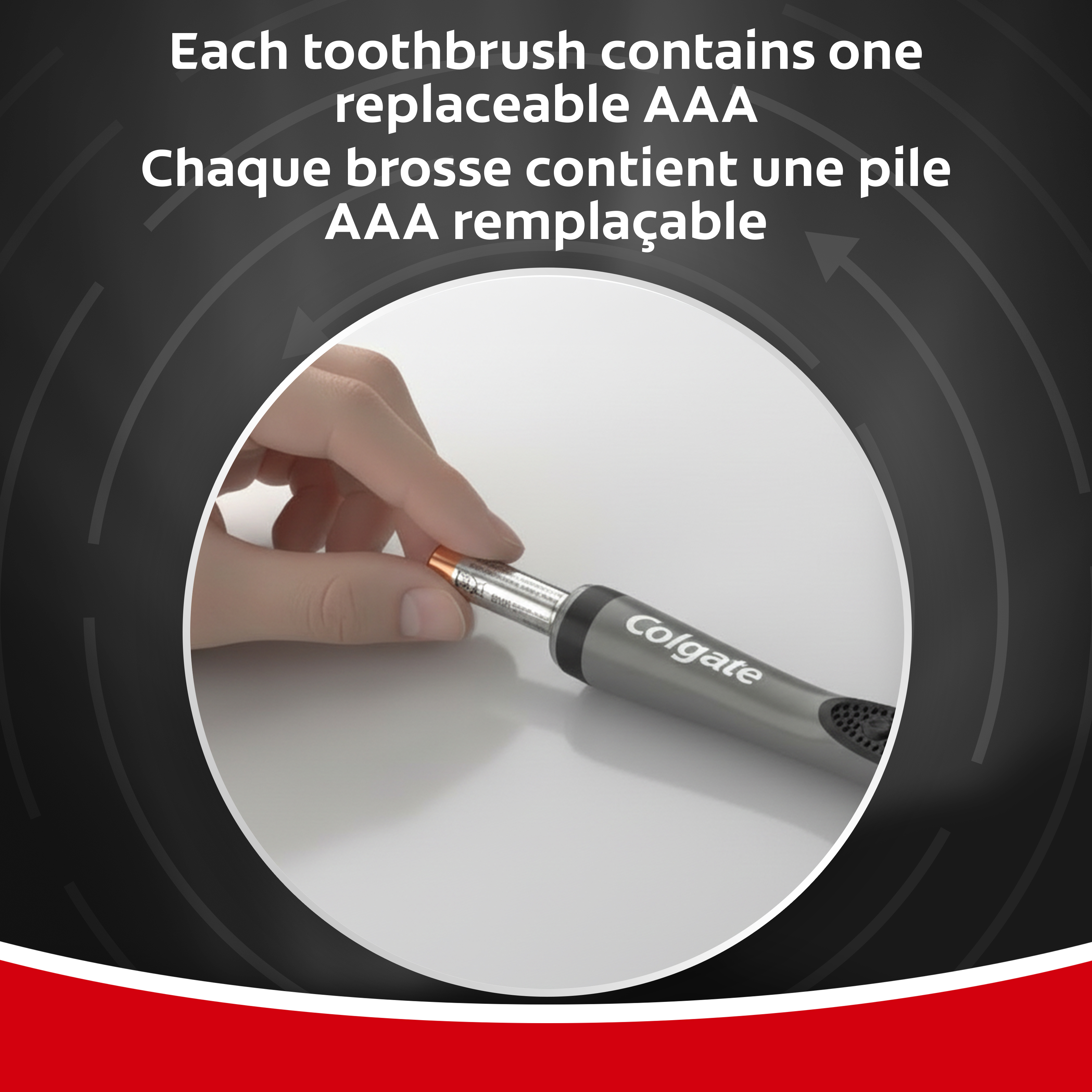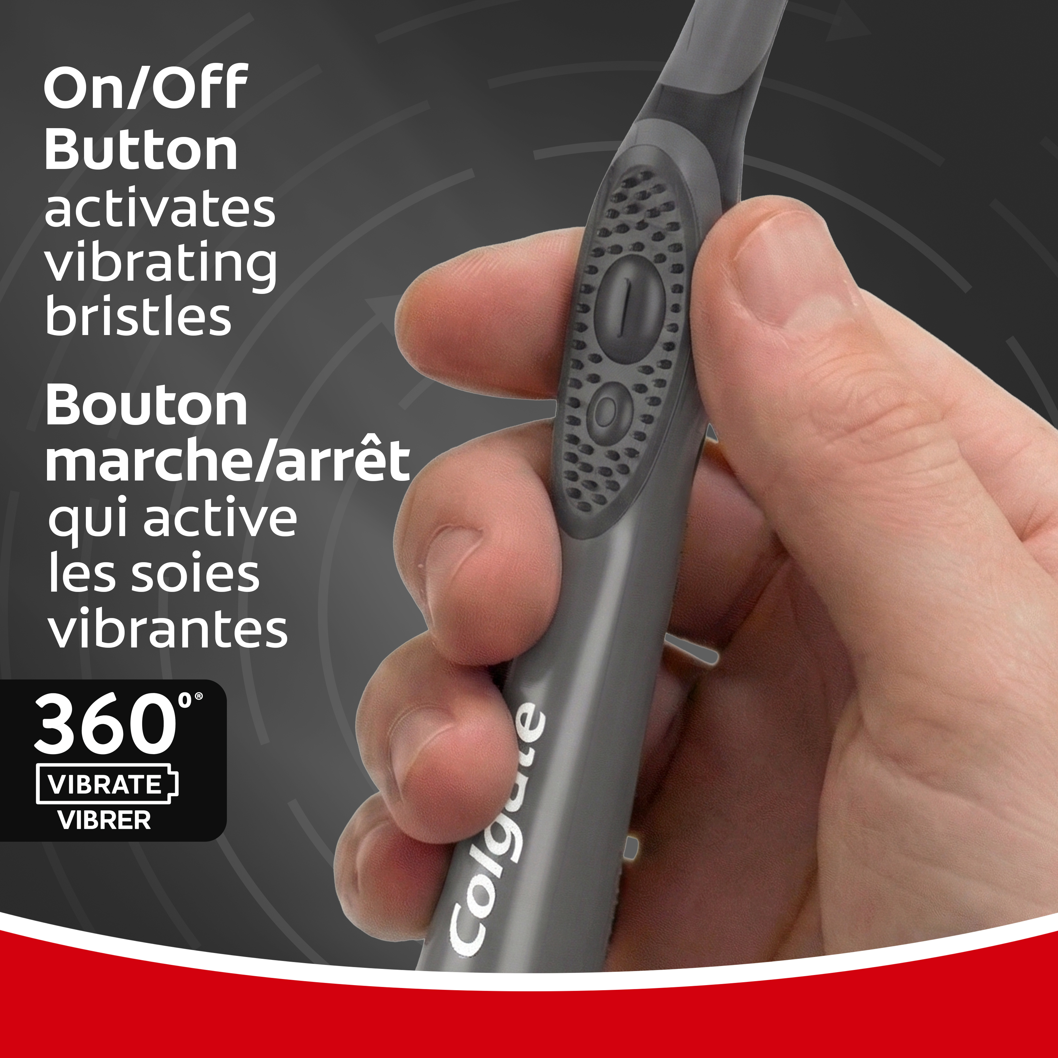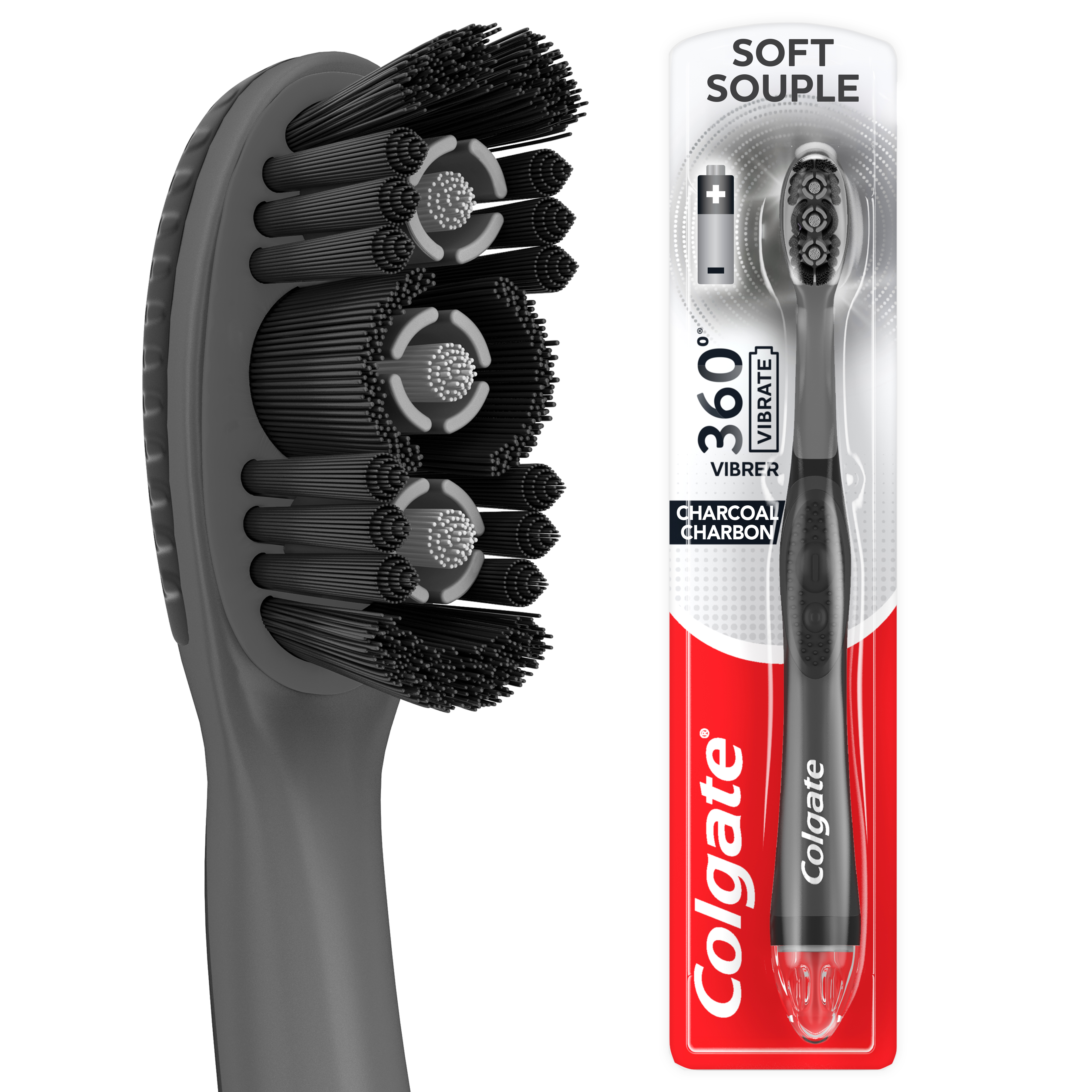 Brosse à dents vibrante électrique à piles Colgate 360 Charbon, soies souples, lot de 1