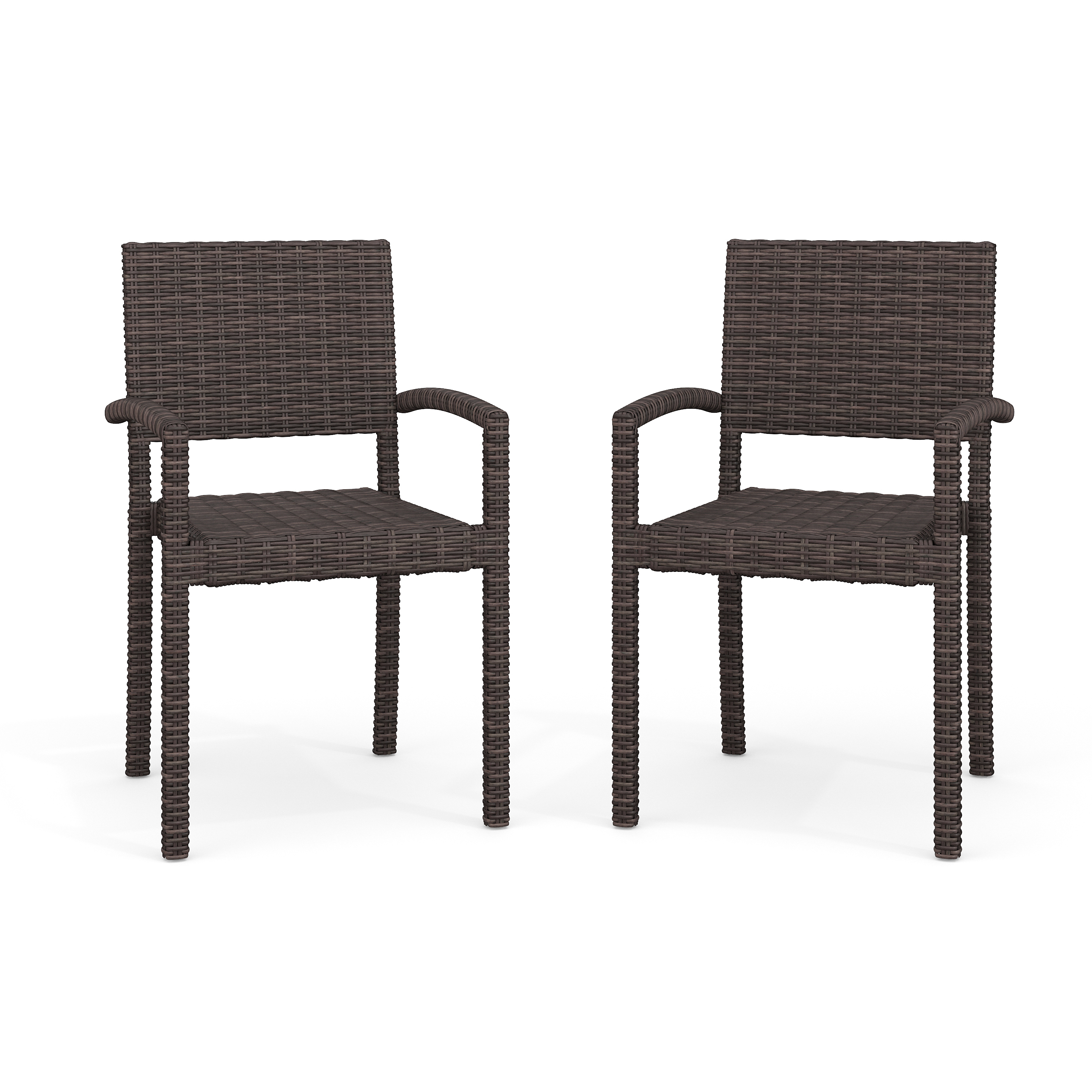 Bedford Set of 2 Indoor-Outdoor Stackable Patio Dining Armchairs in Brown Rattan Wicker