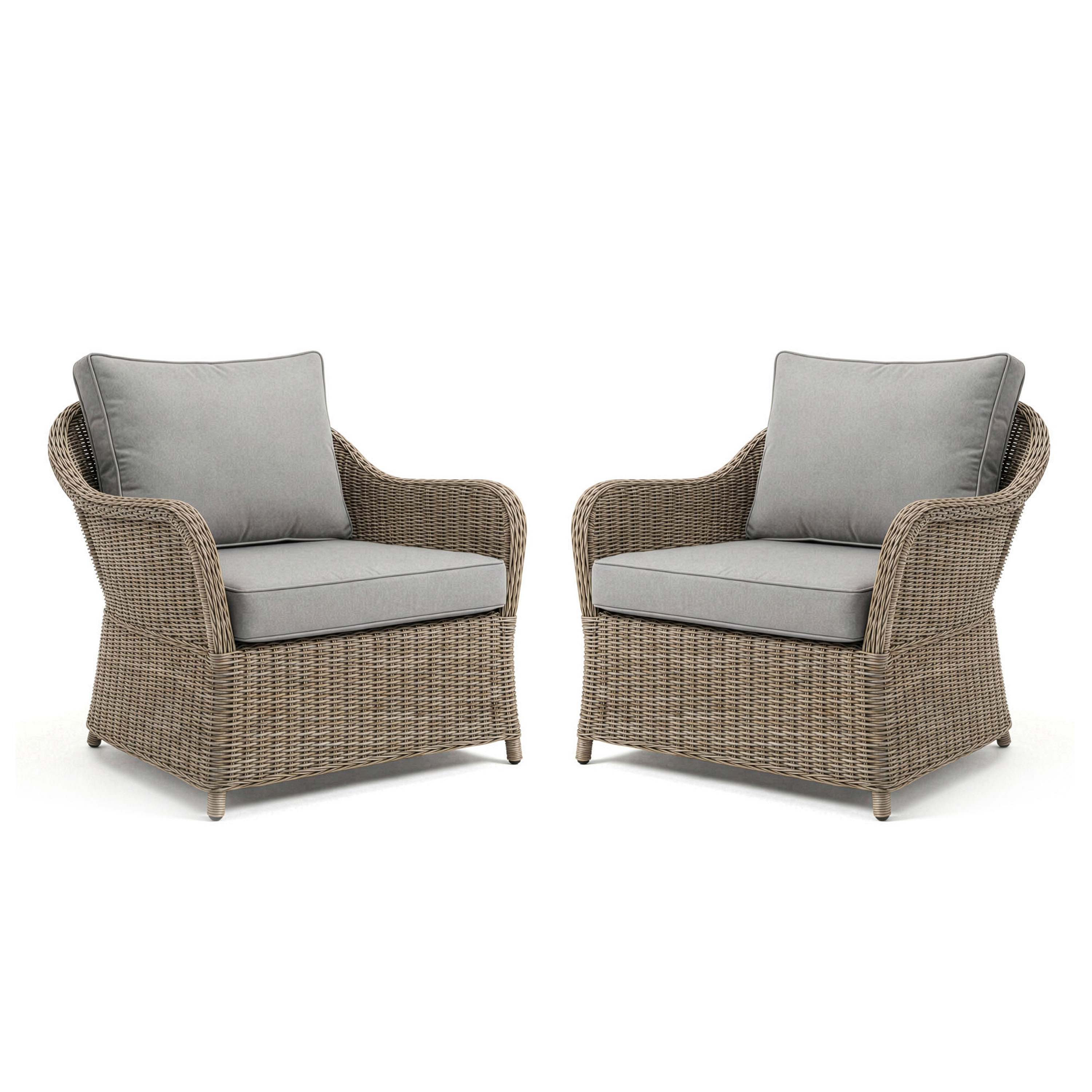 Lily Pond Set of 2 Indoor-Outdoor Patio Club Chairs in Weathered Gray Rattan Wicker with Gray All-Weather Cushions