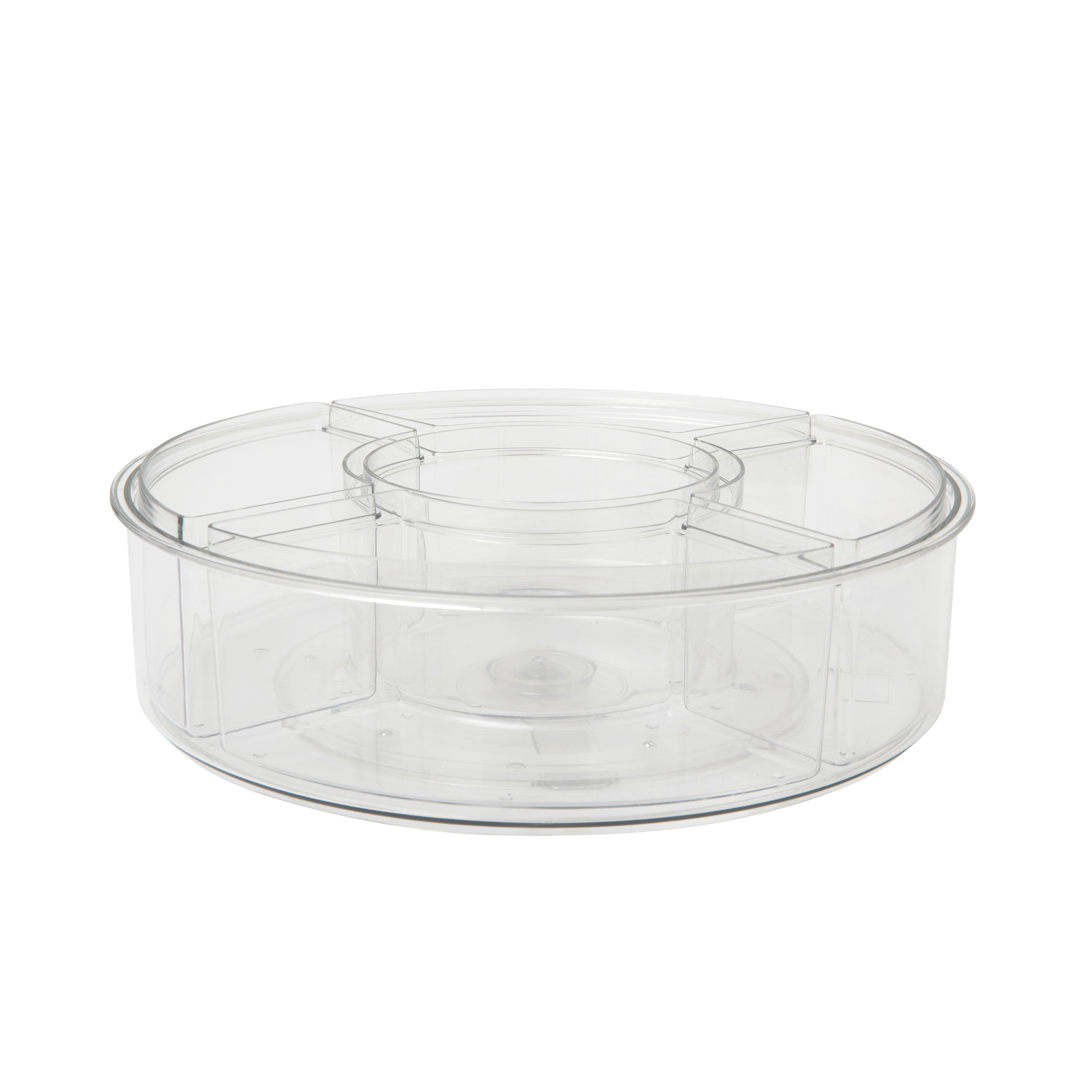 Brody Divided Lazy Susan Organizer with 5 Removable Bins, Plastic 360° Rotating Desk Storage Organizer, 12 Inch, Clear